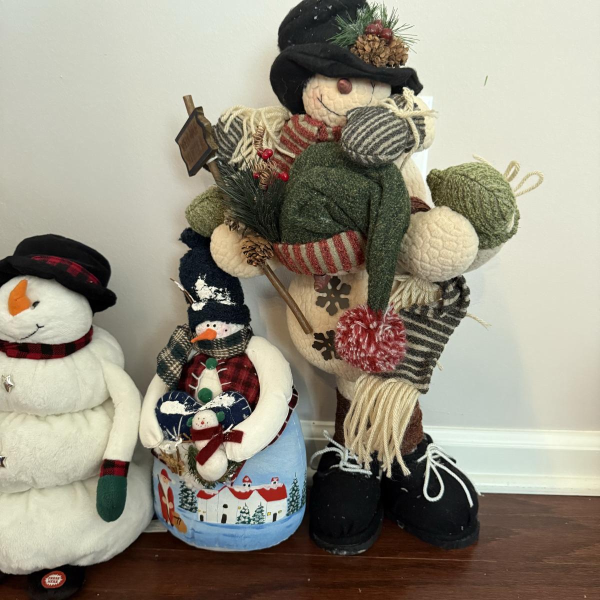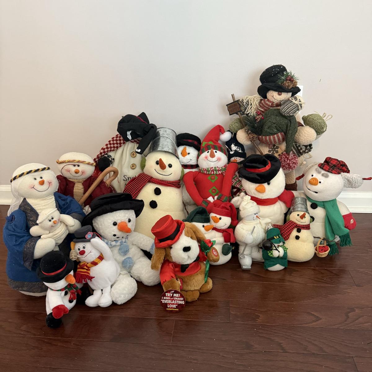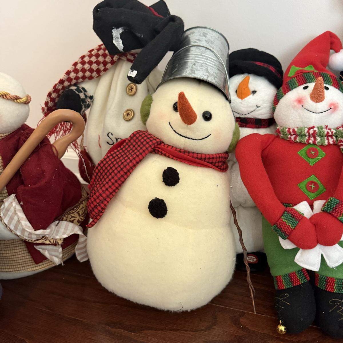 LOT 82G: Collection of Snowman Stuffed Toys & Decor