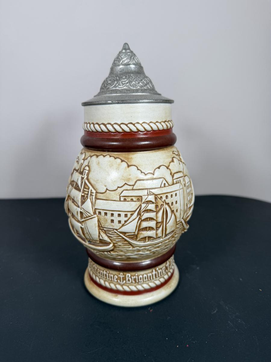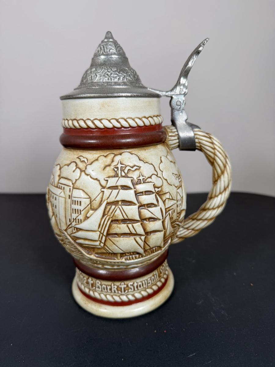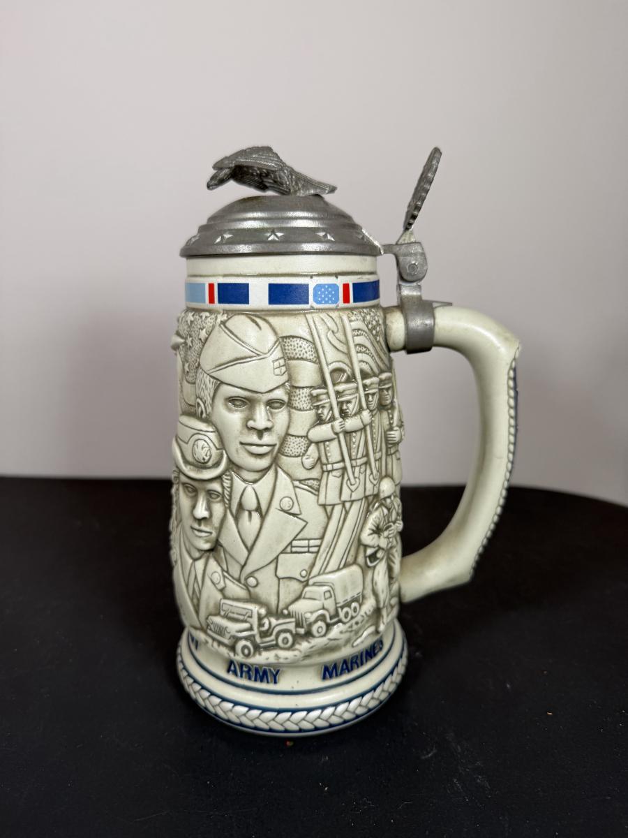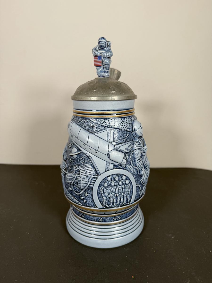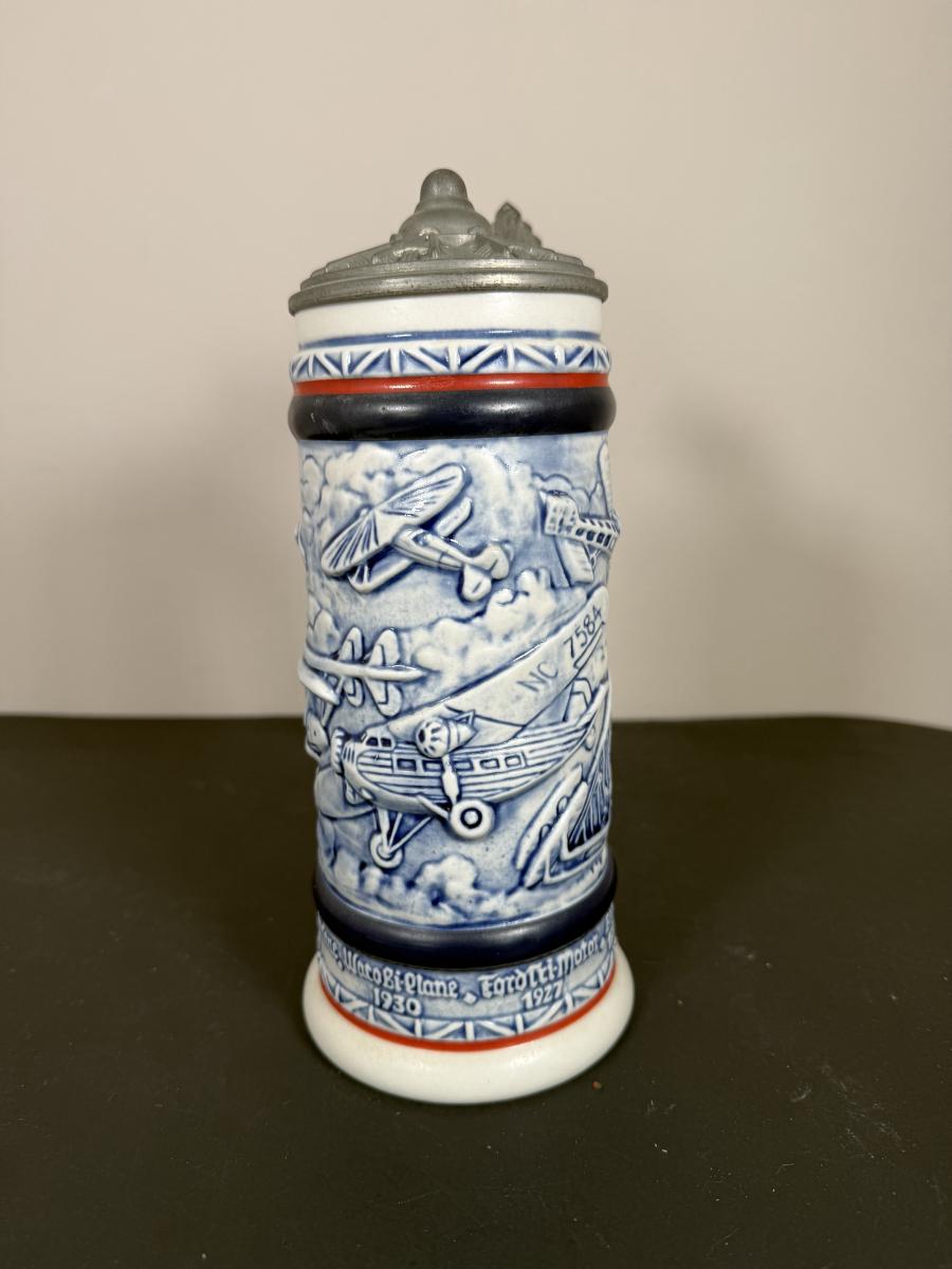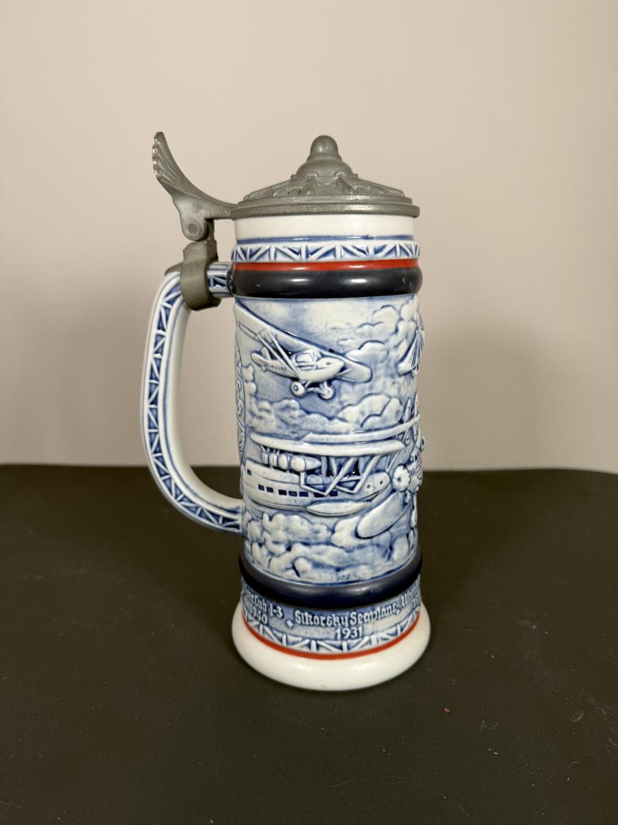 LOT 84G: Avon Steins - 1981 Flying Classics, 1991 Conquest of Space, 1990 Tribute to American Armed Forces, 1989 Tribute to American Firefighters & 1977 Sailing Ships