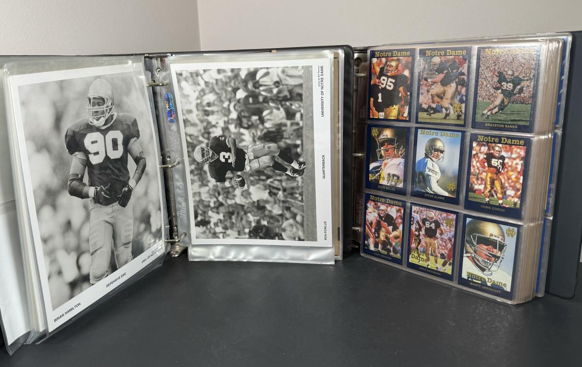 LOT 92G: 1990s Notre Dame Football Card Album & Album of Photographs