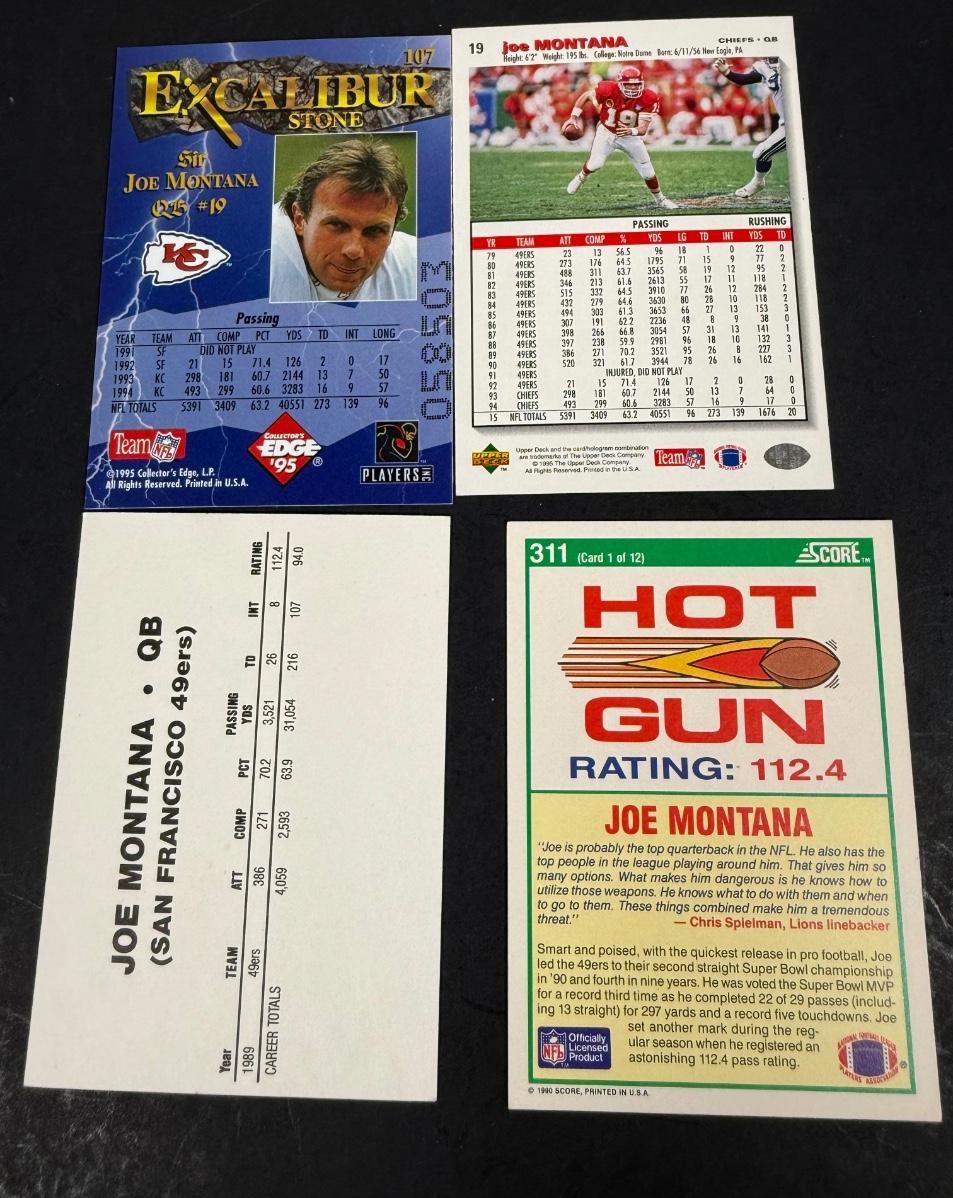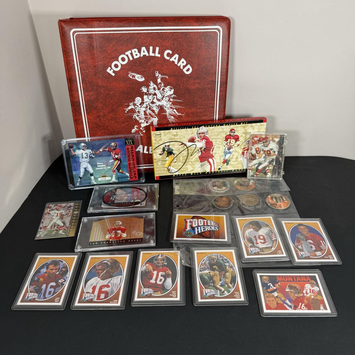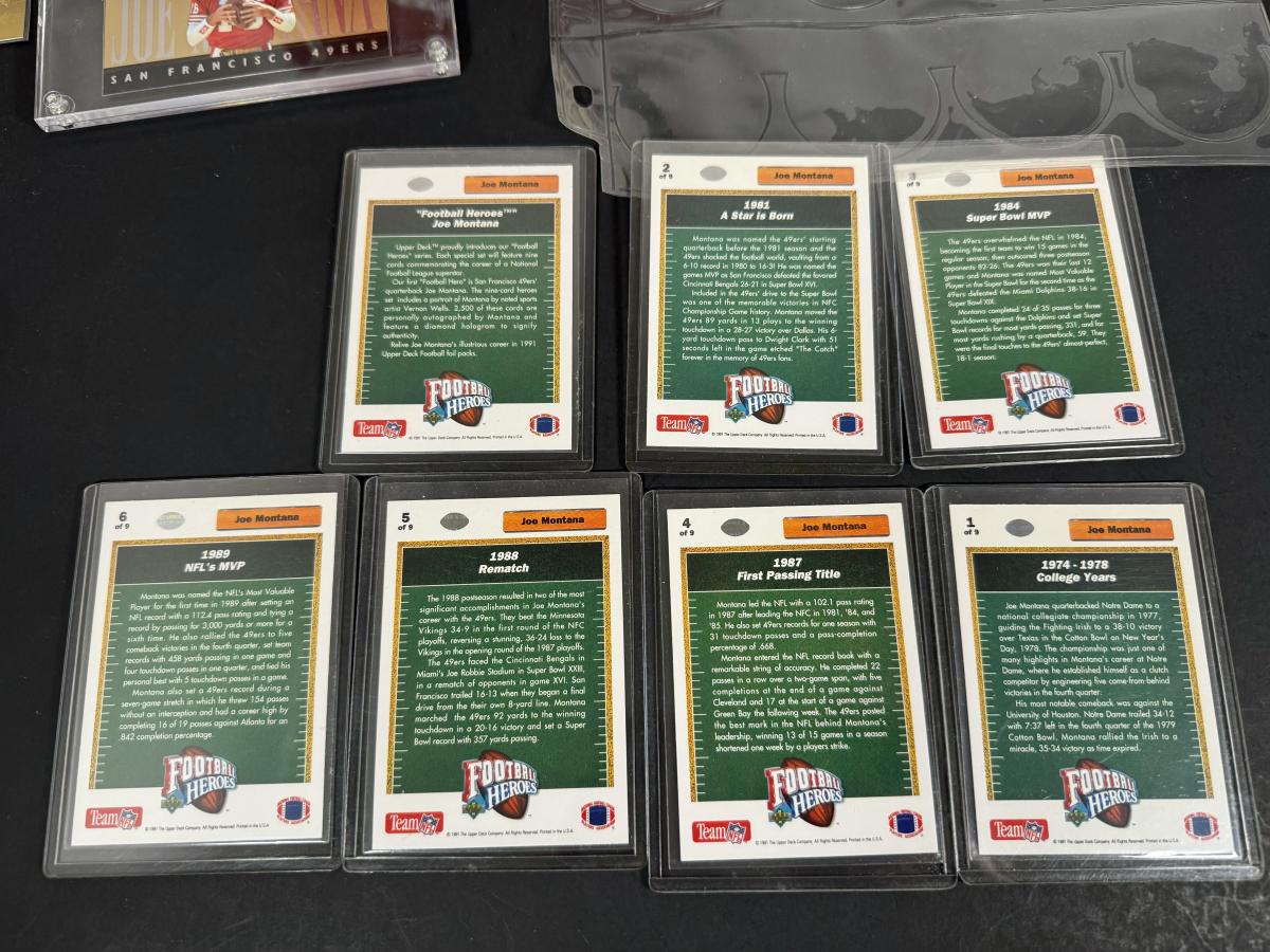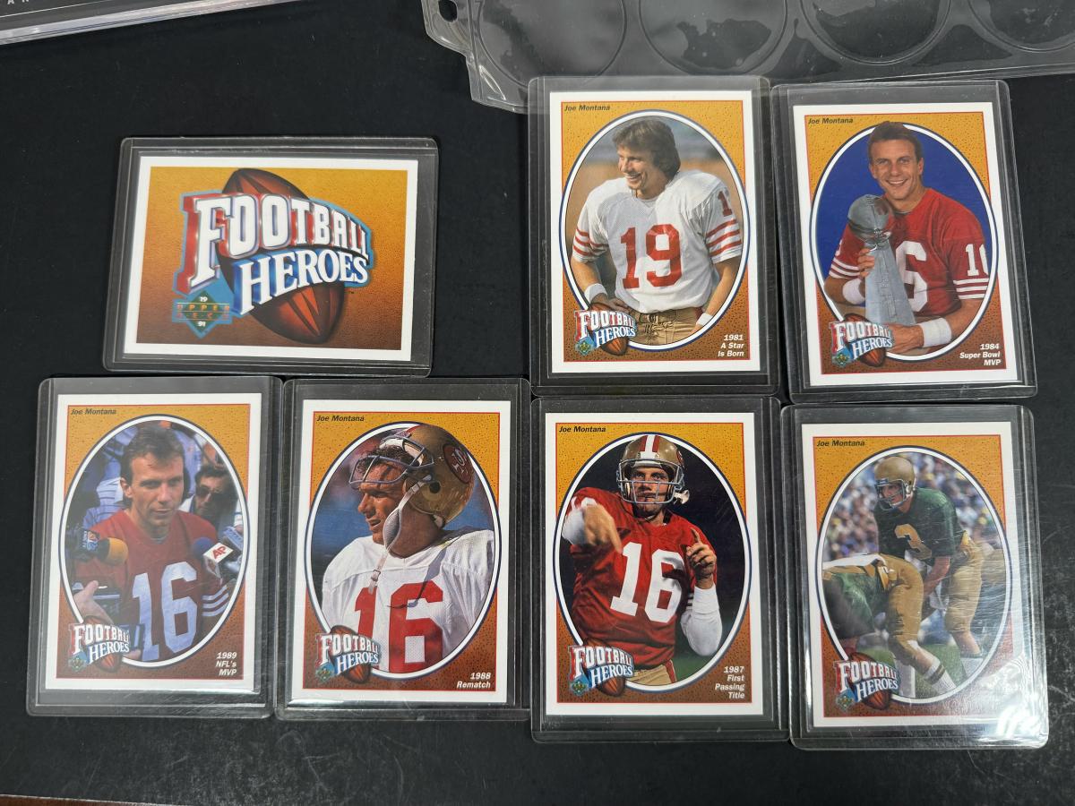 LOT 93G: Joe Montana Football Cards - 1991 Upper Deck Football Heroes, Topps, All Pro, MVP & Superbowl Cards
