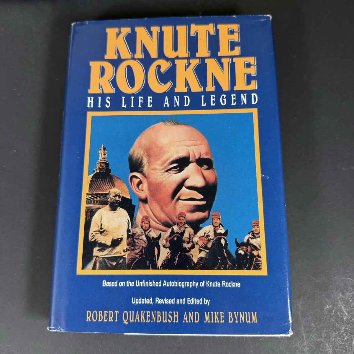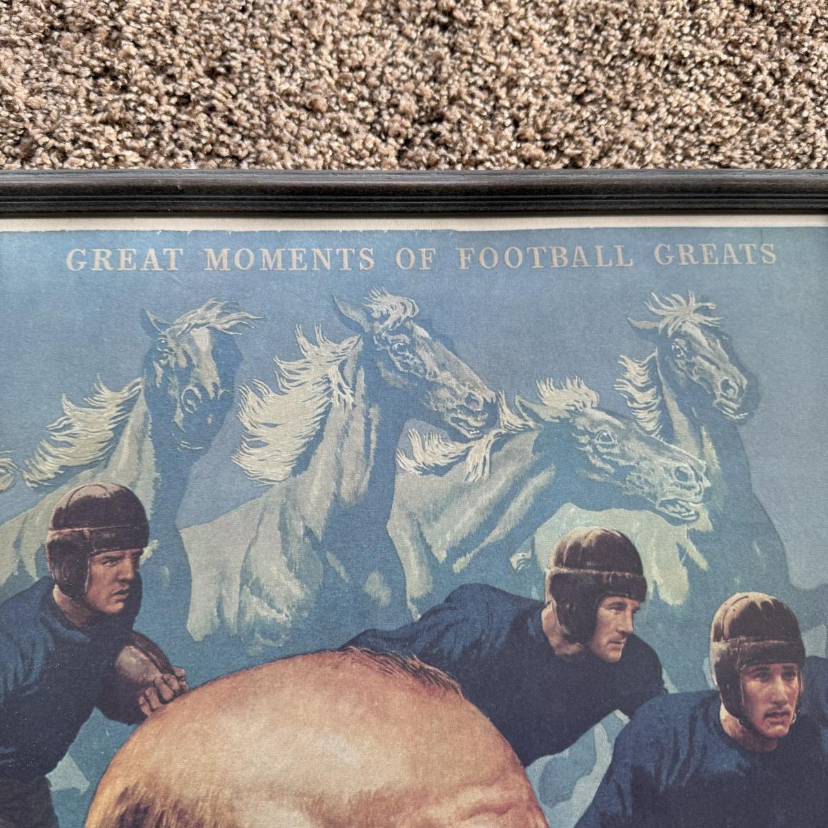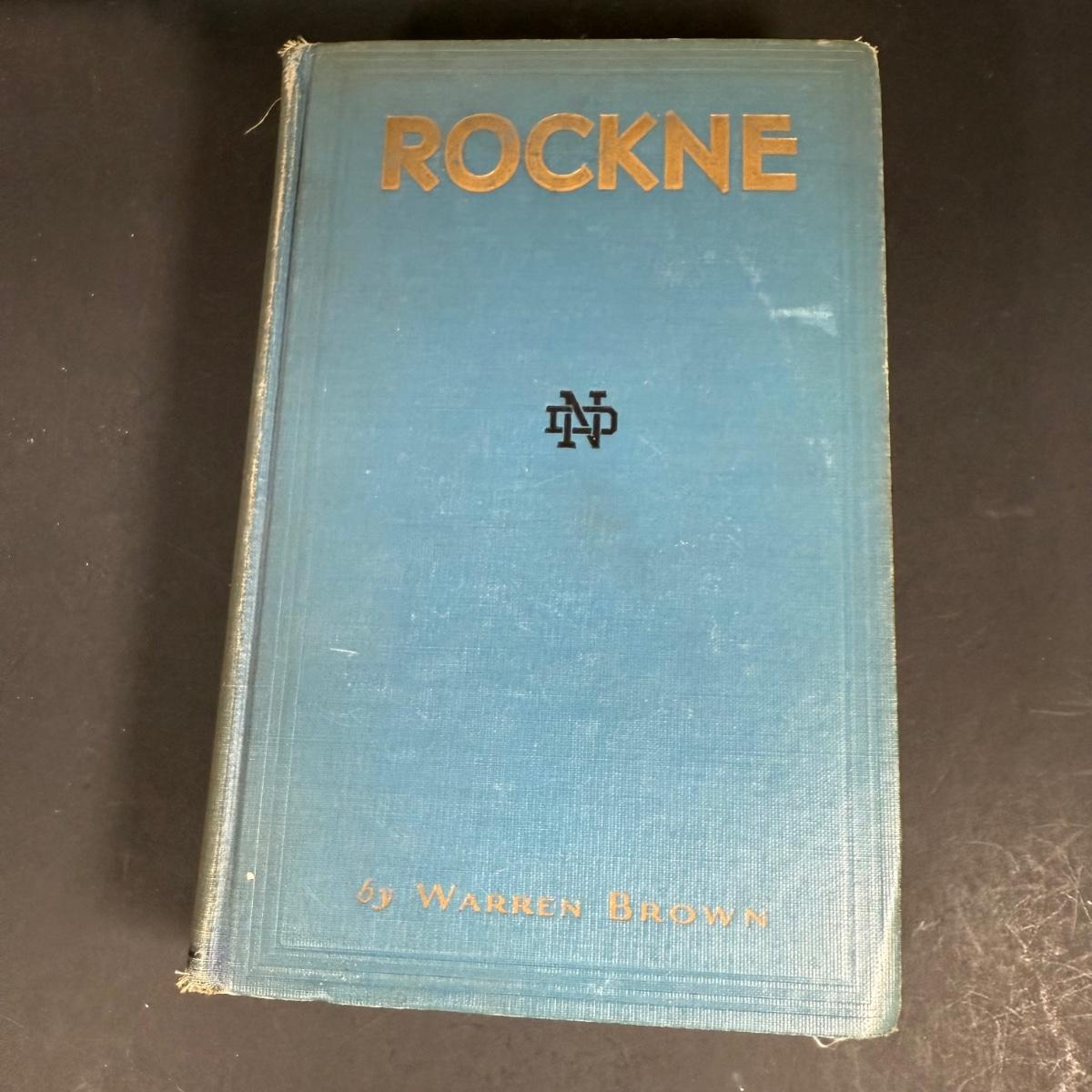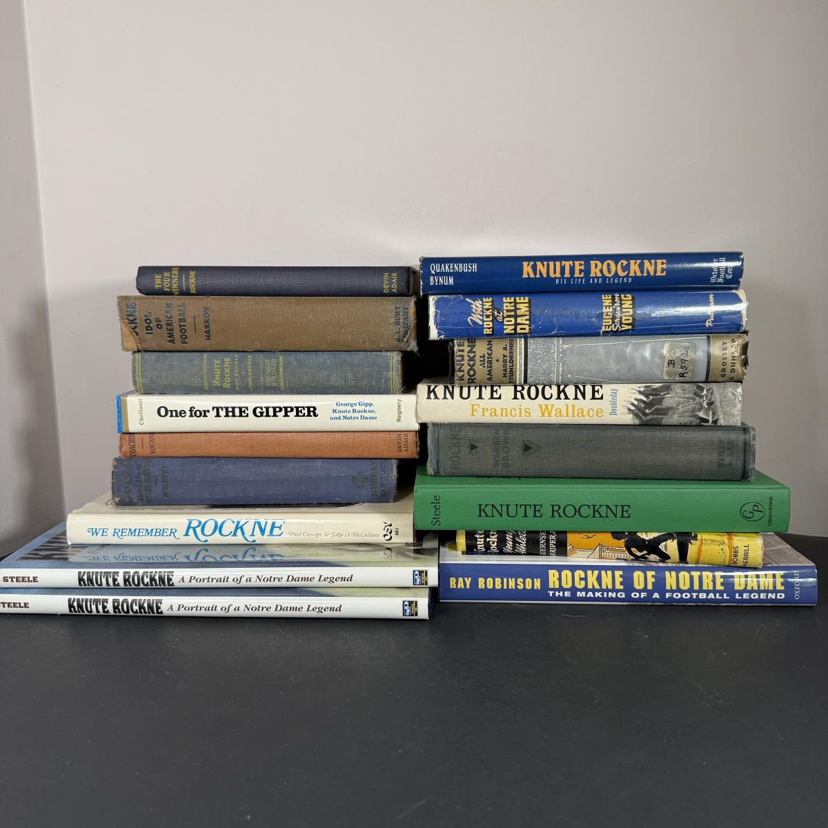 LOT 98G: Knute Rockne Notre Dame Collection - Record of 1940 All American Radio Show w/ Ronald Reagan, Framed "Great Moments of Football Greats" Poster, Books by & about Rockne & More