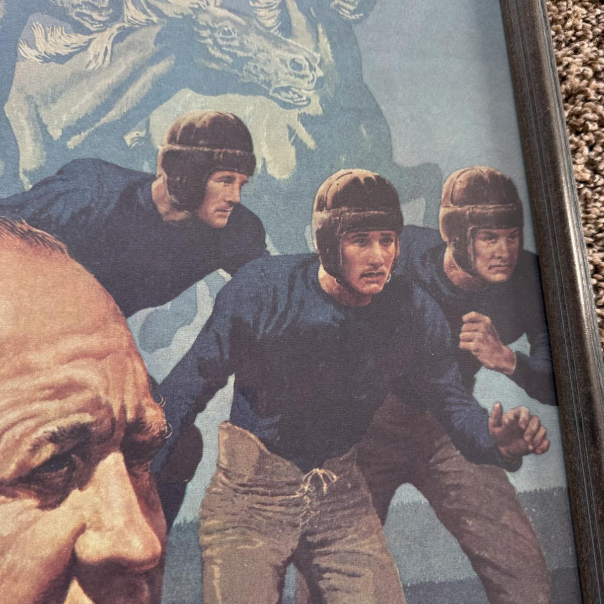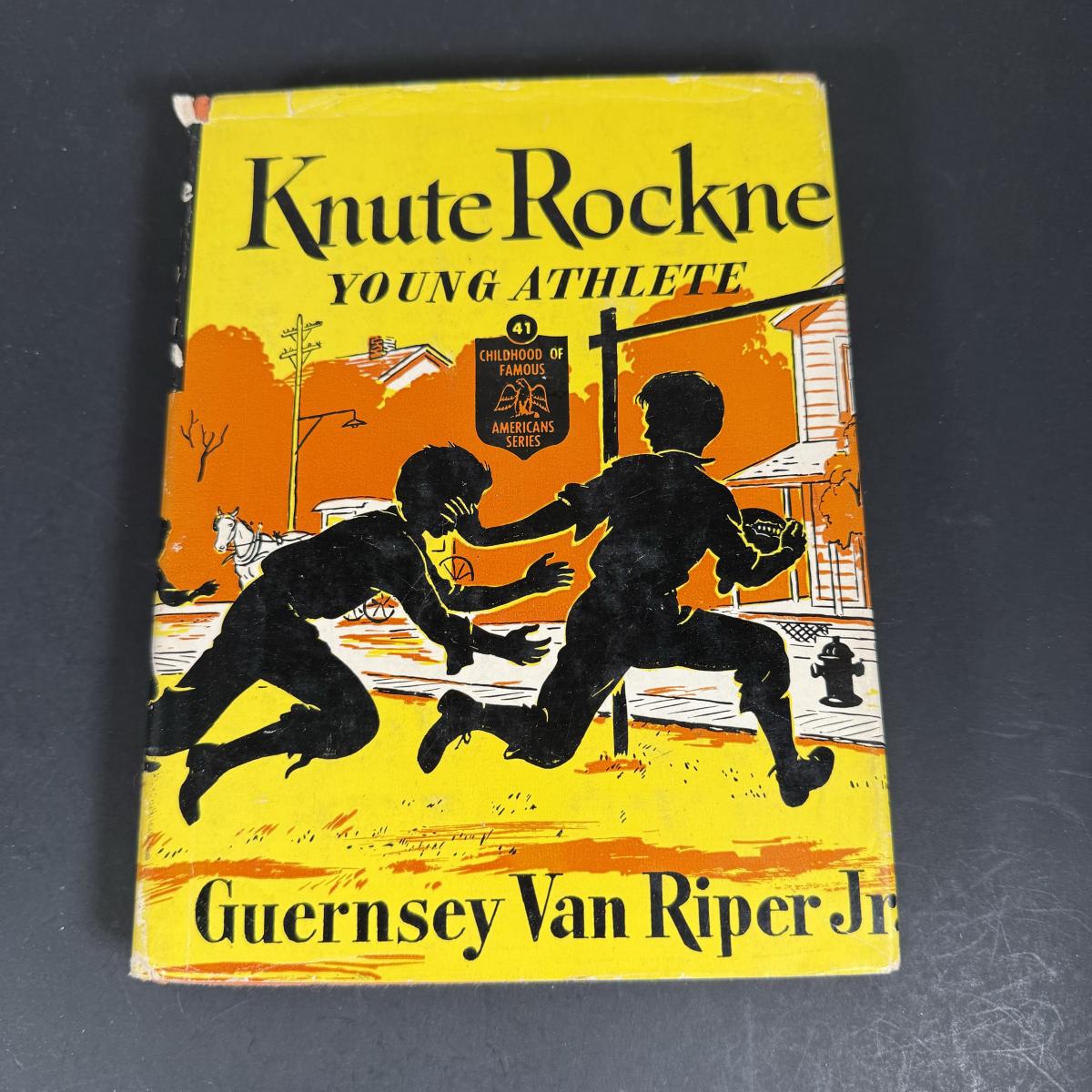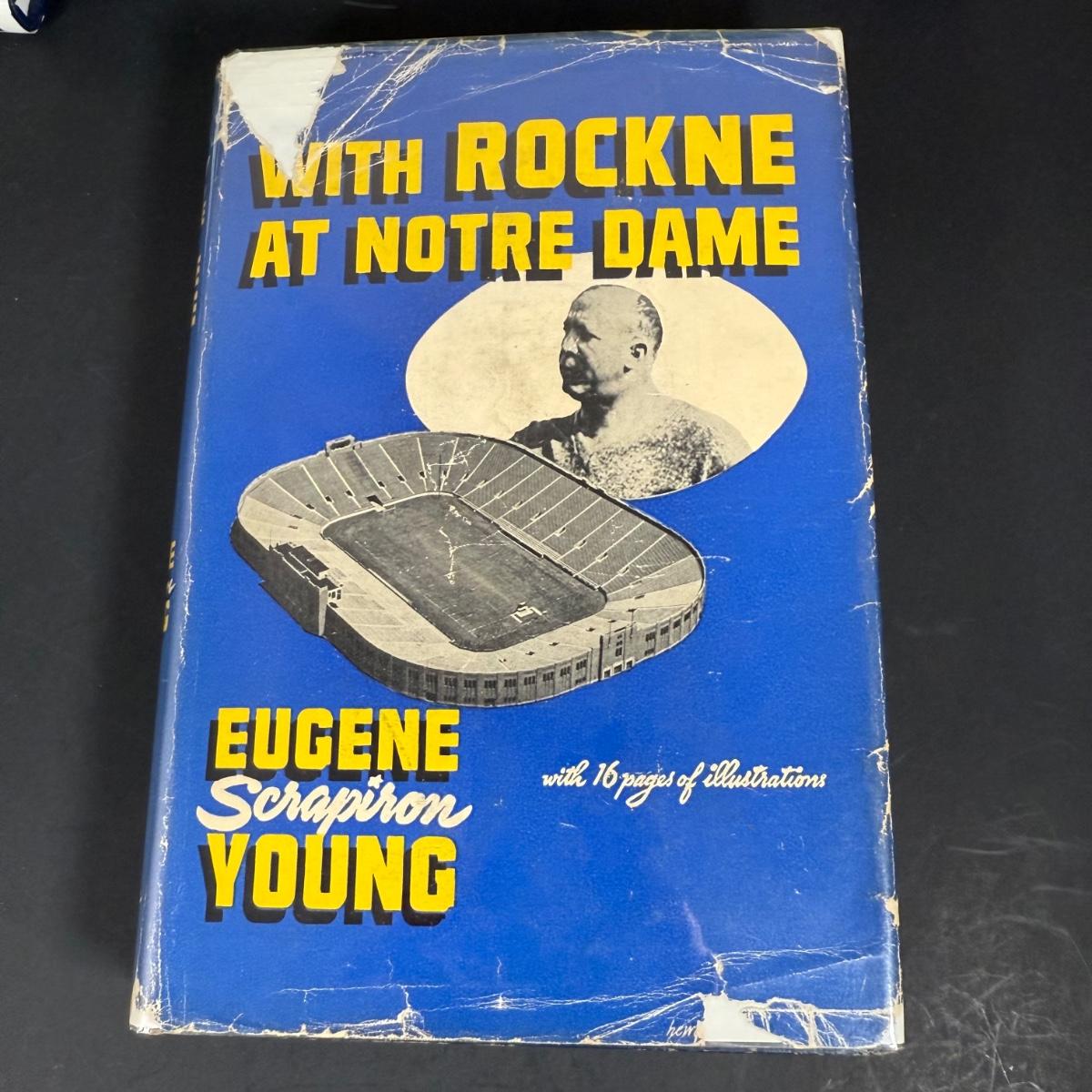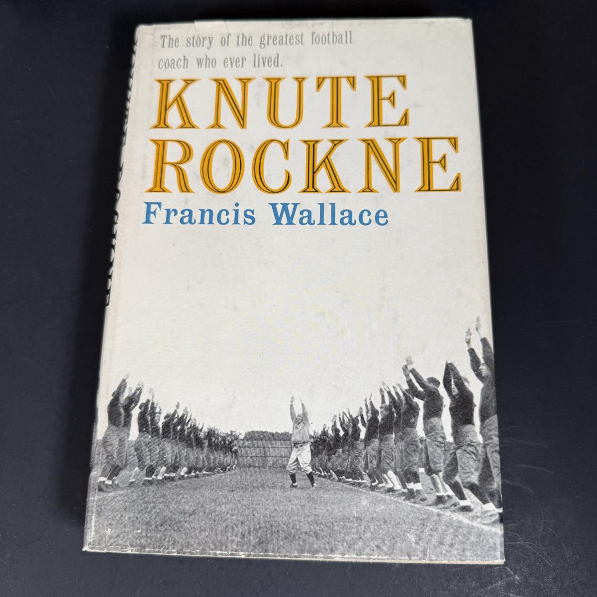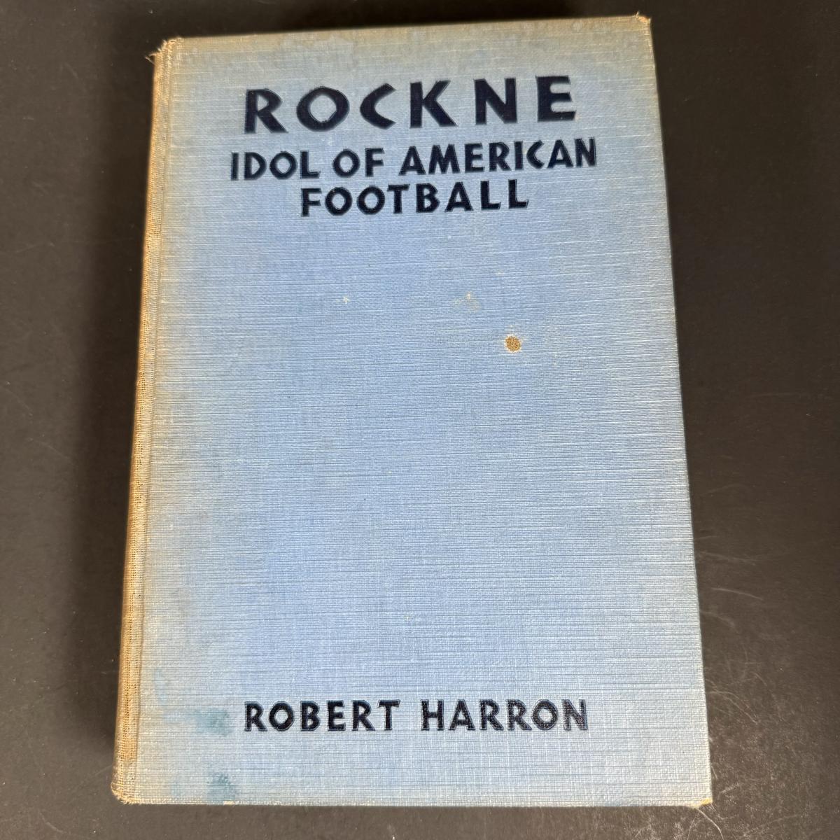 LOT 98G: Knute Rockne Notre Dame Collection - Record of 1940 All American Radio Show w/ Ronald Reagan, Framed "Great Moments of Football Greats" Poster, Books by & about Rockne & More
