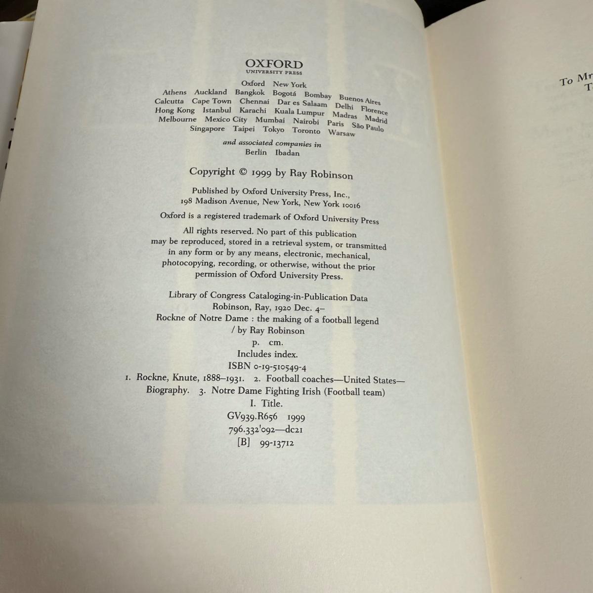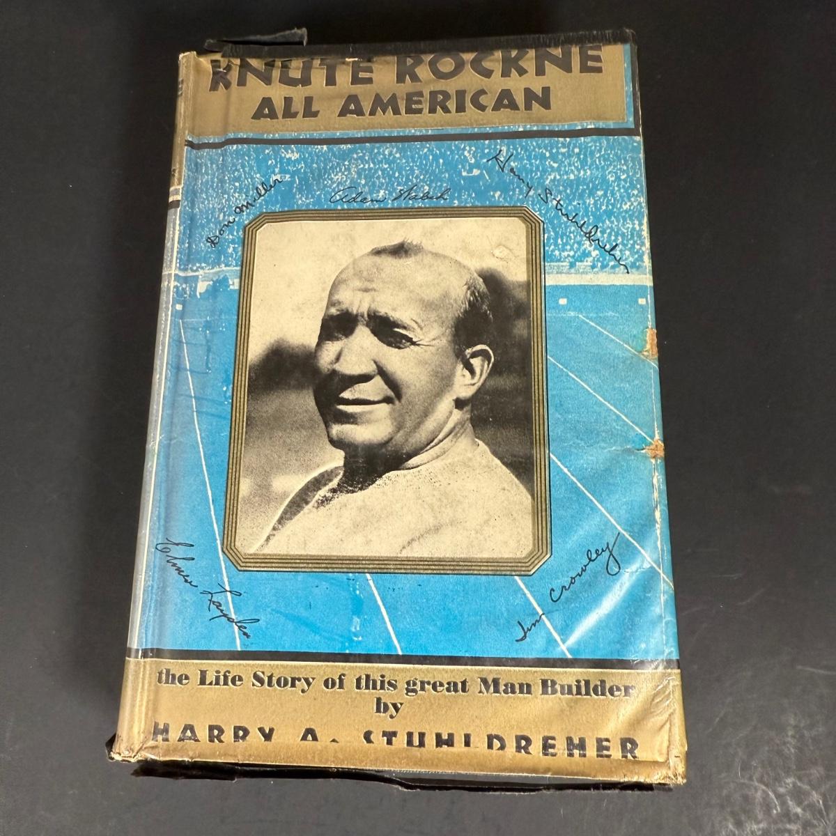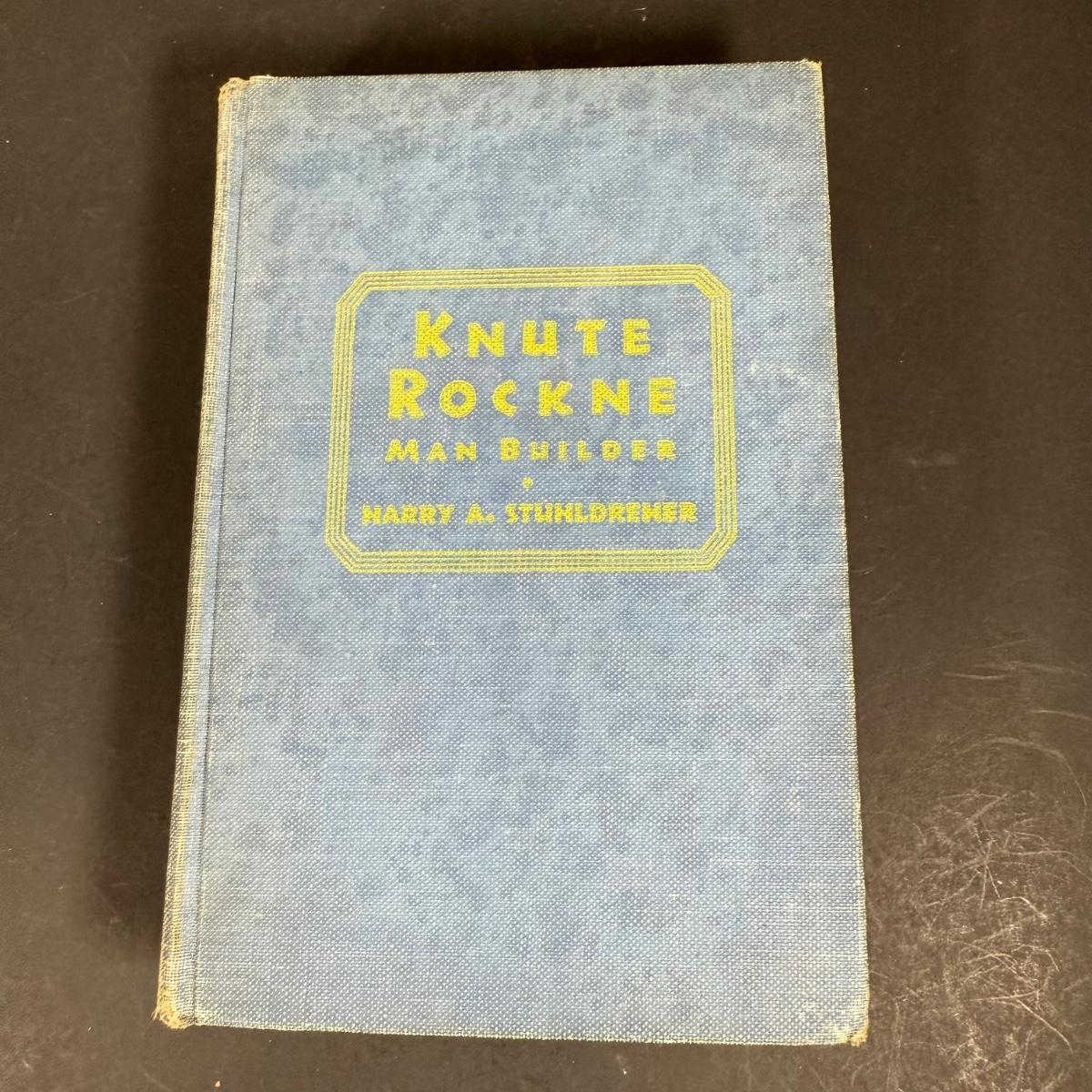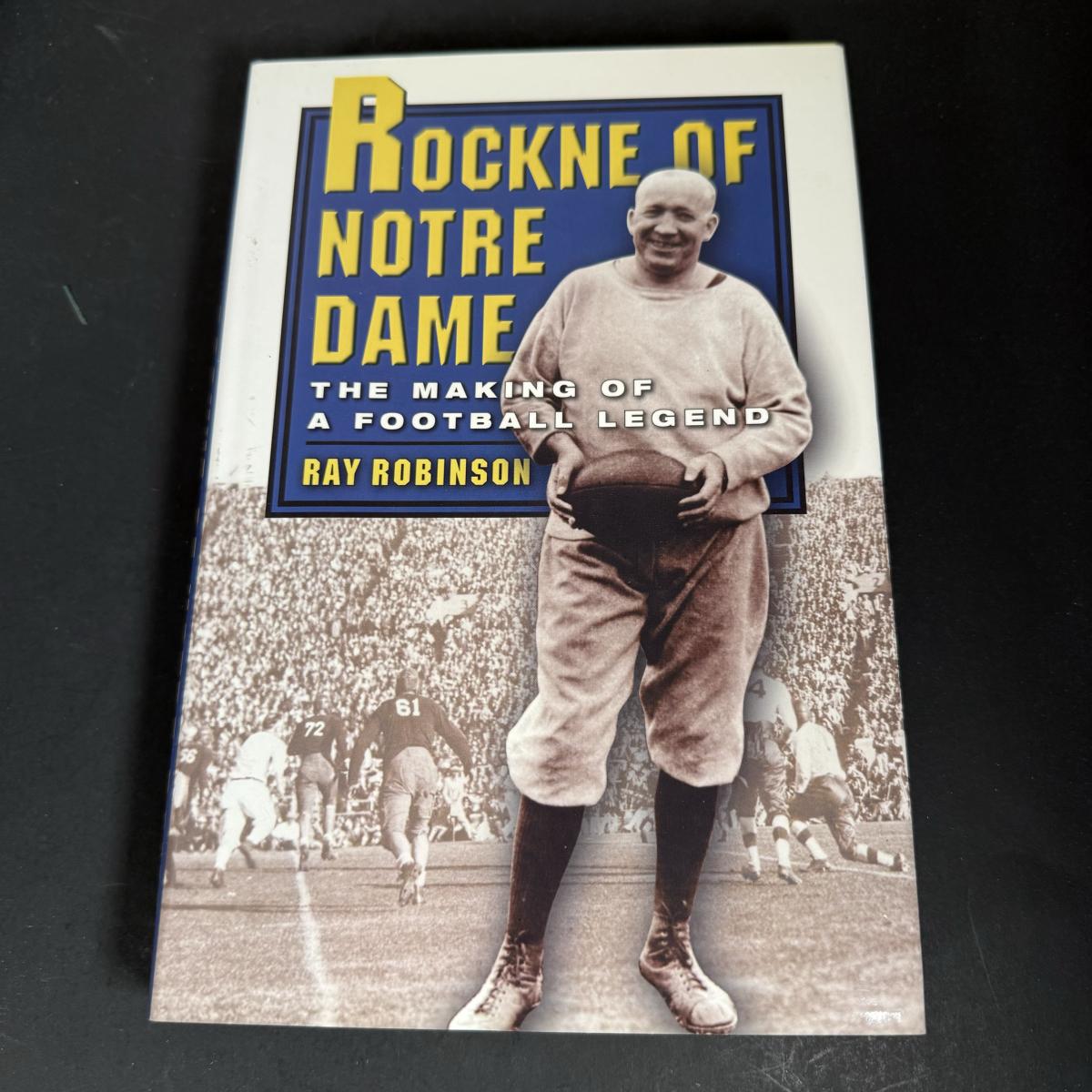 LOT 98G: Knute Rockne Notre Dame Collection - Record of 1940 All American Radio Show w/ Ronald Reagan, Framed "Great Moments of Football Greats" Poster, Books by & about Rockne & More