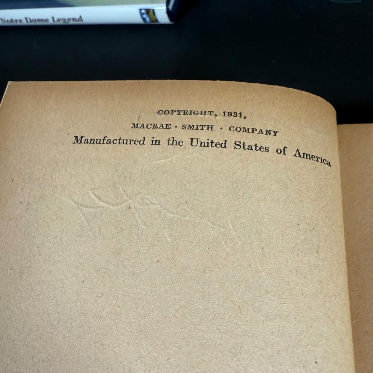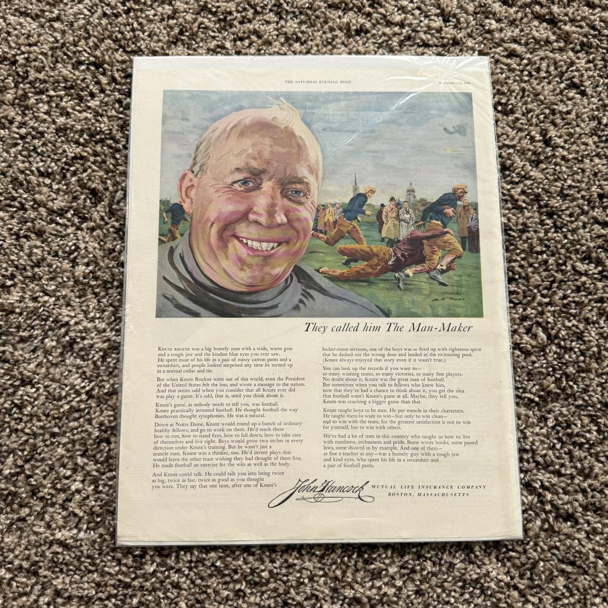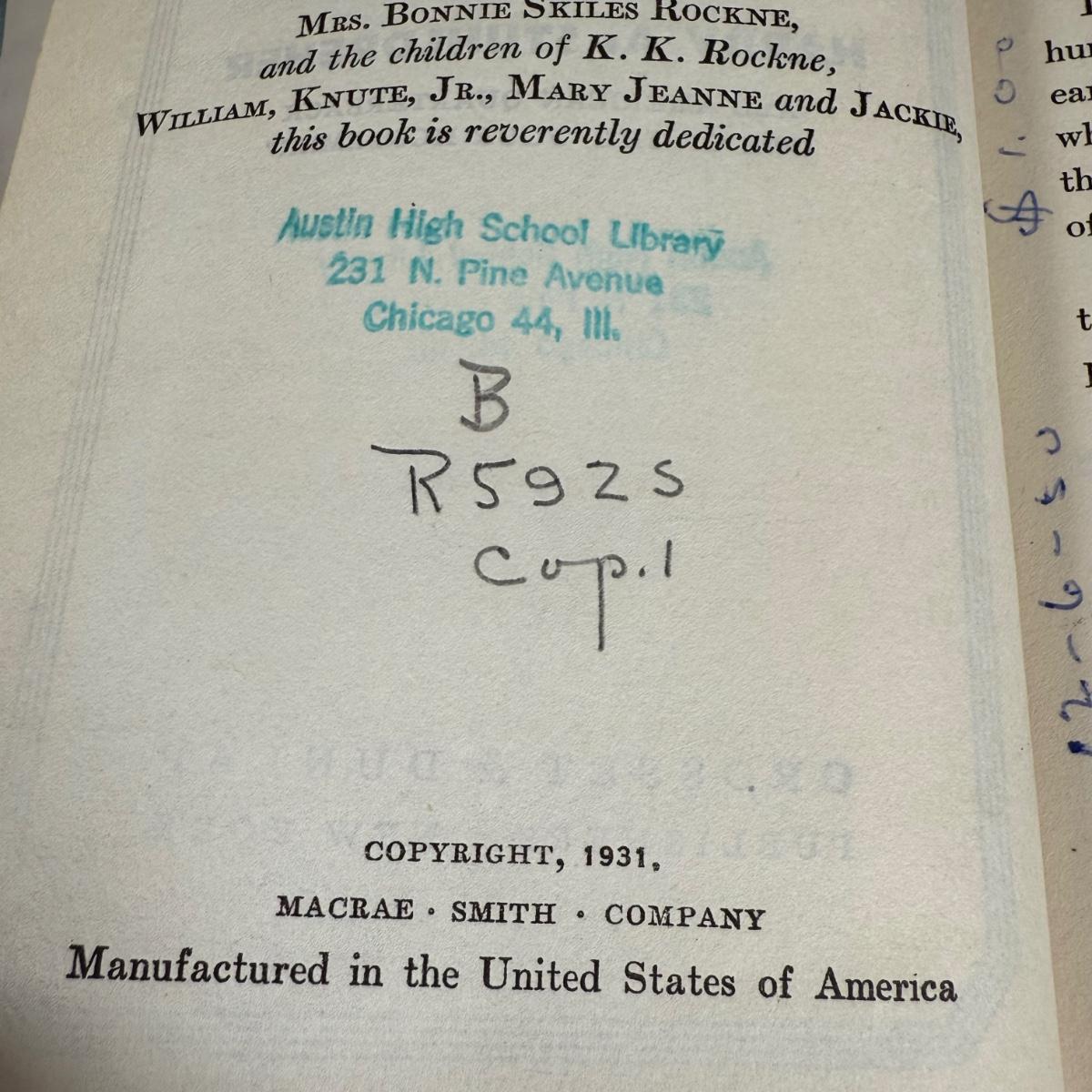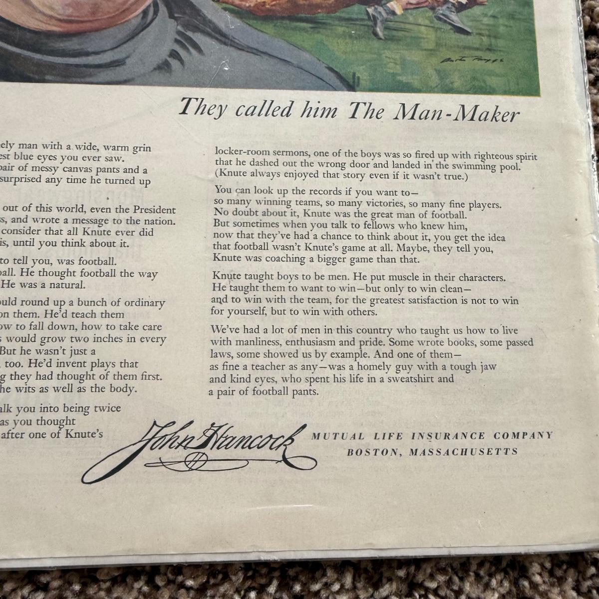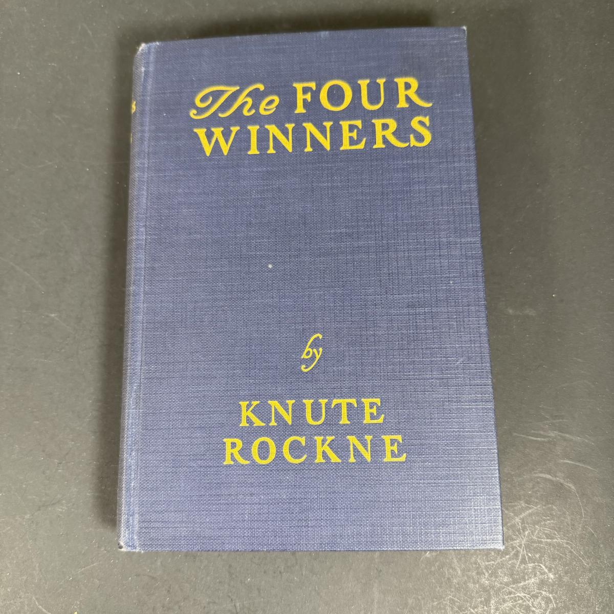 LOT 98G: Knute Rockne Notre Dame Collection - Record of 1940 All American Radio Show w/ Ronald Reagan, Framed "Great Moments of Football Greats" Poster, Books by & about Rockne & More
