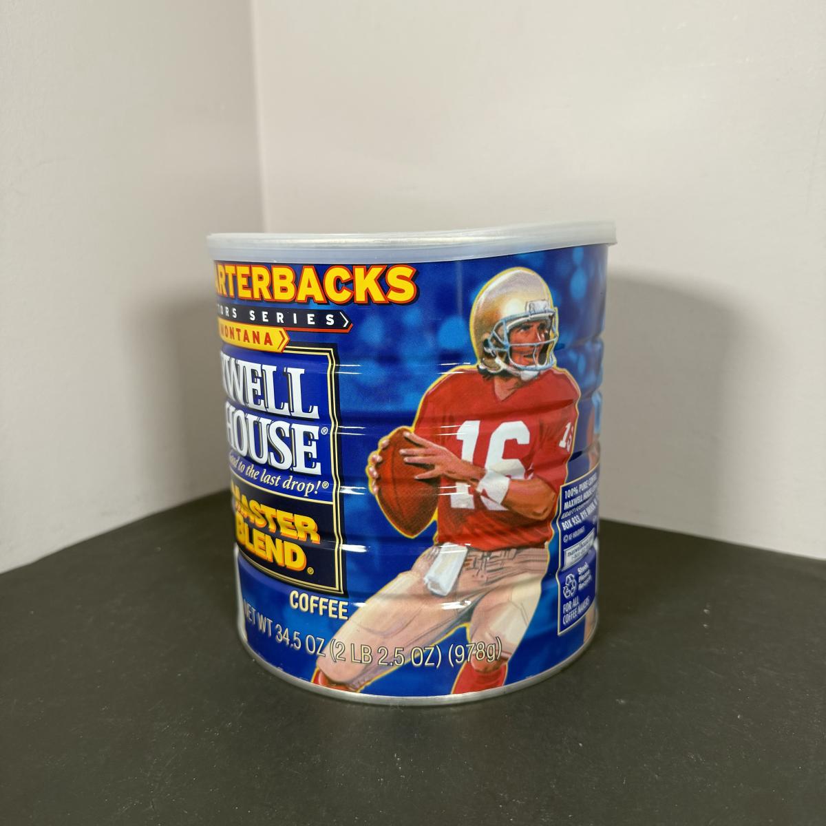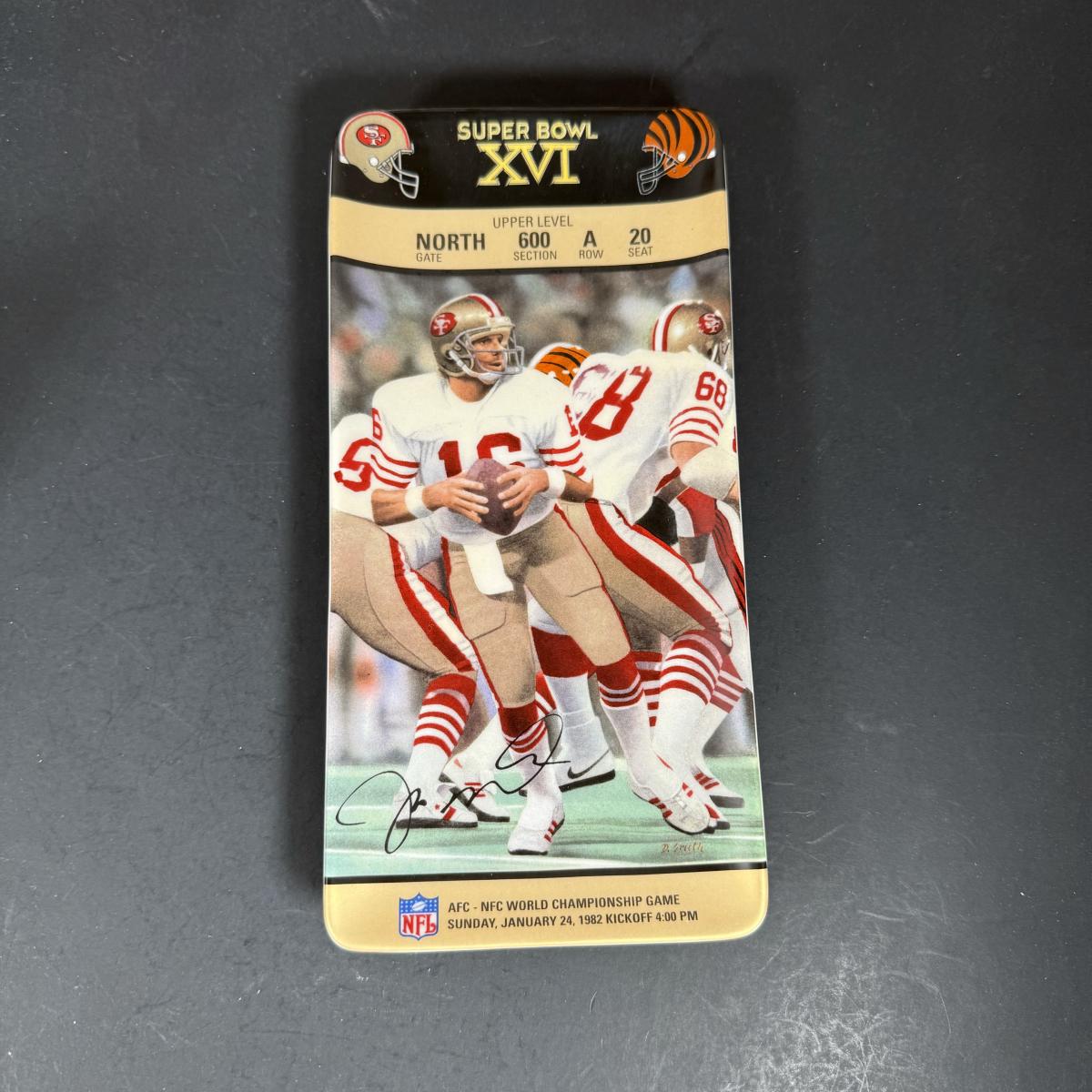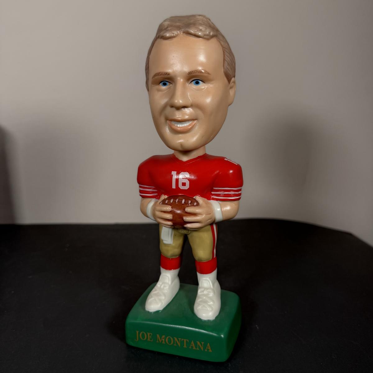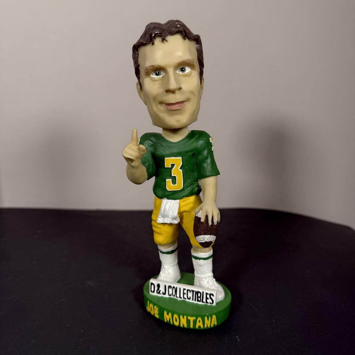 LOT 99G: Joe Montana Memorabilia - Highland Mint Framed Hall of Fame Photo, Coin & COA, Maxwell House Star Quarterbacks Can (unopened), Sports Illustrated Figure, Bobble Heads & More