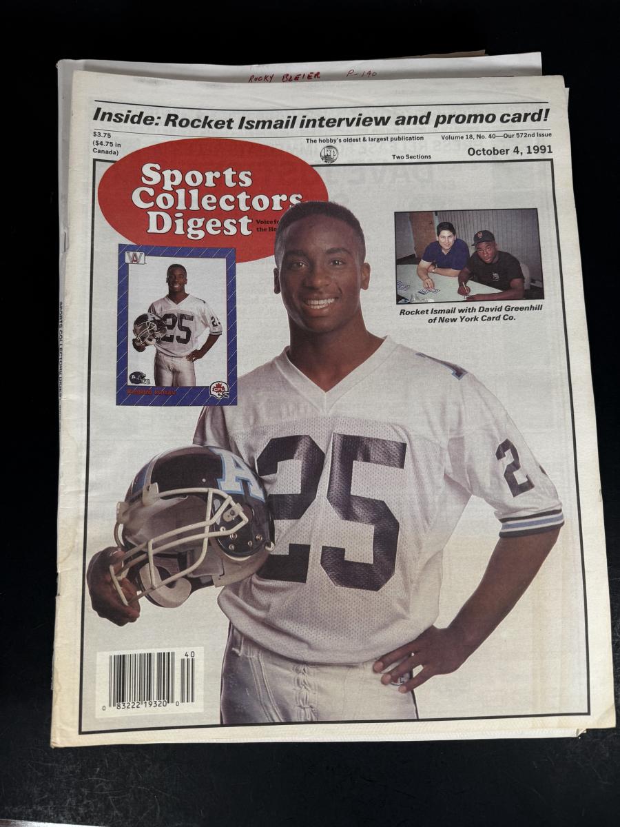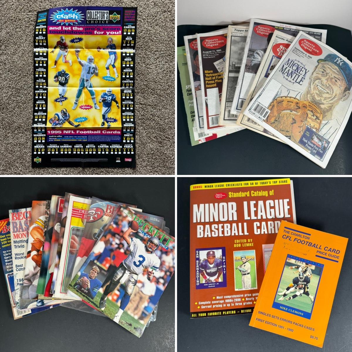 LOT 107G: 1990s Sports Collector Digest, Upper Deck Football Poster, Football Magazines, Charlton CFL Football Card Price Guide & More