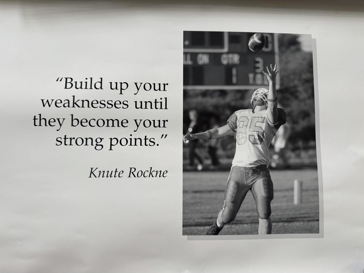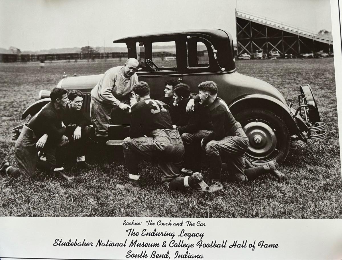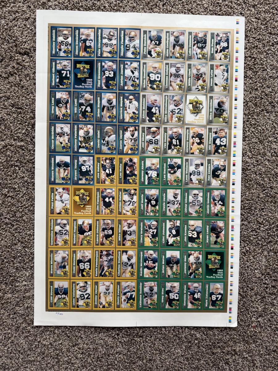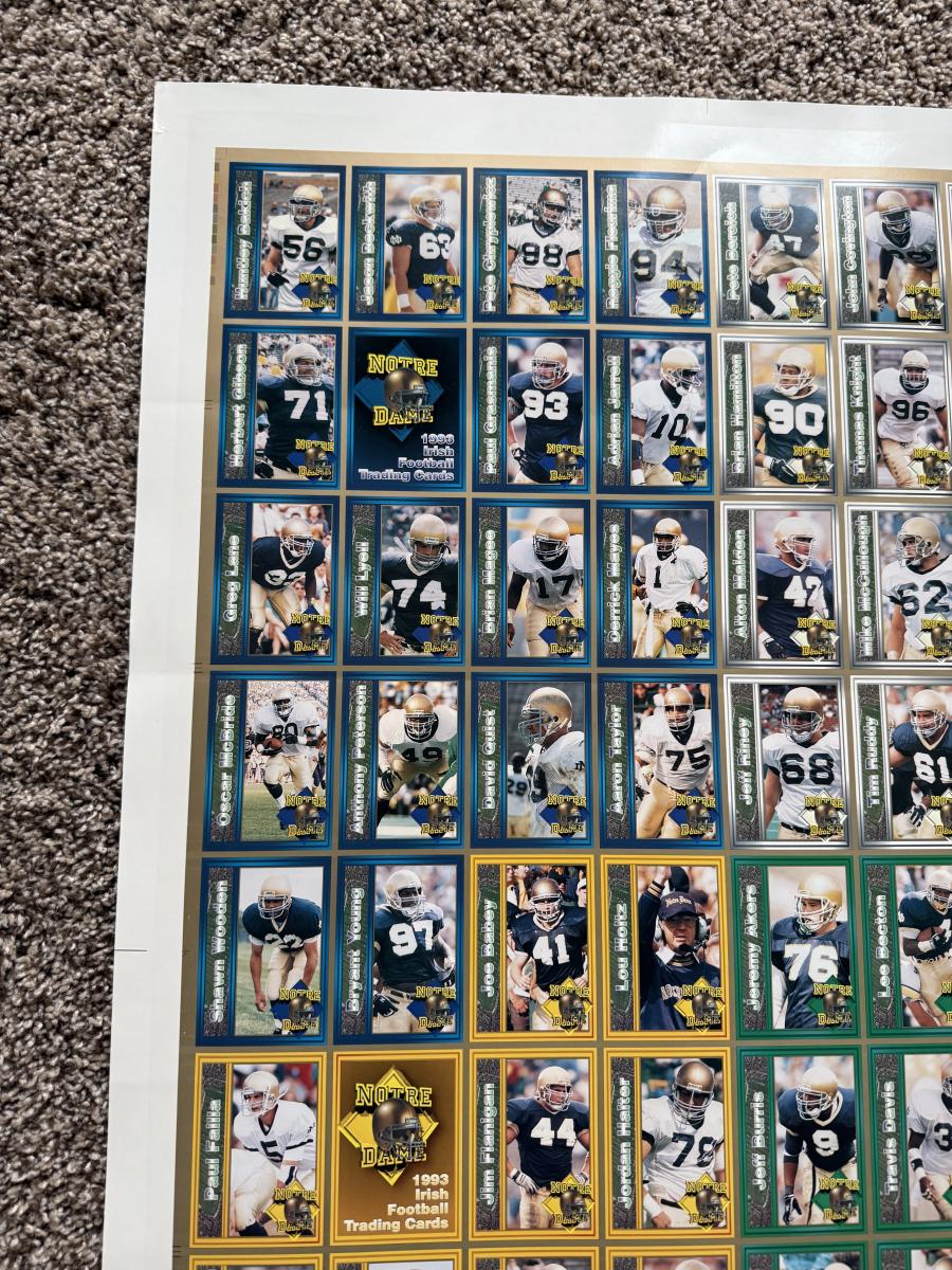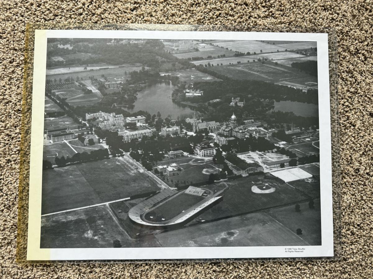 LOT 111G: Notre Dame Memorabilia Collection - Football Card Poster #313/1993, 1996 Tracy Stouffer Campus Photos, Signed & Numbered Stadium Photo 105/1000 & Knute Rockne Quote Posters