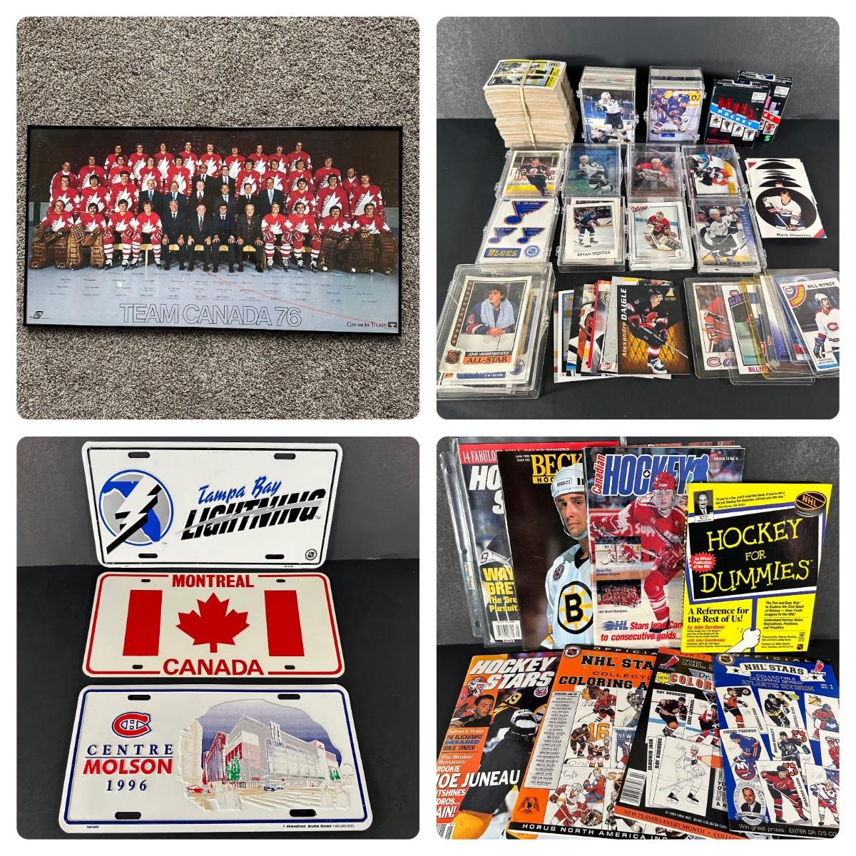 LOT 121: Hockey Memorabilia Collection - Magazines, Cards, License Plates & More!