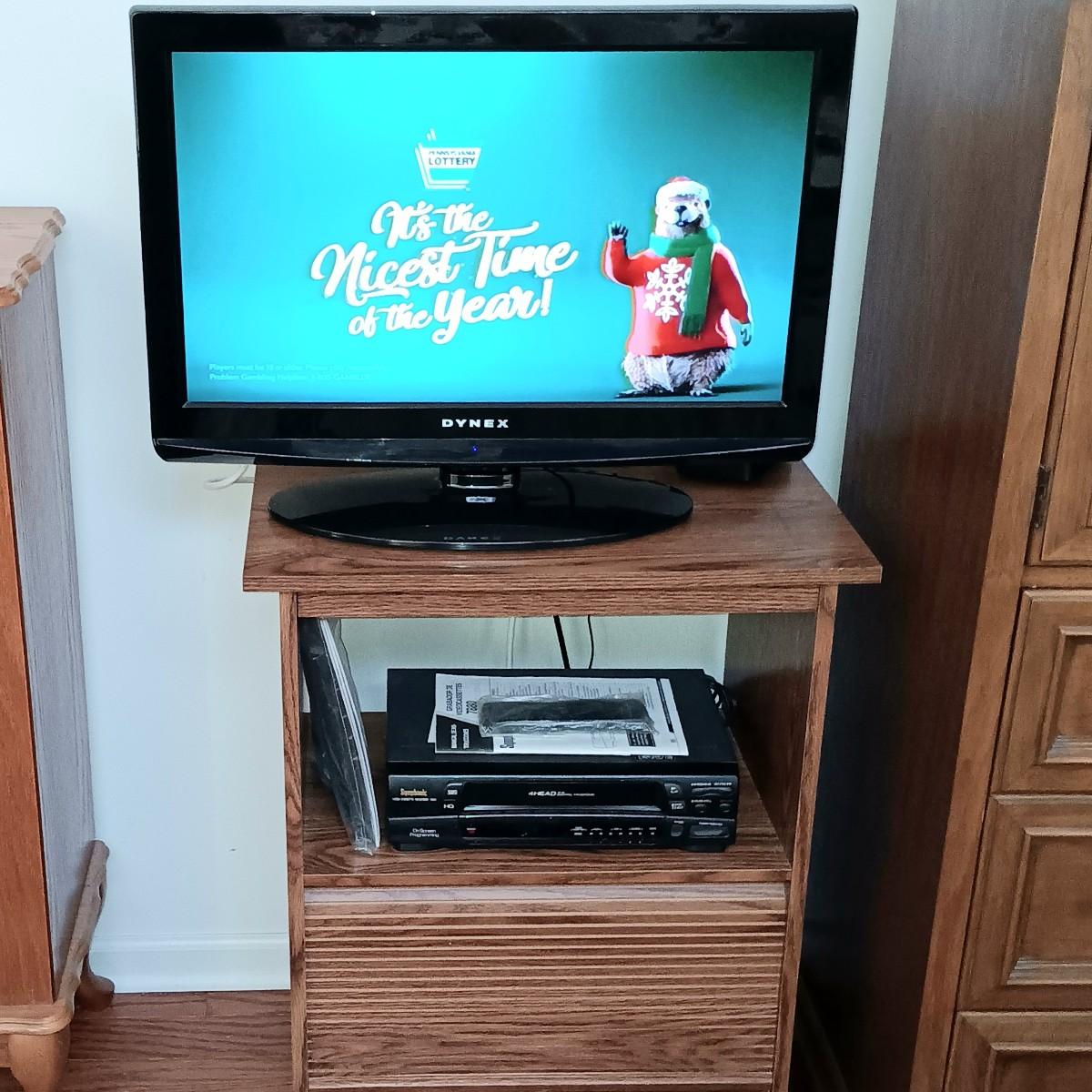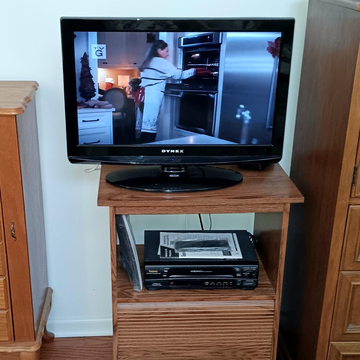 LOT 5: Dynex 26" LCD TV/DVD Combo w/ Symphonic VCR 7880 & TV Stand