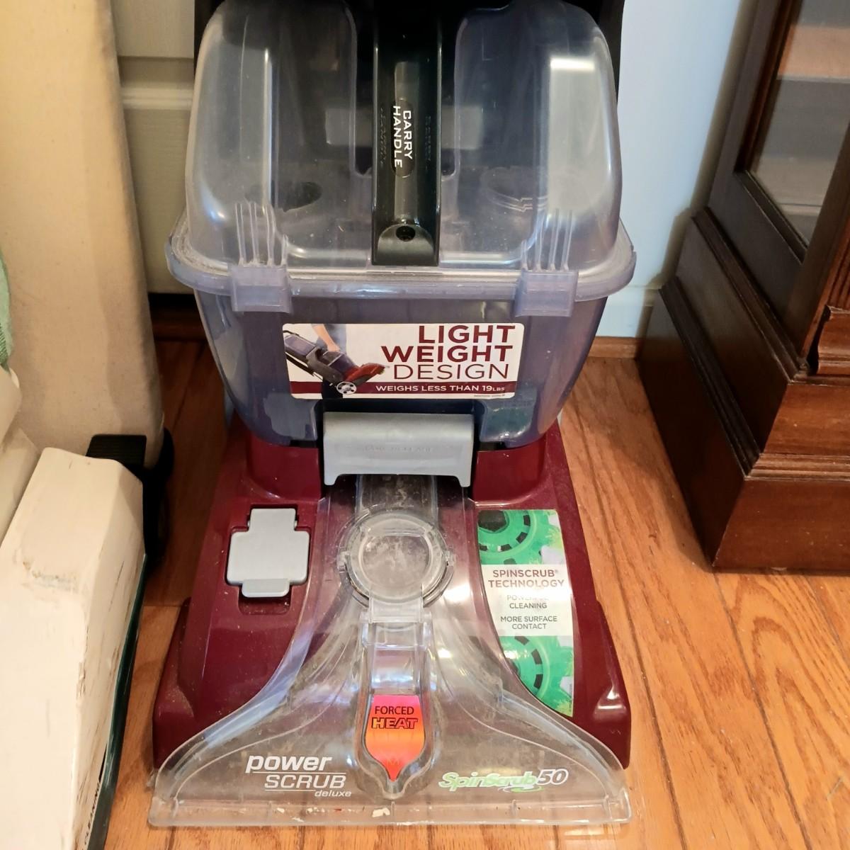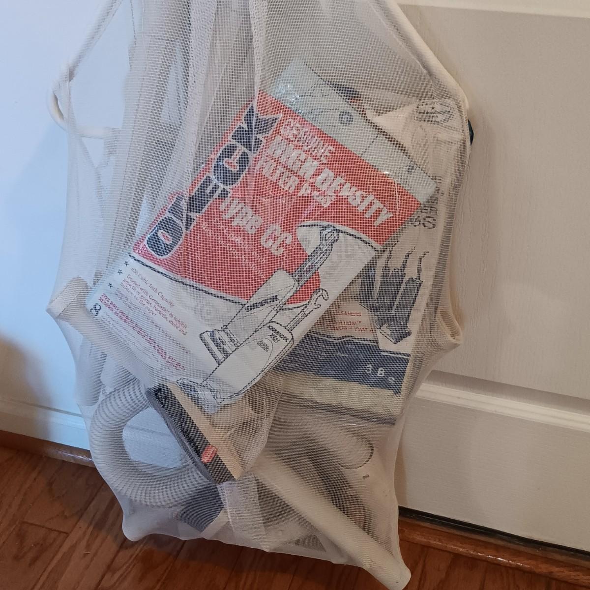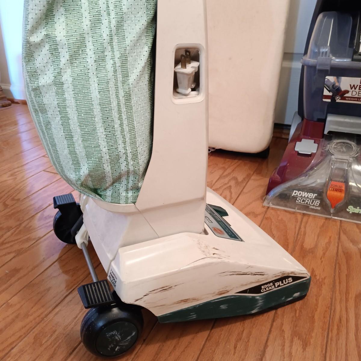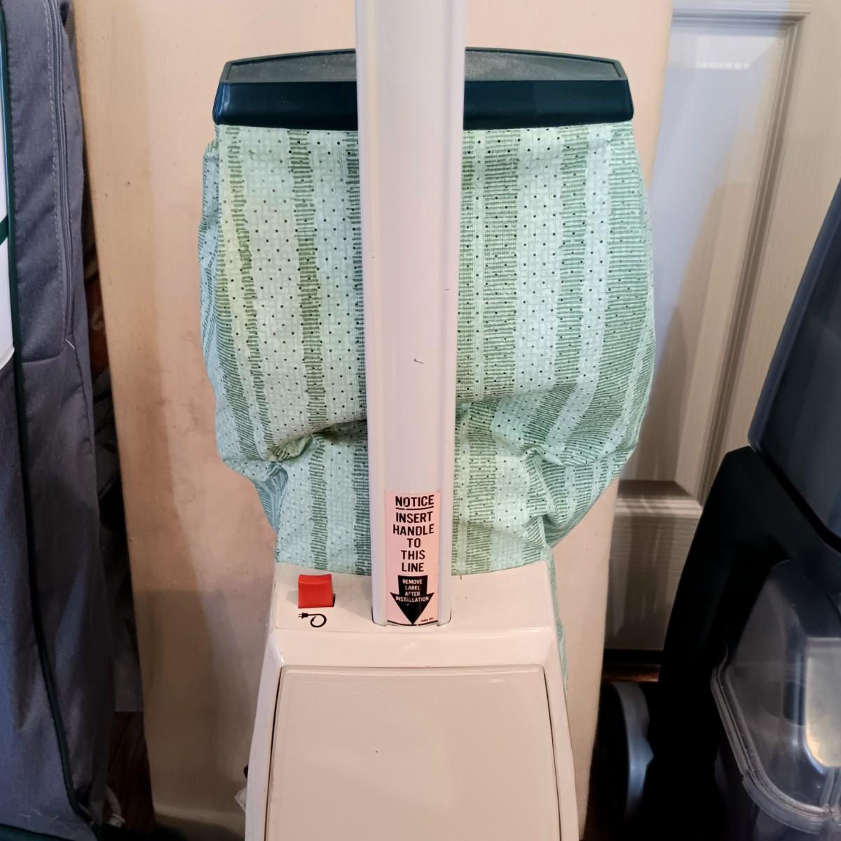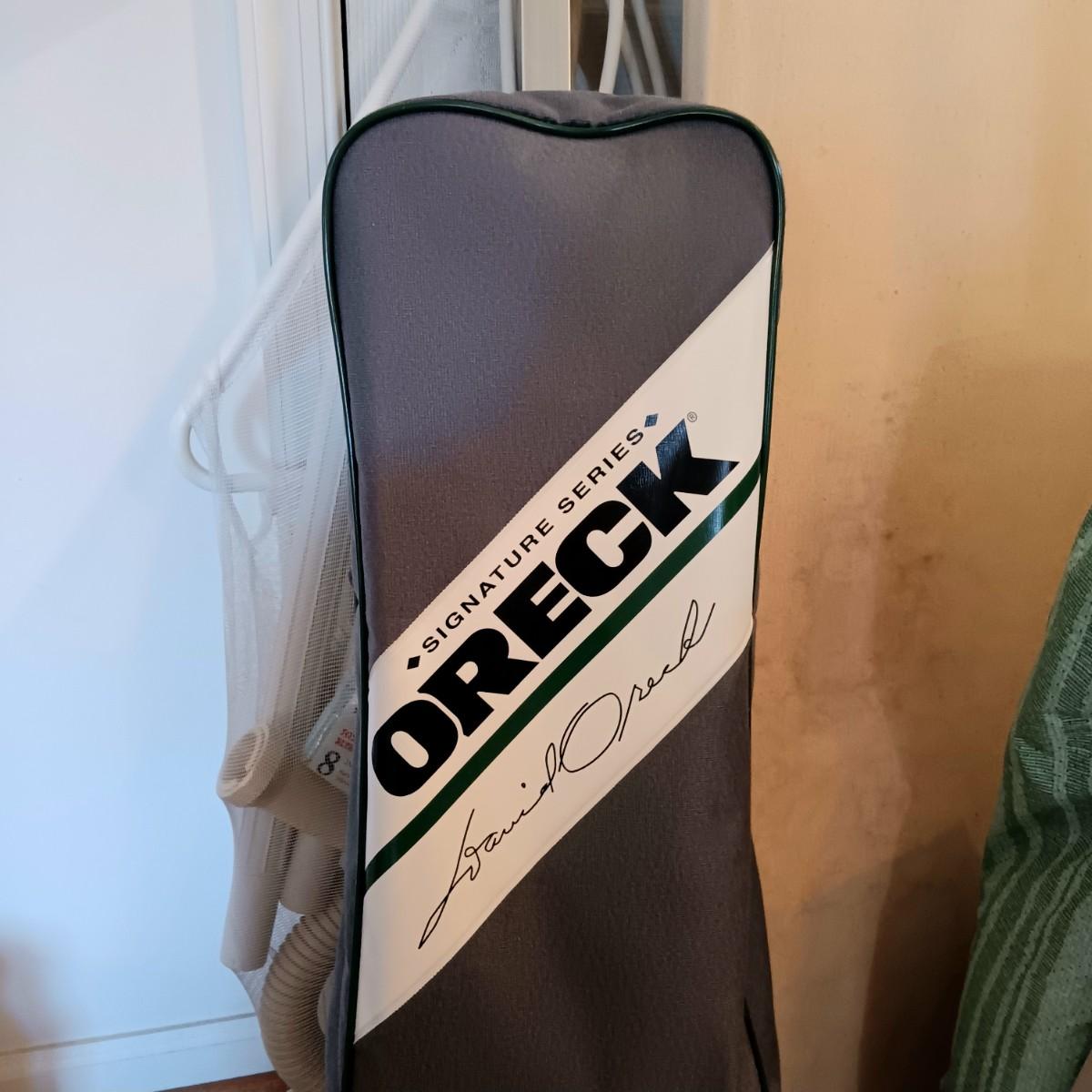 LOT 9: Vintage Oreck XL Signature Series and Hoover Concert One Vaccuums w/ Hoover PowerScrub Deluxe Carpet Cleaner, Dirt Devil Scorpion & Ironing Board