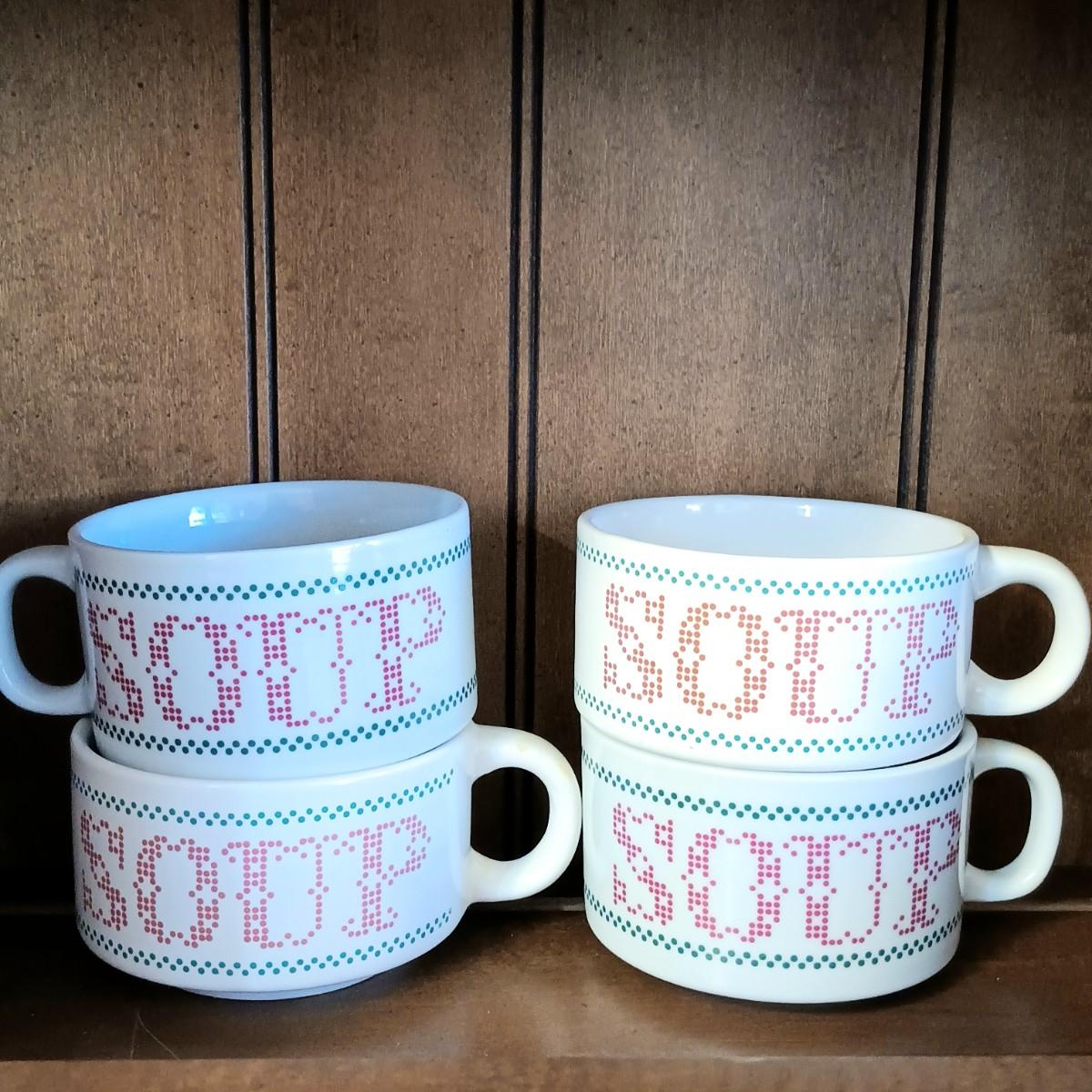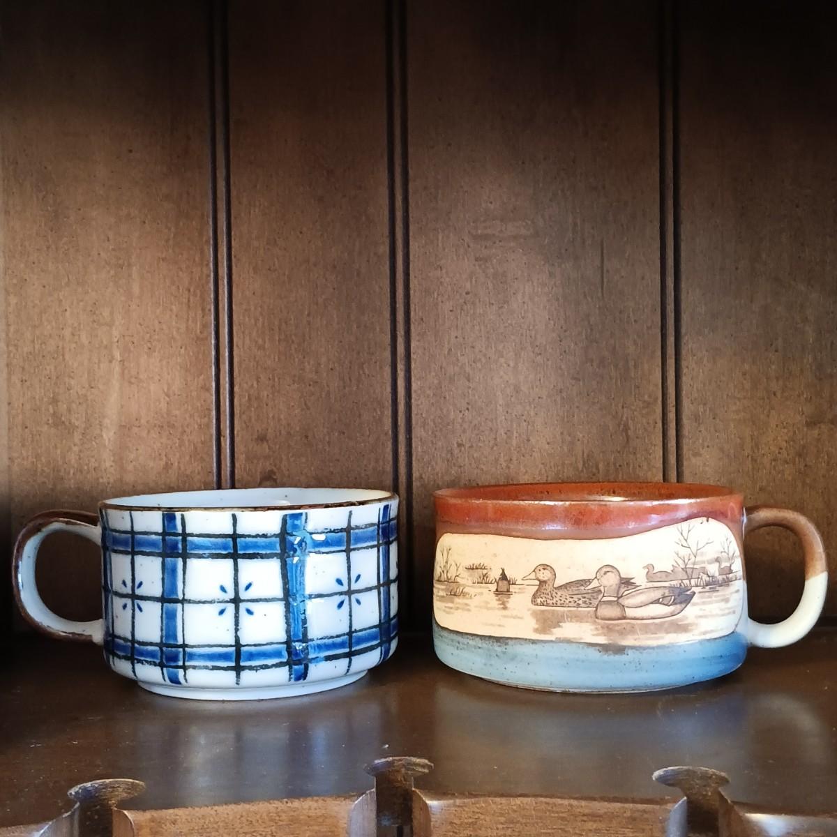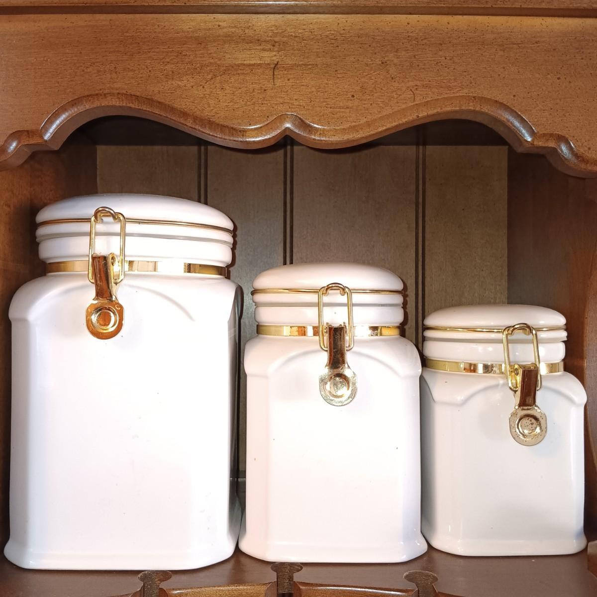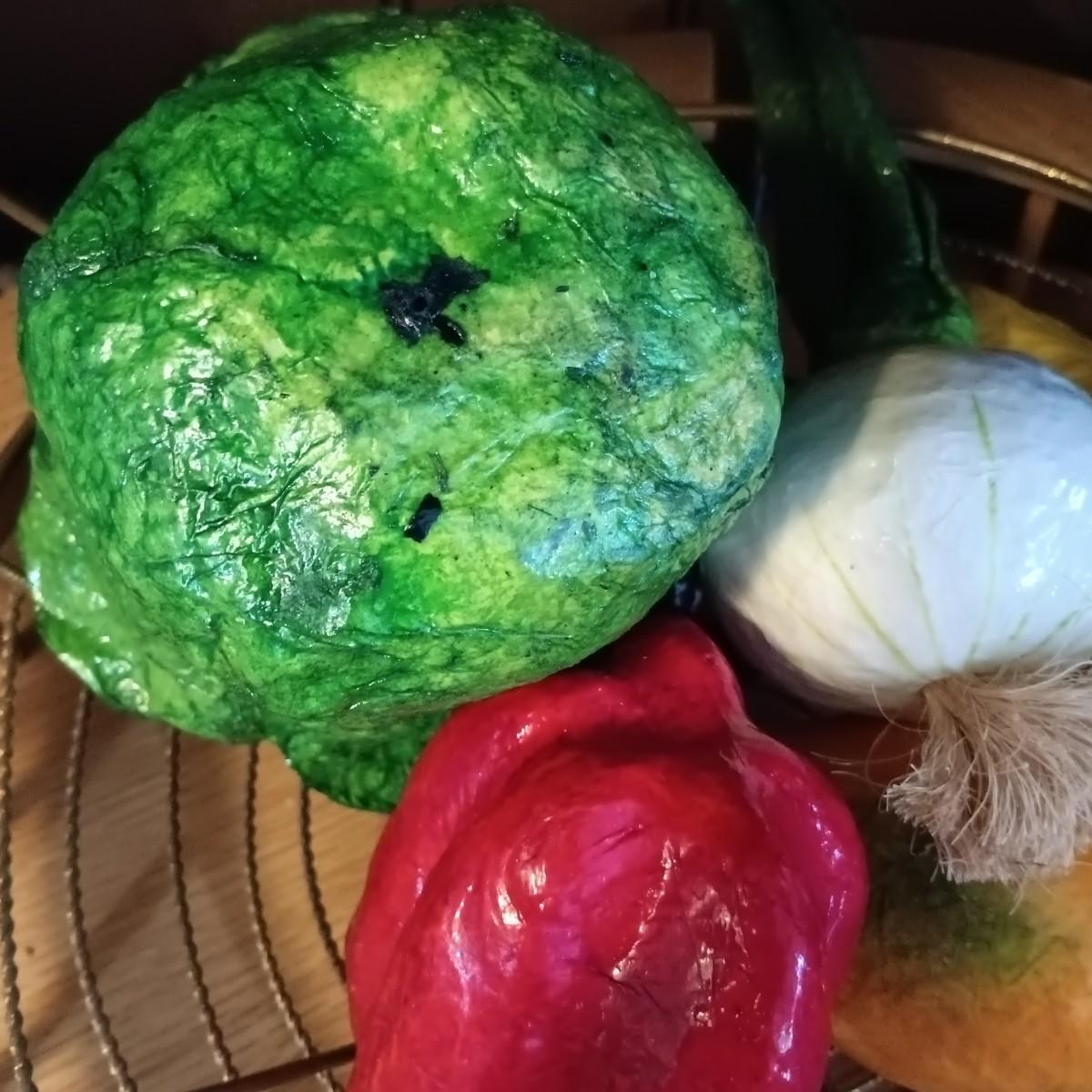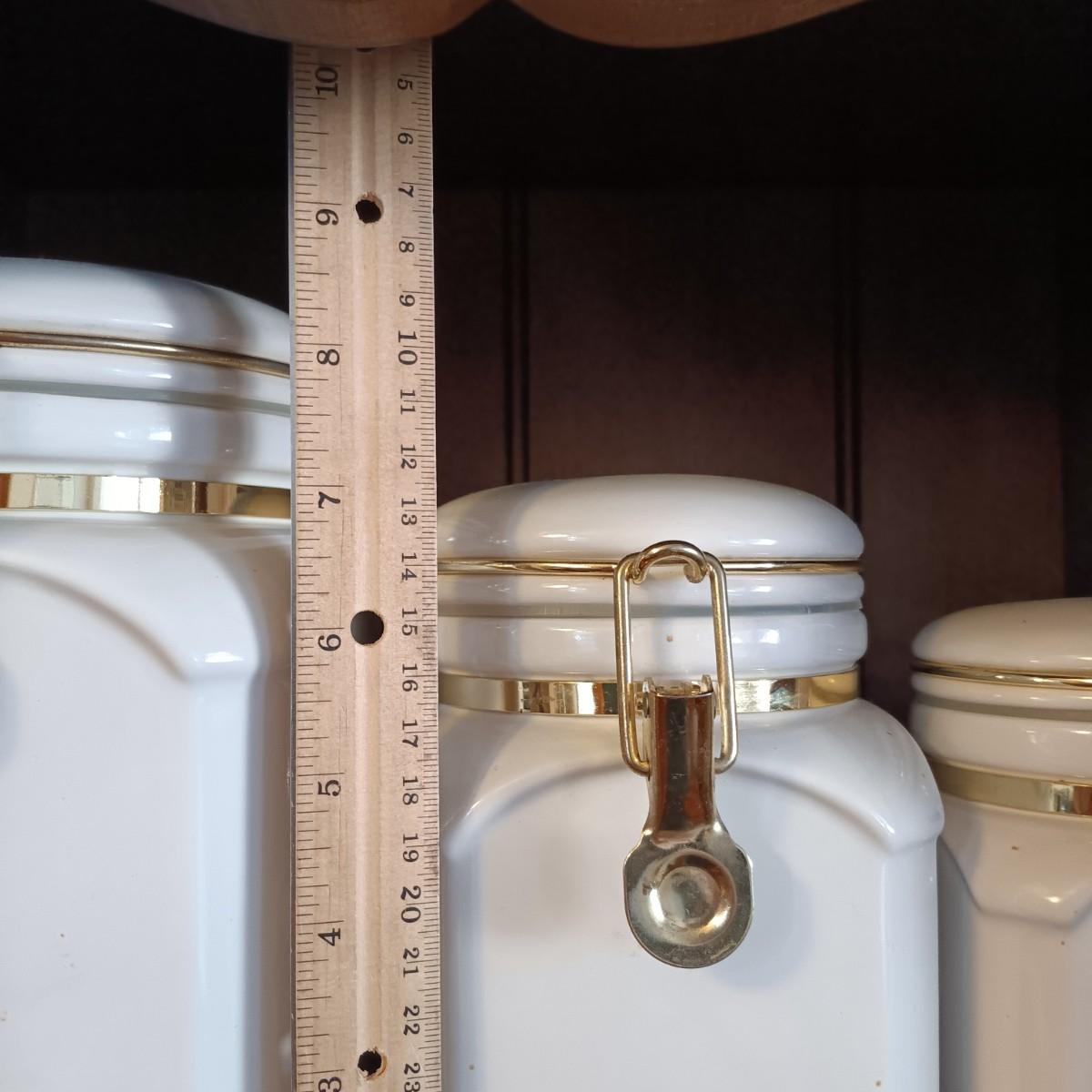 LOT 14: RS Ceramic Canisters, Houston Foods Co. Soup Mugs, Paper Mache Vegetables in Wire Basket & More
