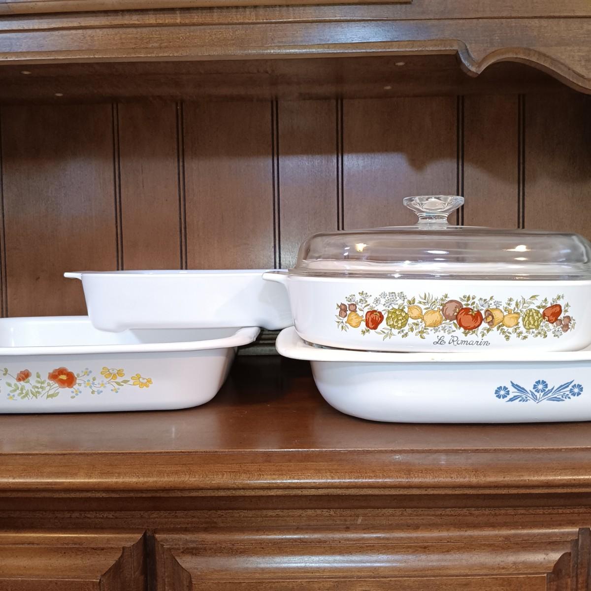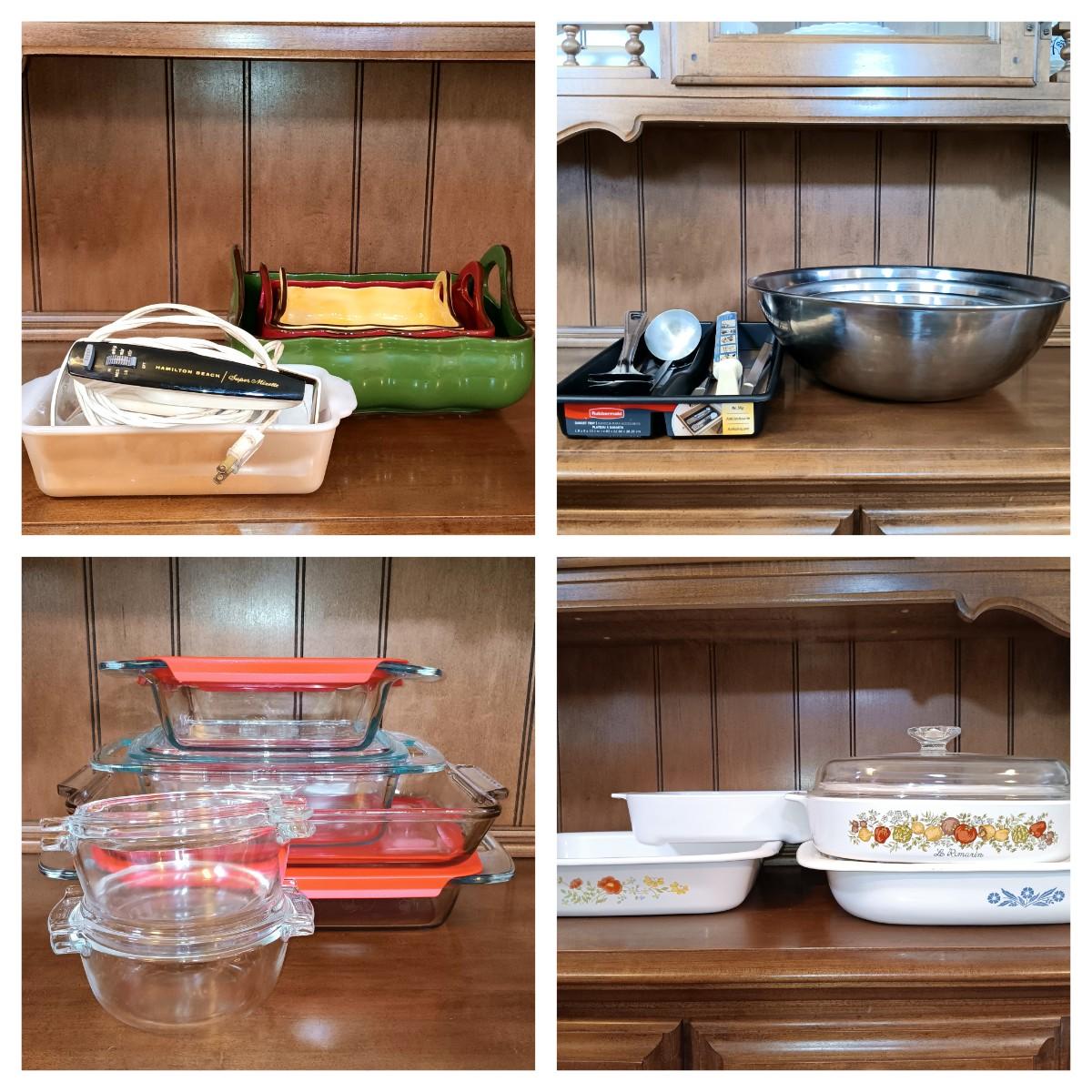 LOT 20: Commodities Nesting Casserole Dishes, Pyrex Glassware, Corning Ware, Fire King & More