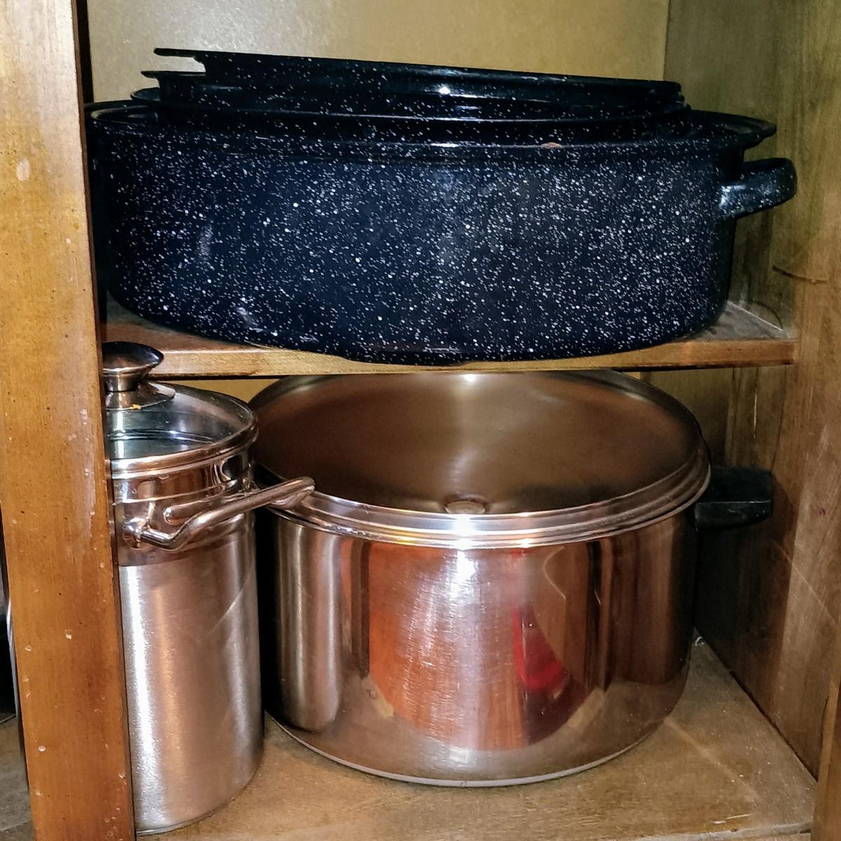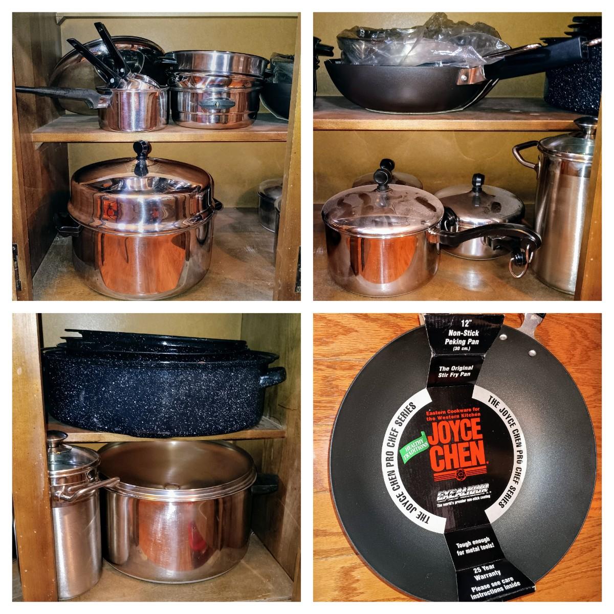 LOT 23: Farberware Pots/Pans Set, Enamel Roasting Pans, Joyce Chen Stir Fry Pan & More