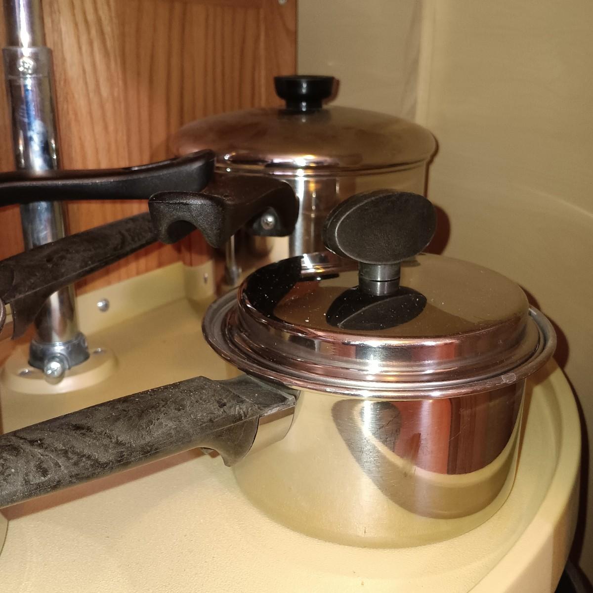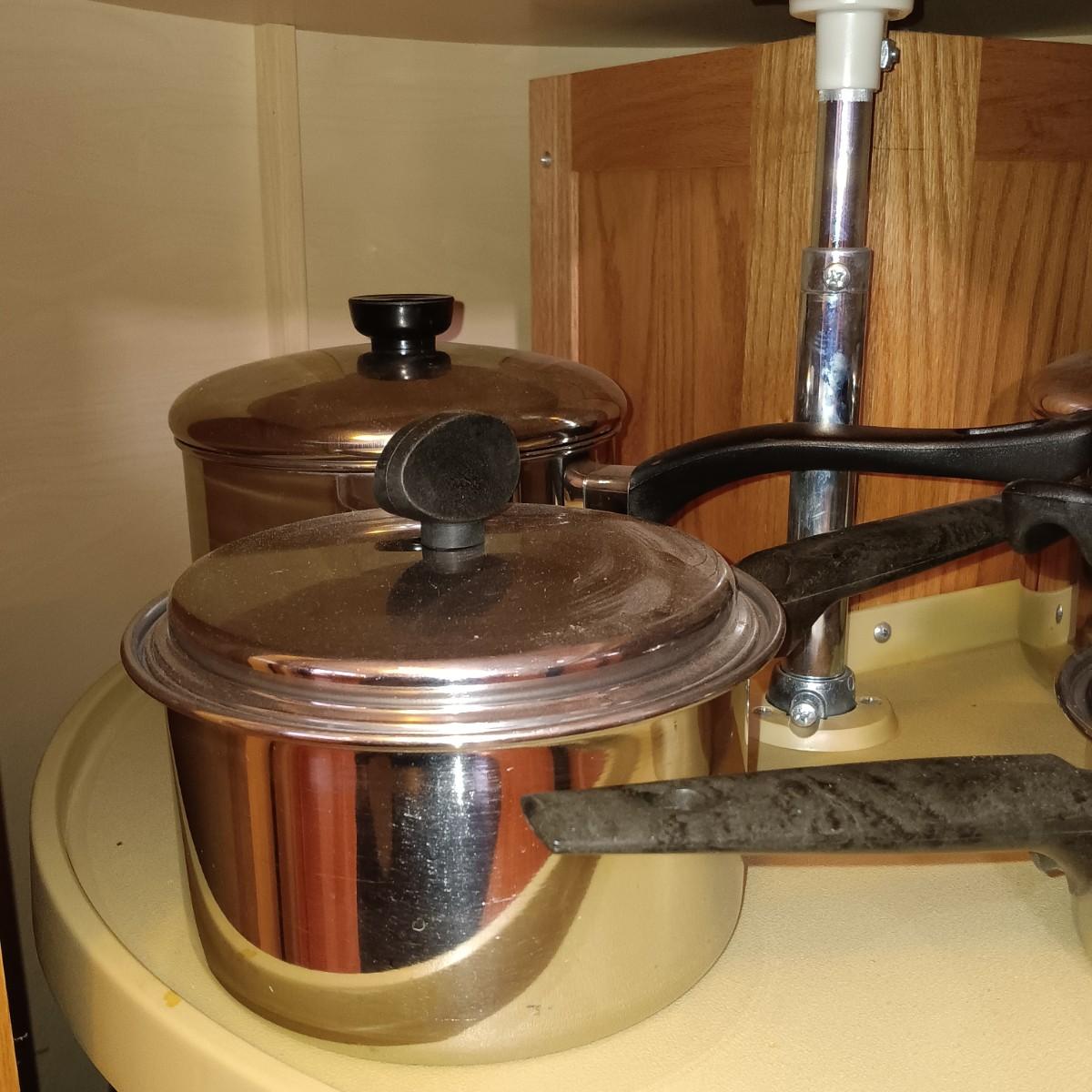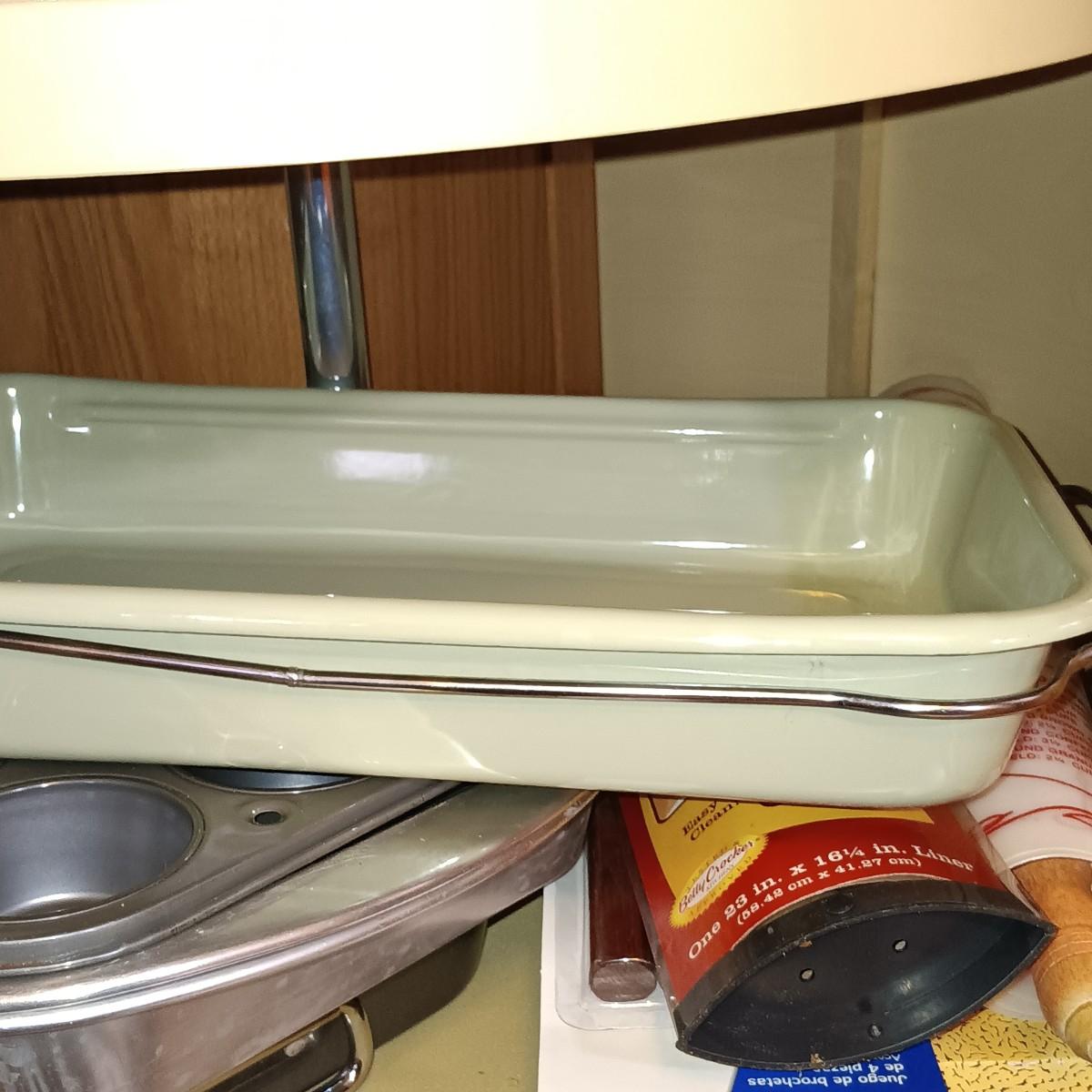 LOT 24: Revereware and Ekco Pots, Baking Supplies, Enamel Casserole Dish & More