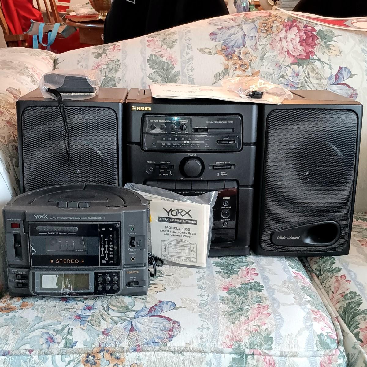 LOT 25: York 1850 AM/FM Mini Stereo, Fisher PH-D650 Stereo Boombox & Sony TCM-11 Cassette-corder