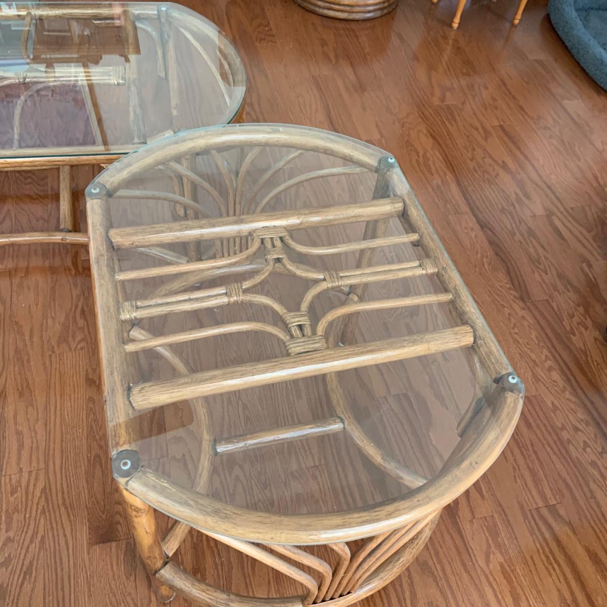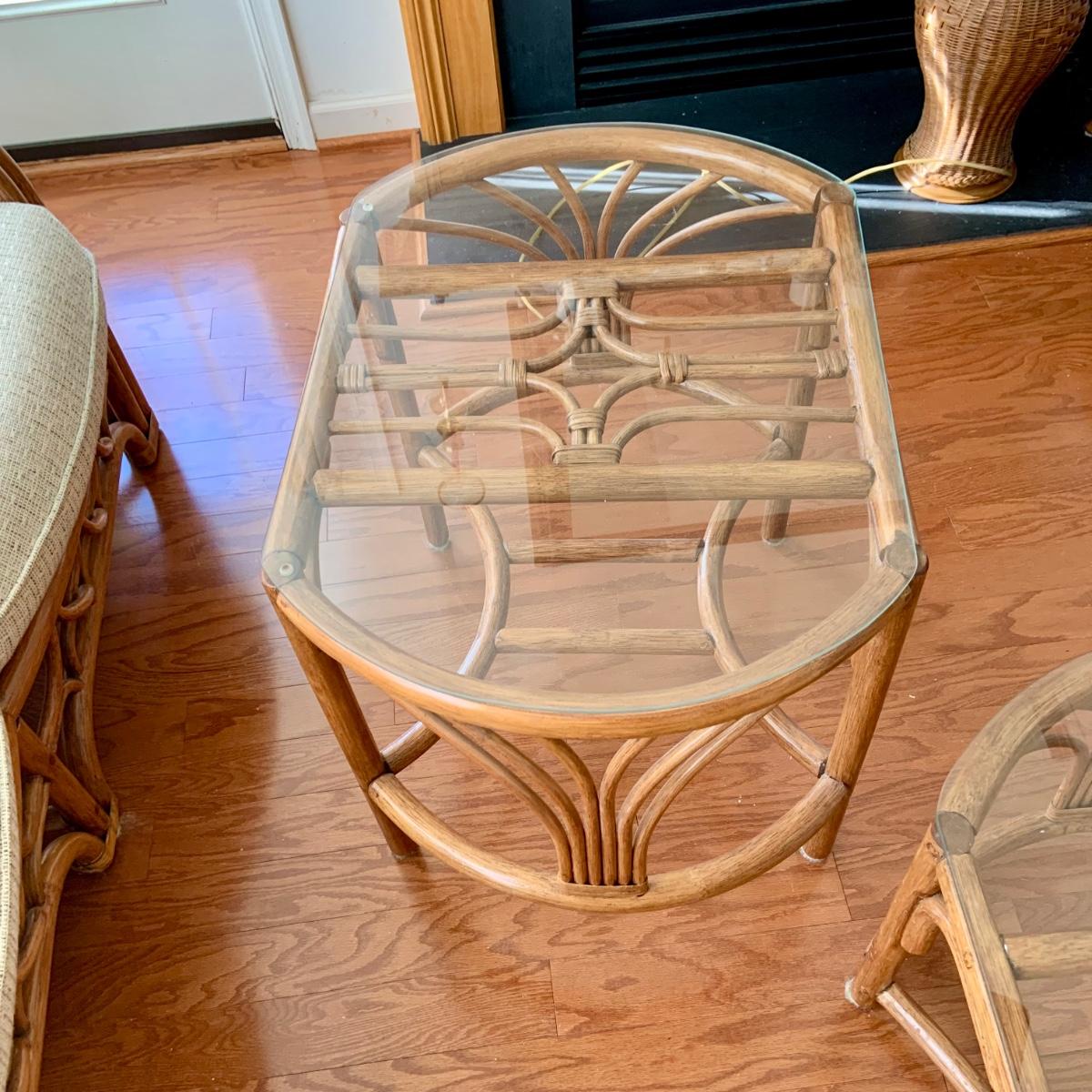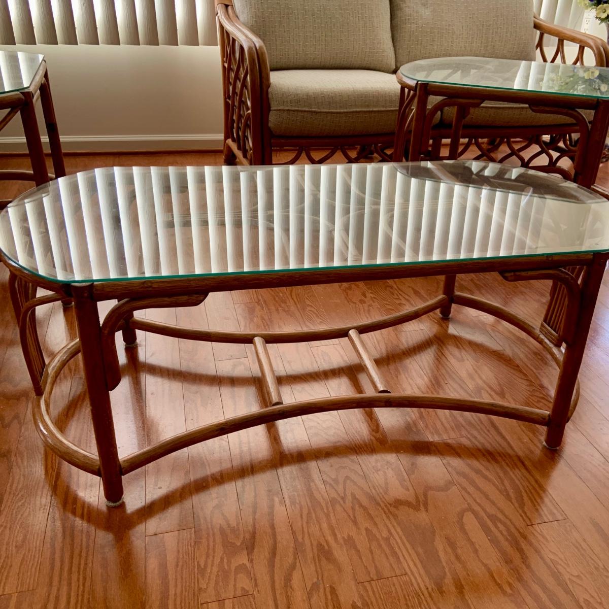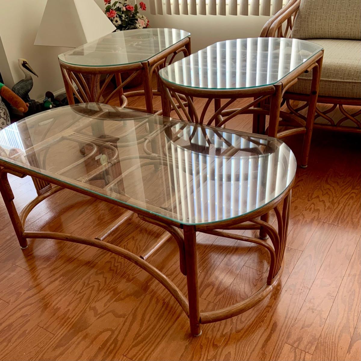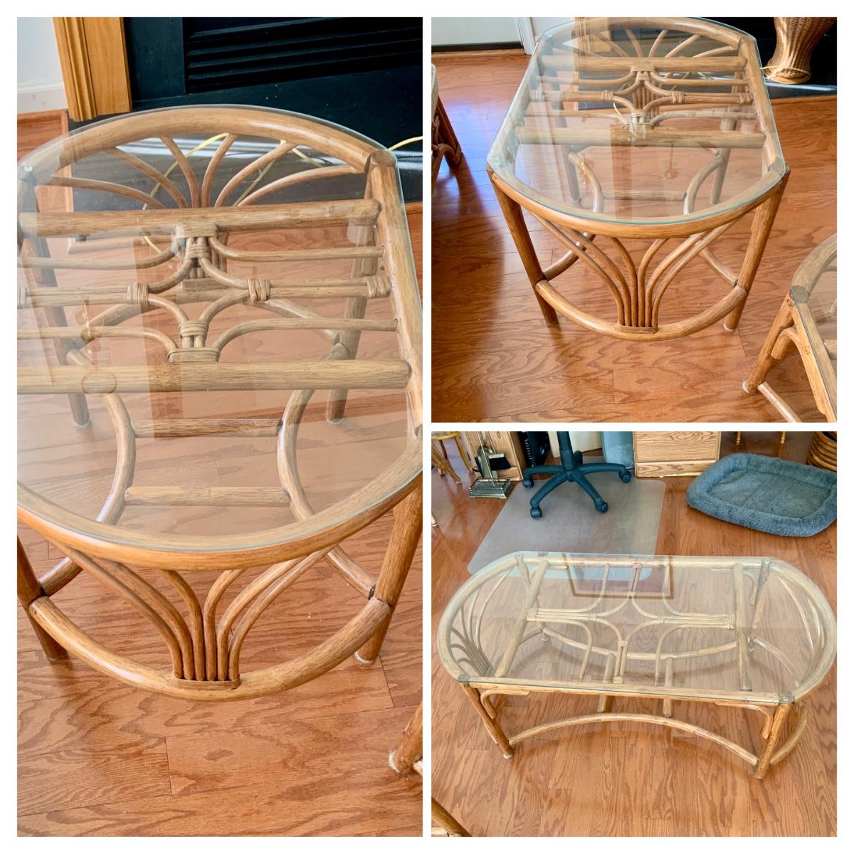 LOT:31: Set of Three (3) Bentwood Ratan and Glass Top Tables - 2 End Tables and 1 Coffee Table