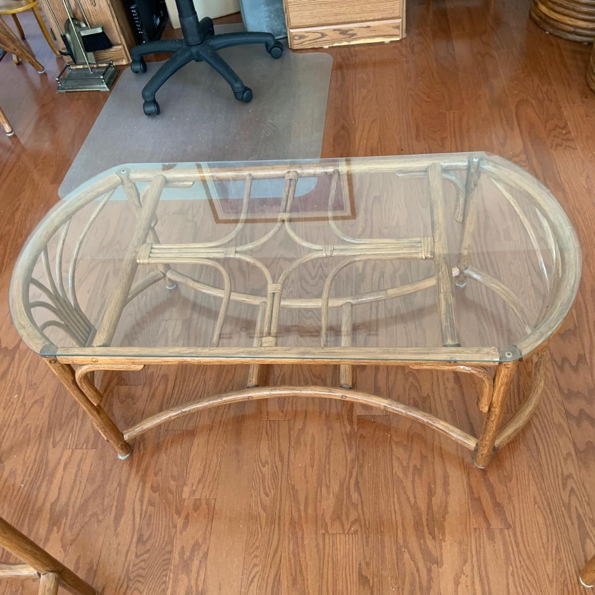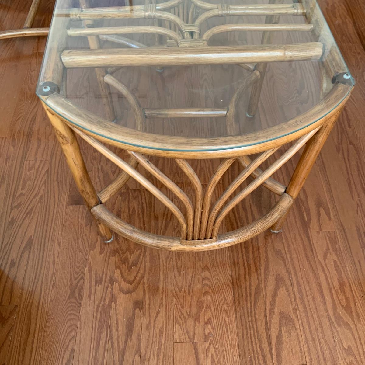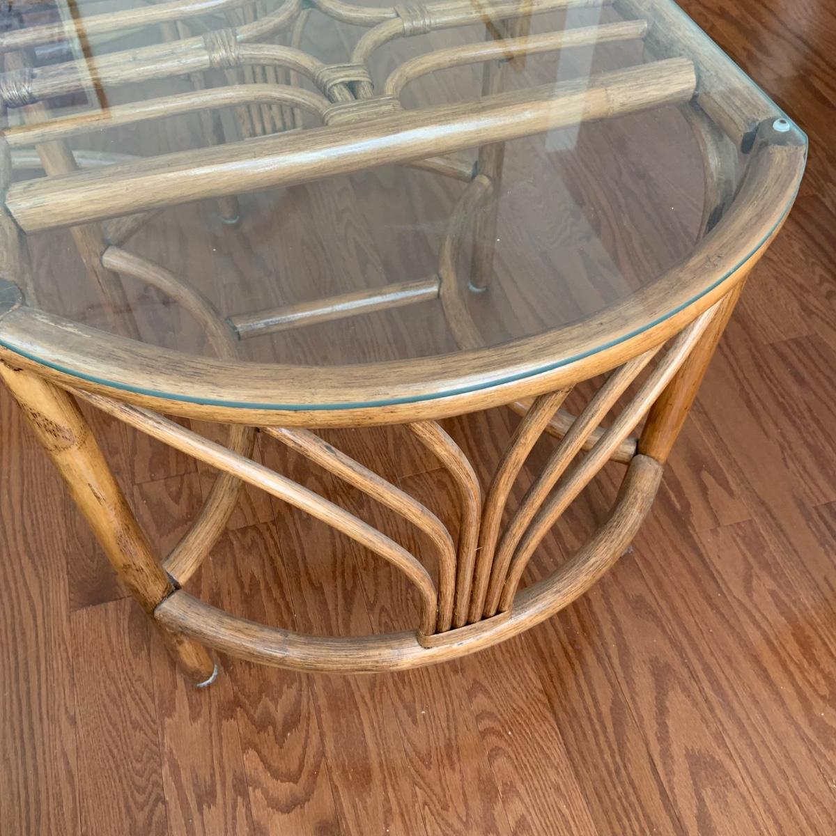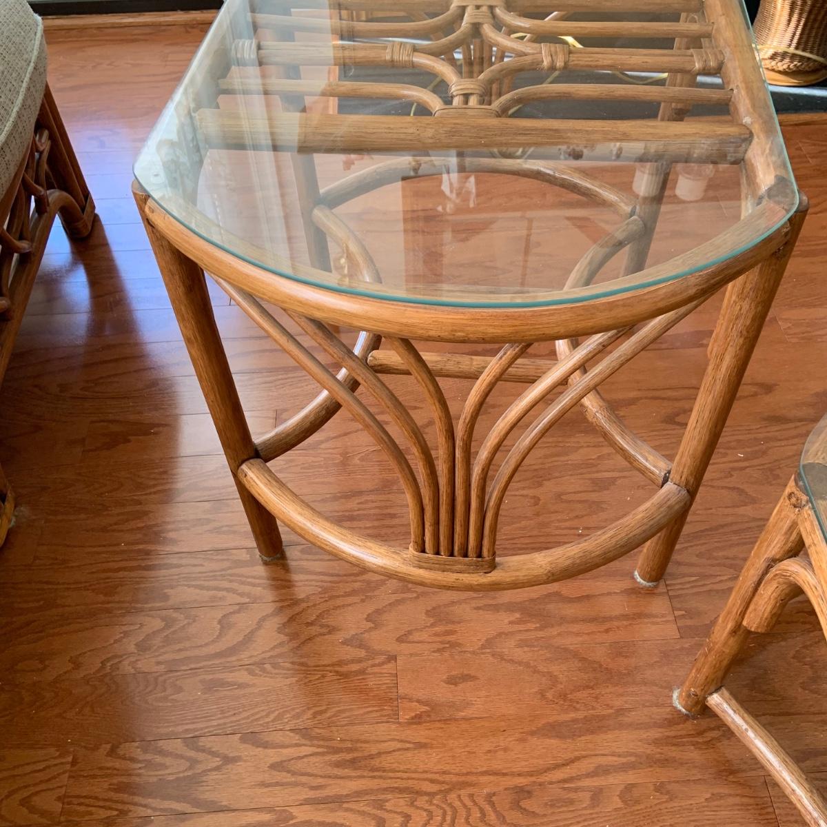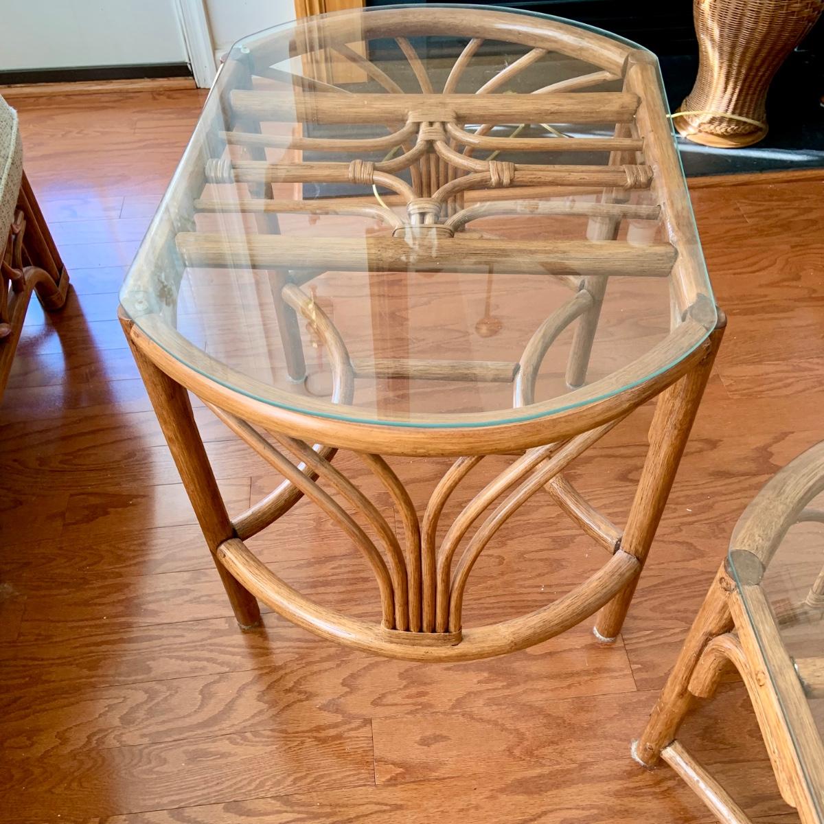 LOT:31: Set of Three (3) Bentwood Ratan and Glass Top Tables - 2 End Tables and 1 Coffee Table