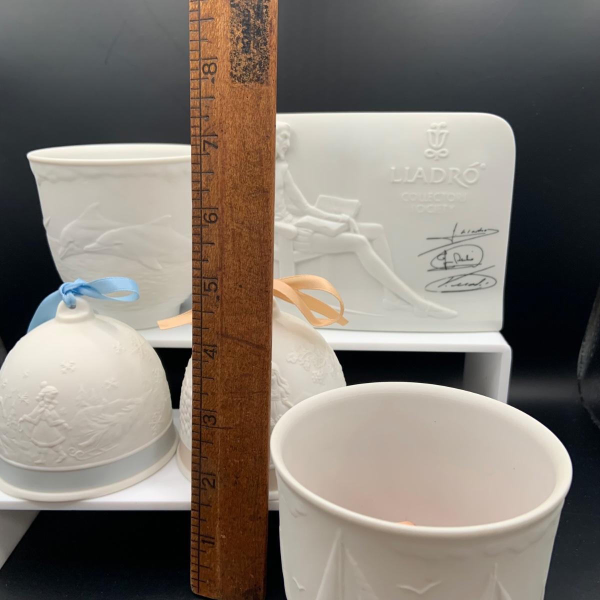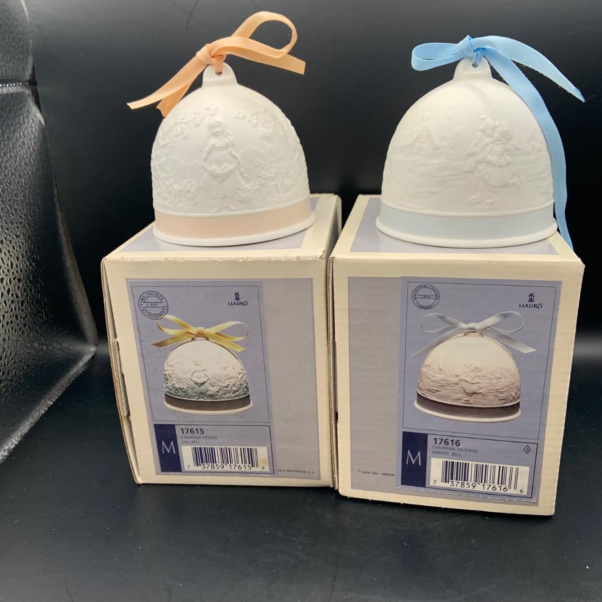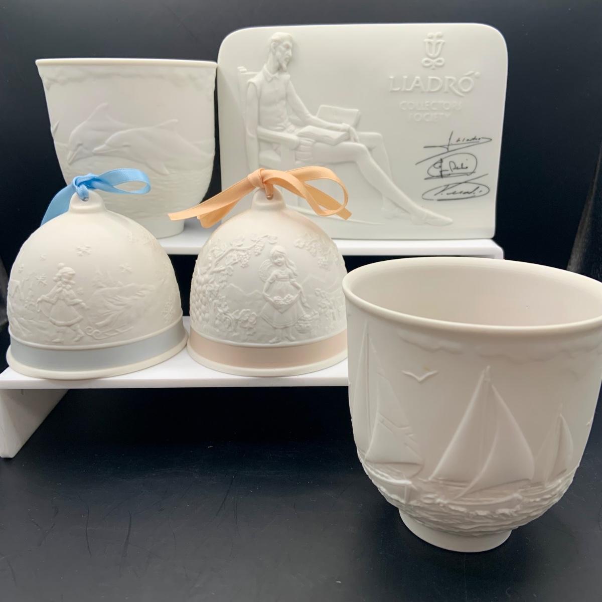 LOT:53: Collection Lladro Fall & Winter Bells; Dolphins at Play & Sailing the Seas Votive Candle Holder with Original Boxes and Signed Lladro Collectors Society Plaque
