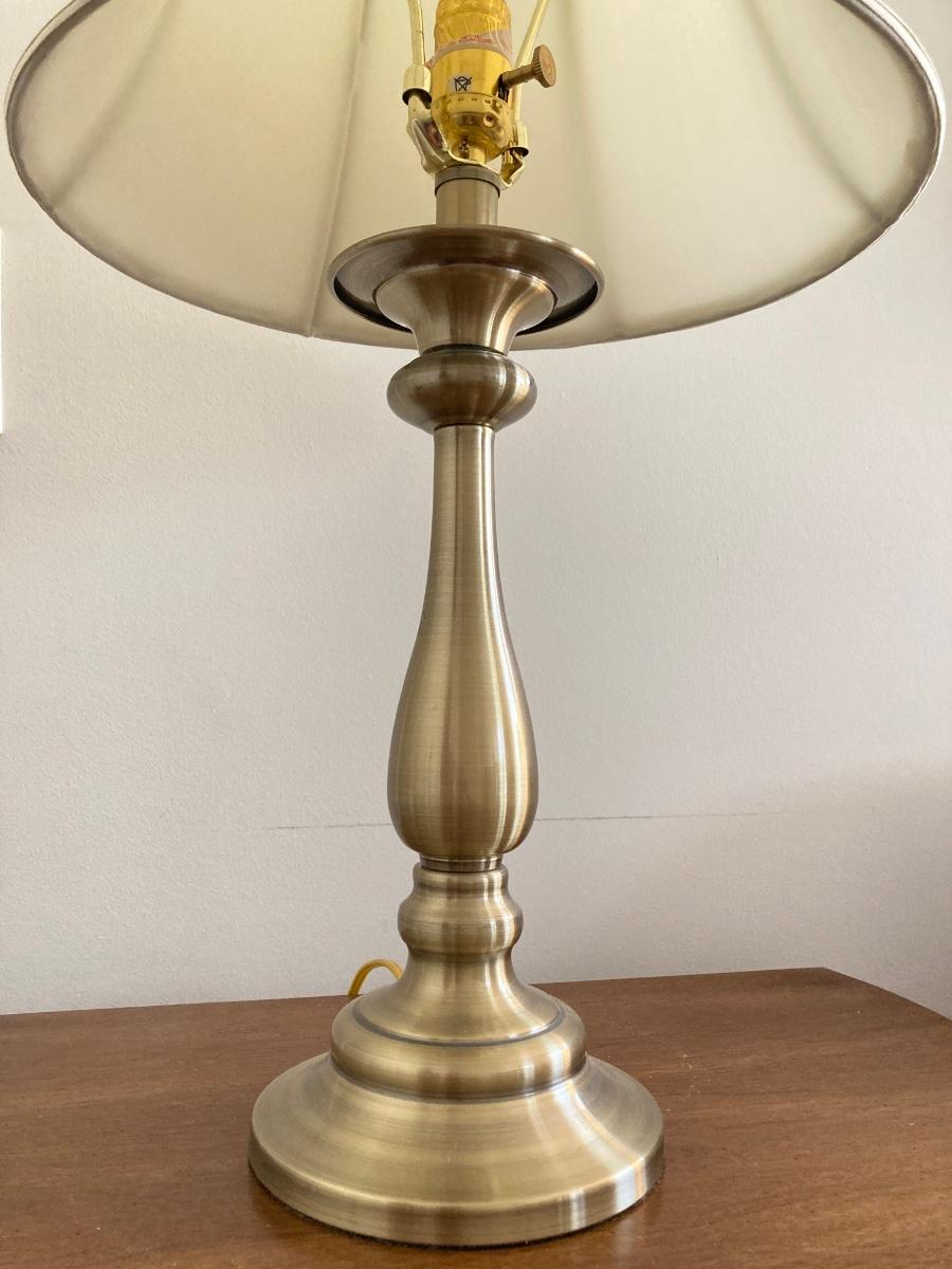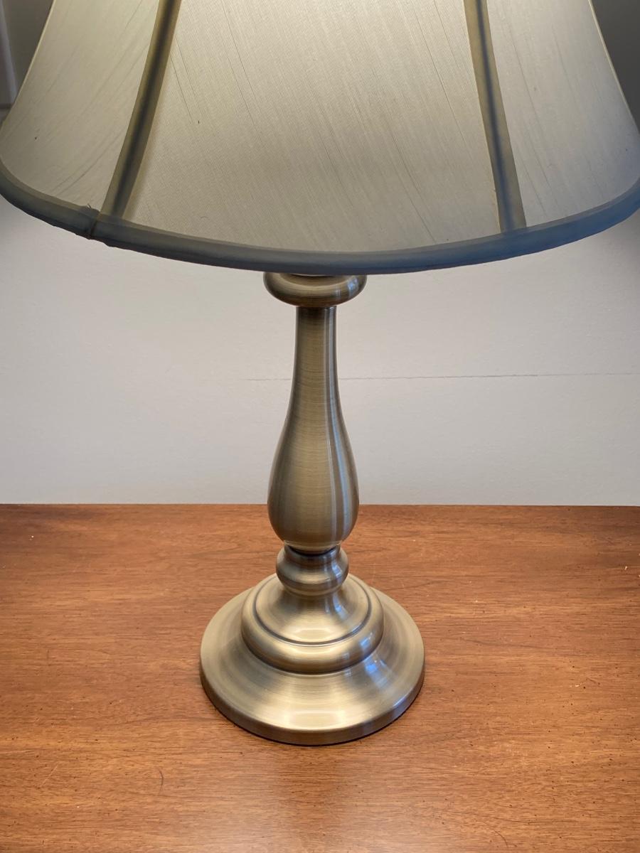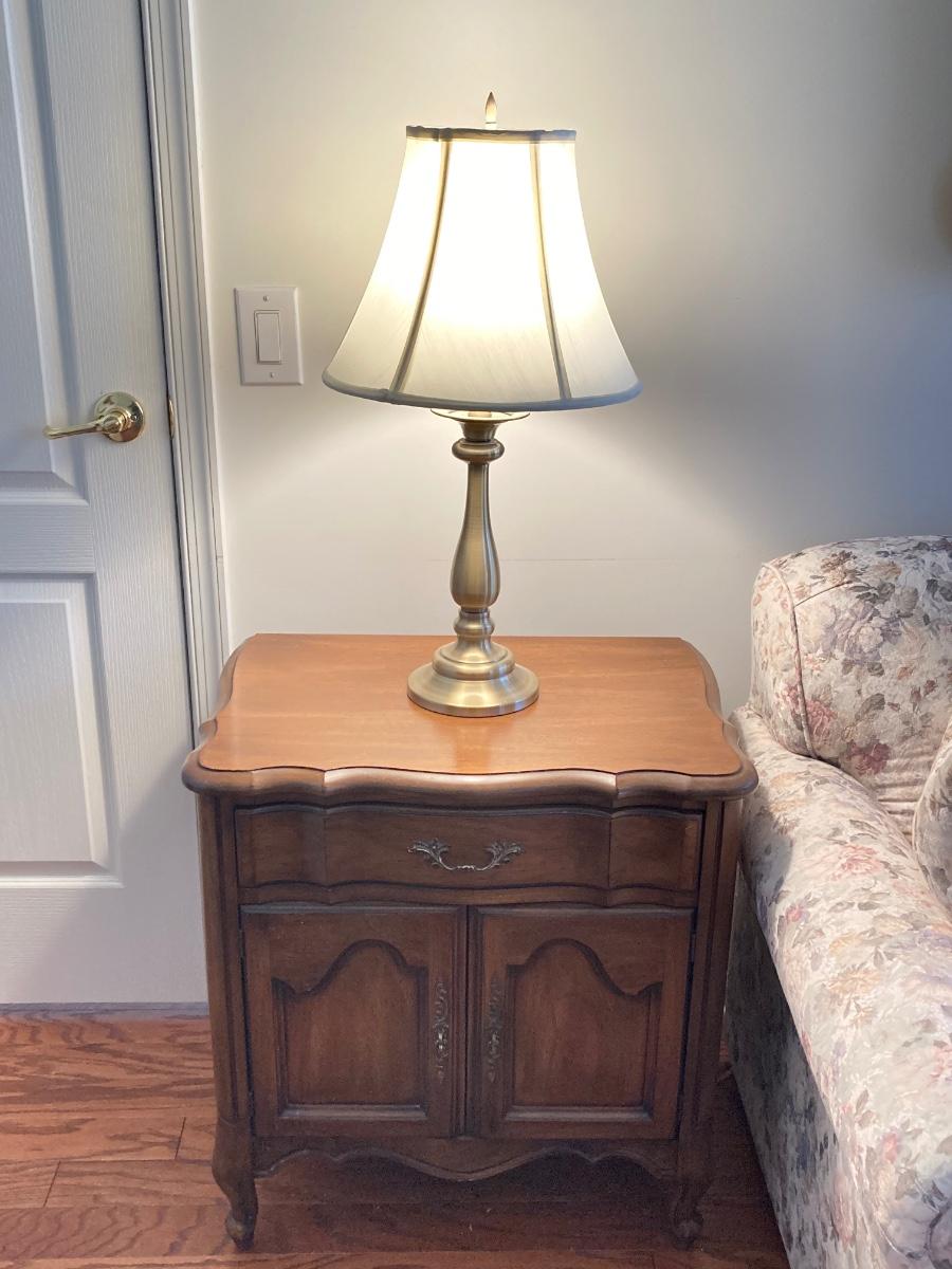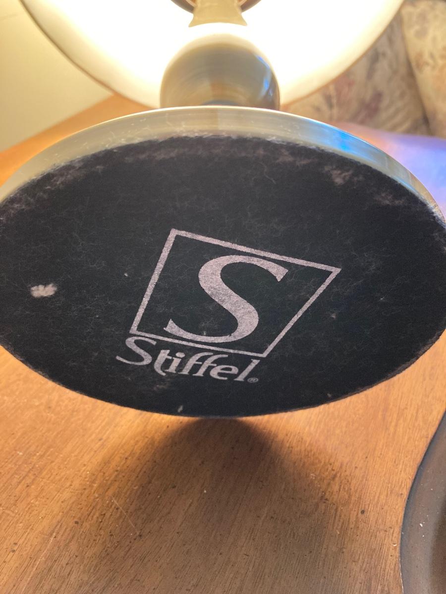 LOT 56: White Fine Furniture Side Table with Stiffel Brass Lamp