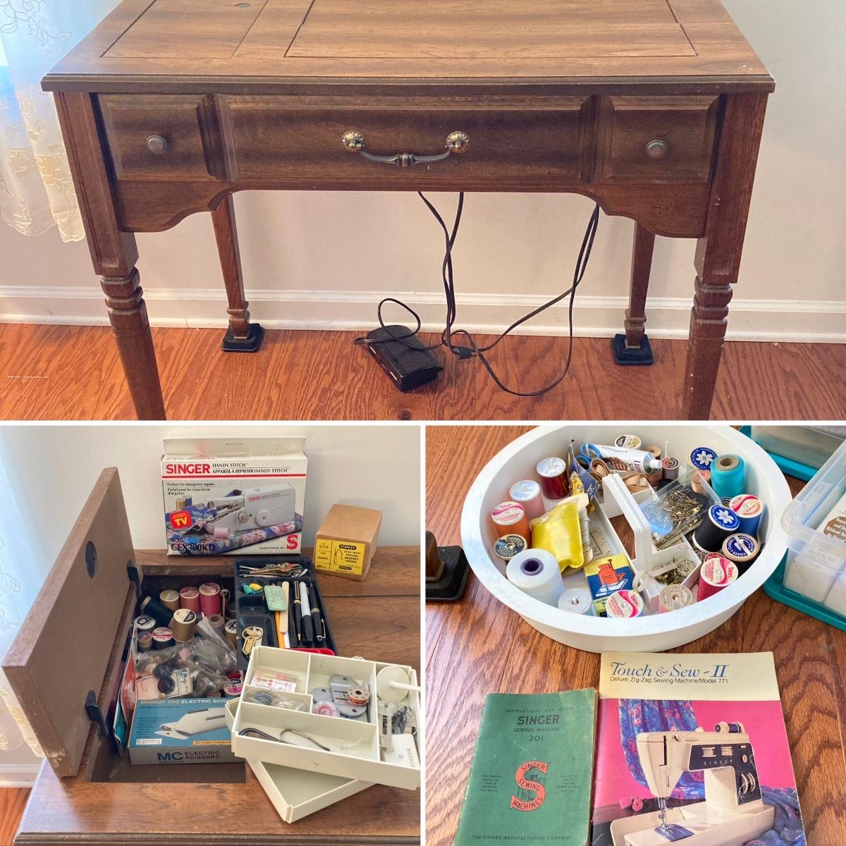 LOT 58: Vintage Singer "The Verona" Sewing Machine, Notions and More