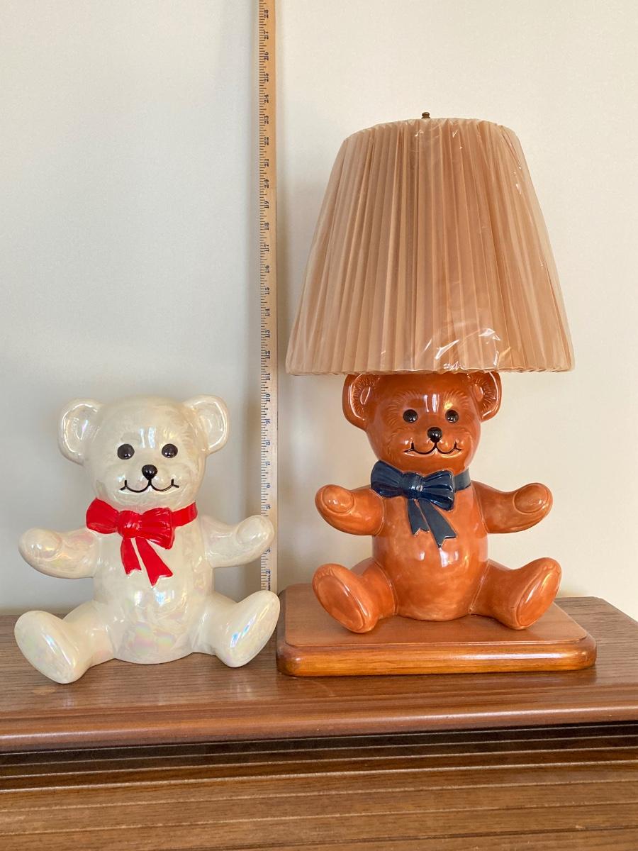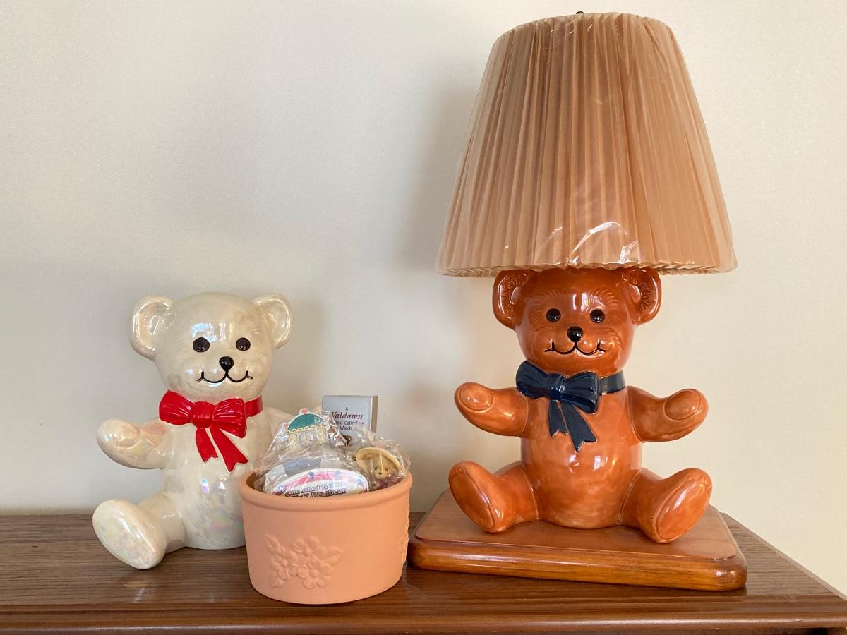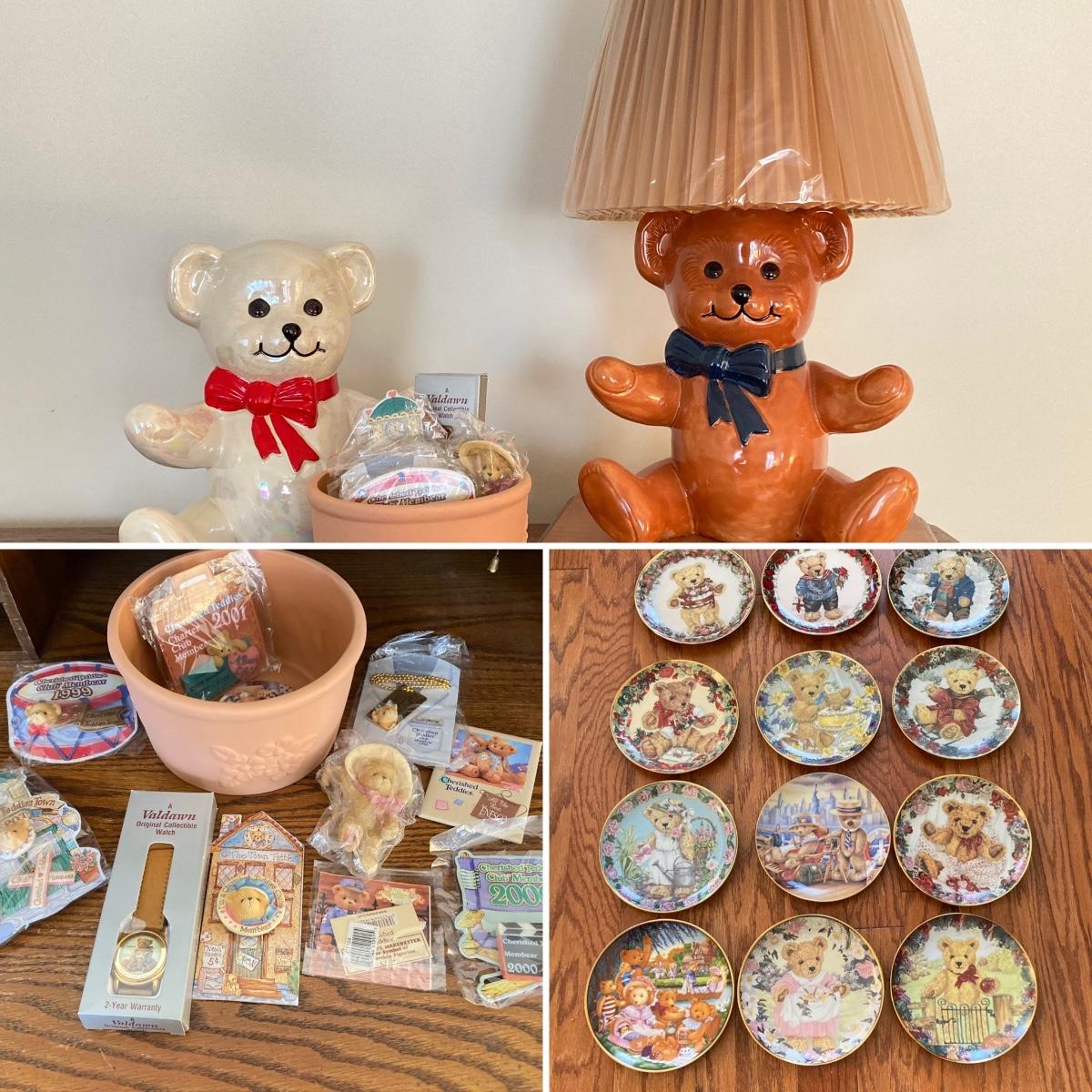 LOT 61: Teddy Bear Collection - Ceramic Lamp and Bank, Franklin Mint Plates / Holders, Cherished Teddies Collectibles and More