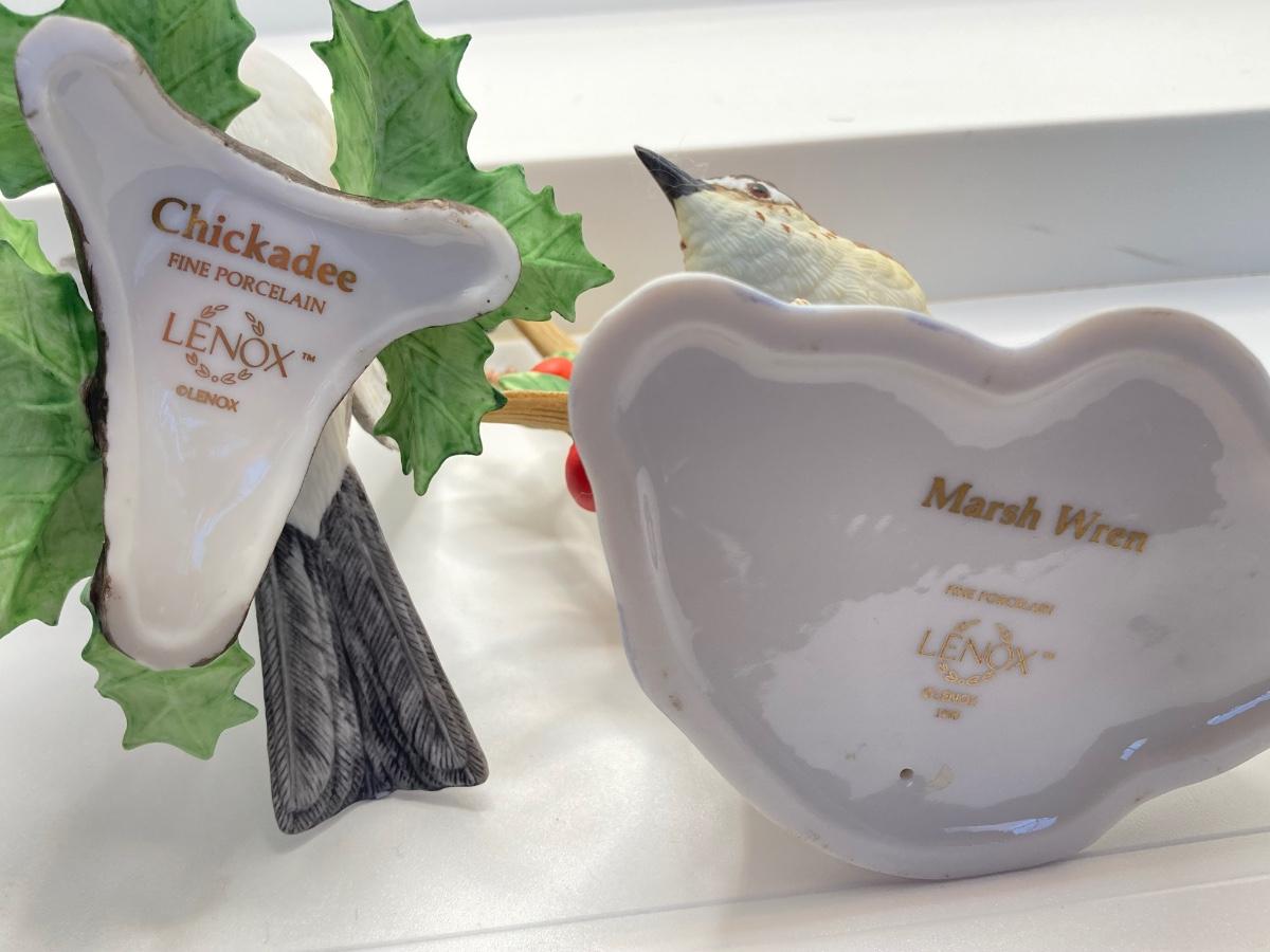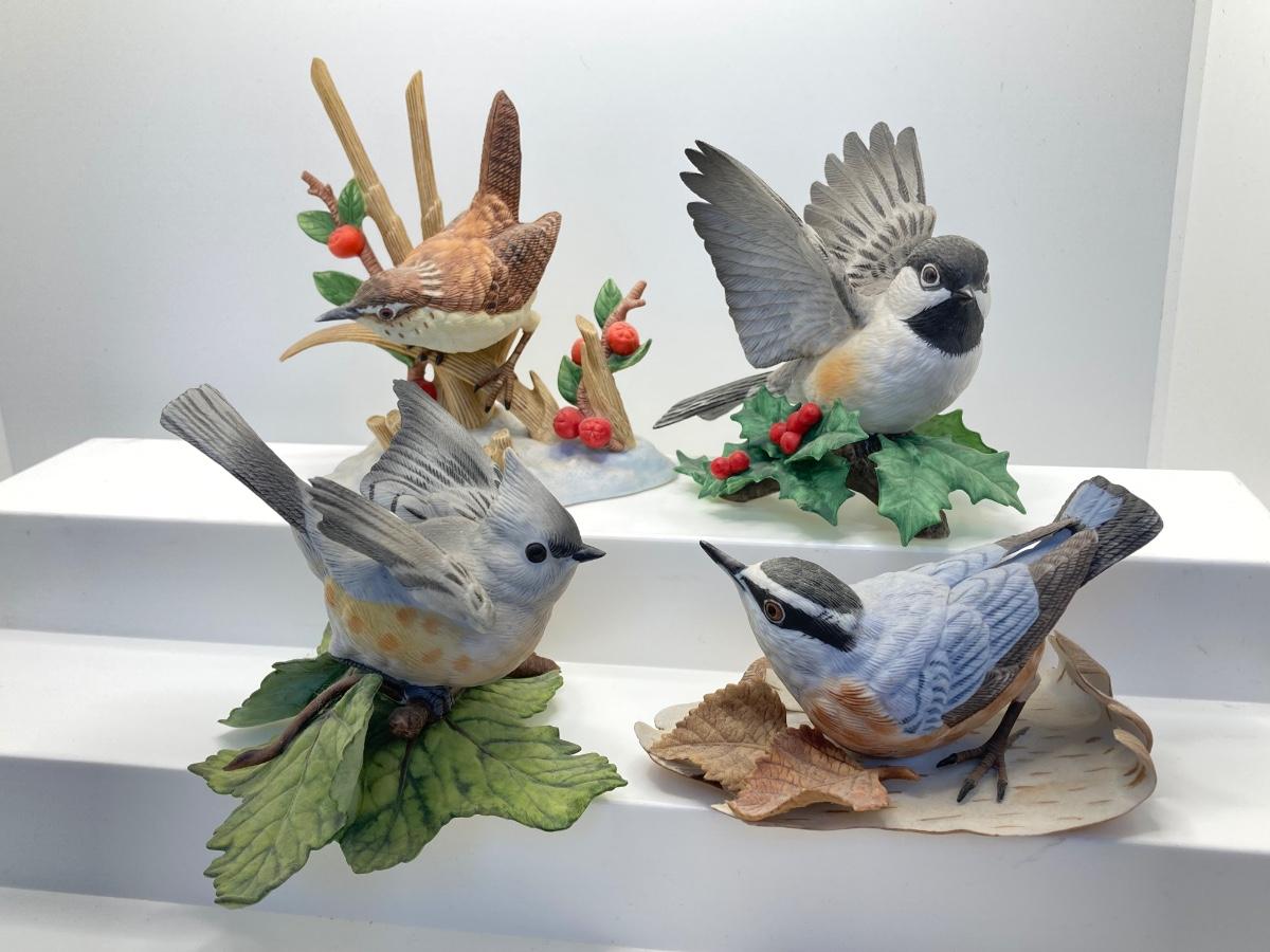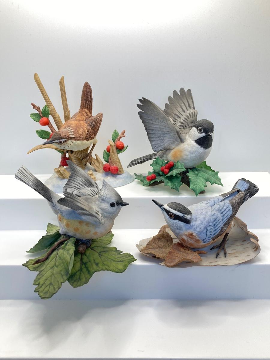 LOT 66: Lenox Fine Porcelain Bird Collection - "Chickadee", "Marsh Wren", "Red-breasted Nuthatch" and "Tufted Titmouse"