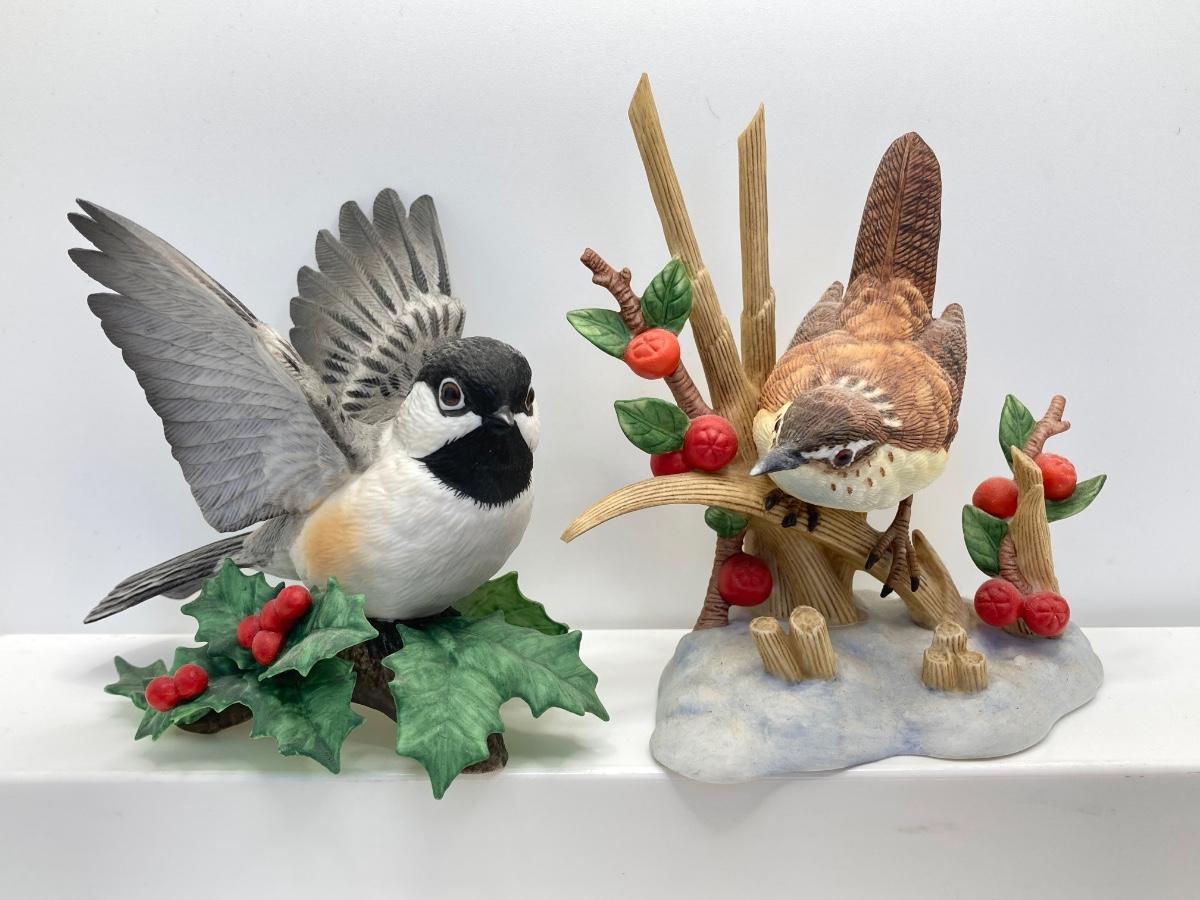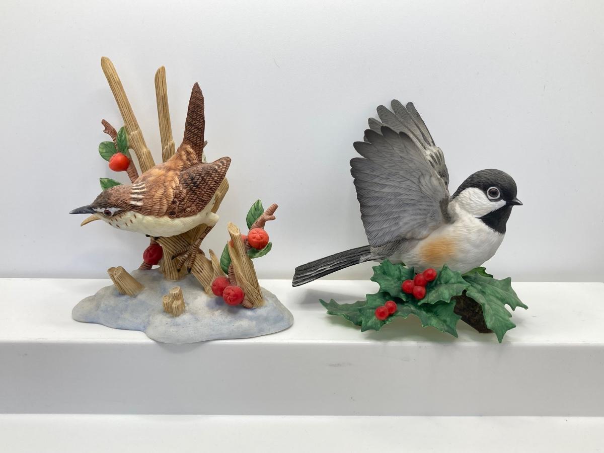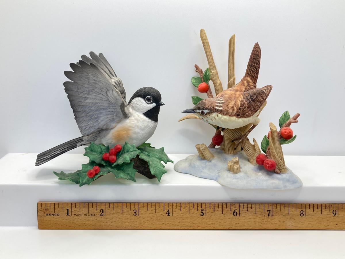 LOT 66: Lenox Fine Porcelain Bird Collection - "Chickadee", "Marsh Wren", "Red-breasted Nuthatch" and "Tufted Titmouse"