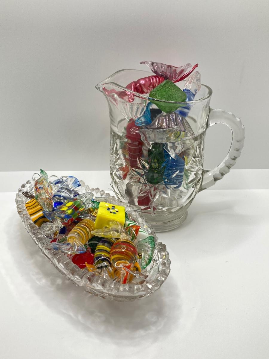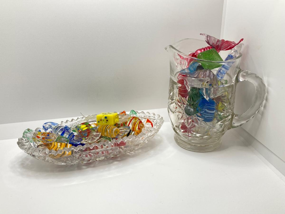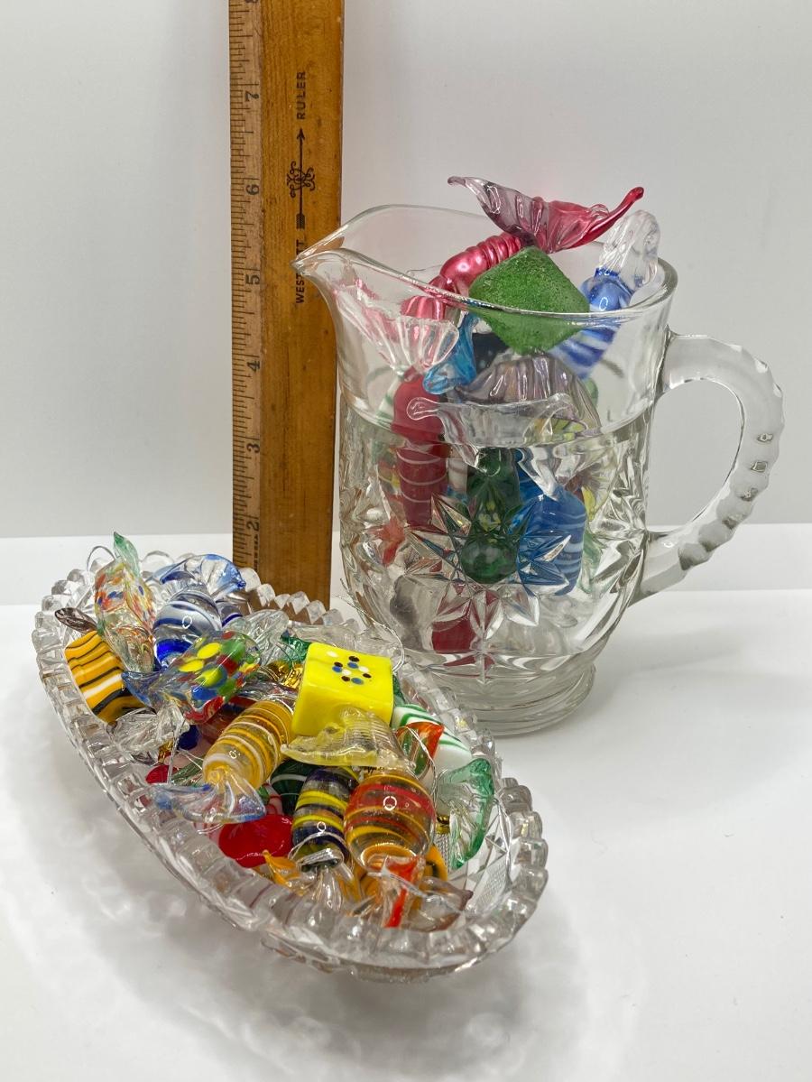 LOT 73: Vintage Glass / Crystal Candy and Cut Glass Pitcher / Dish