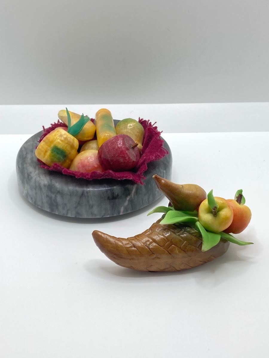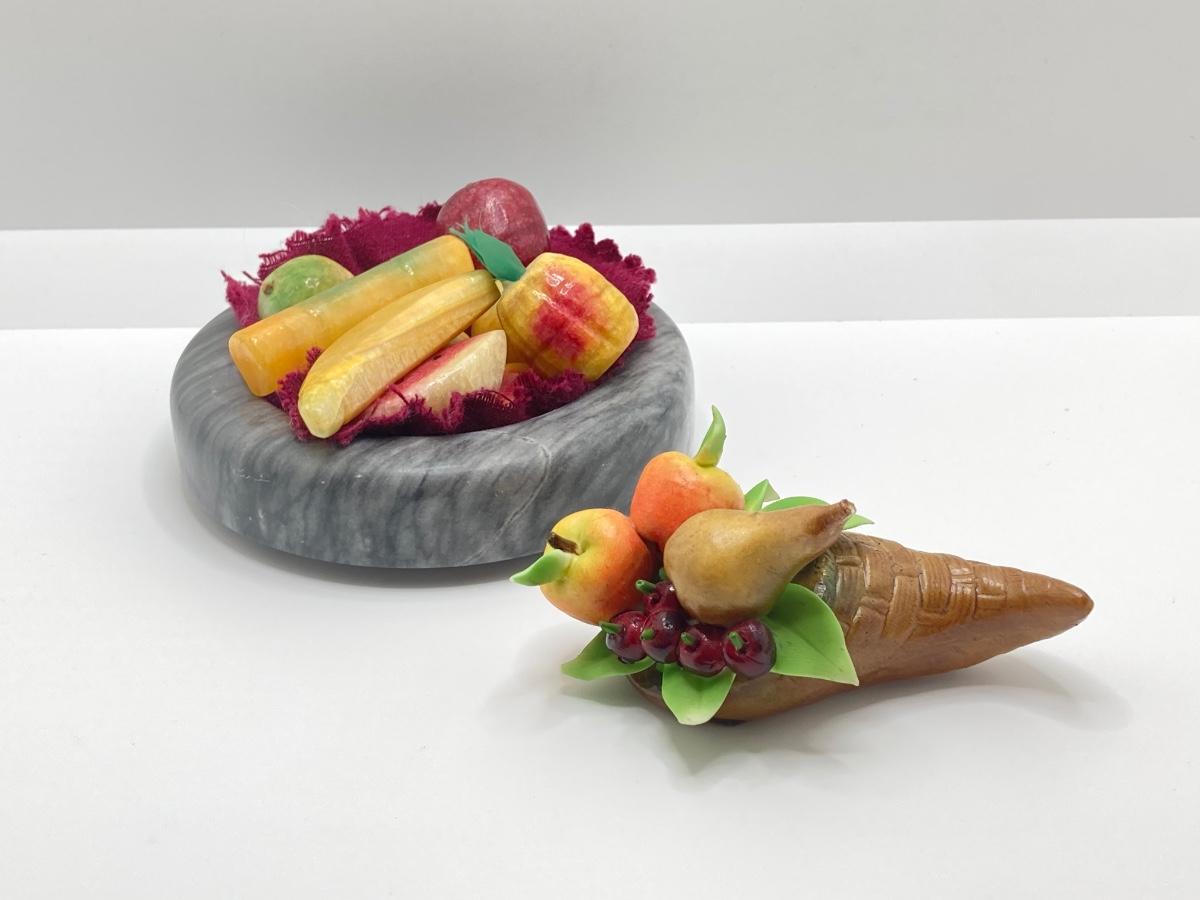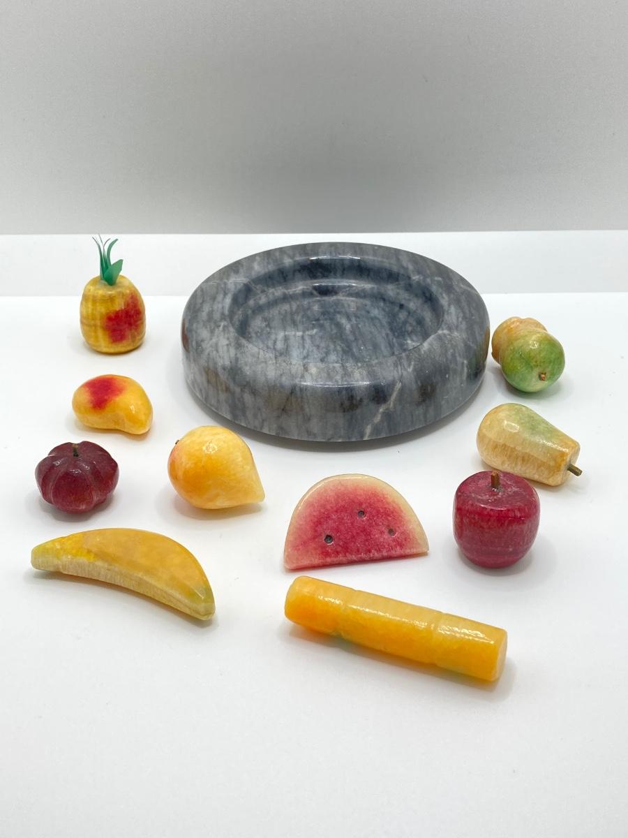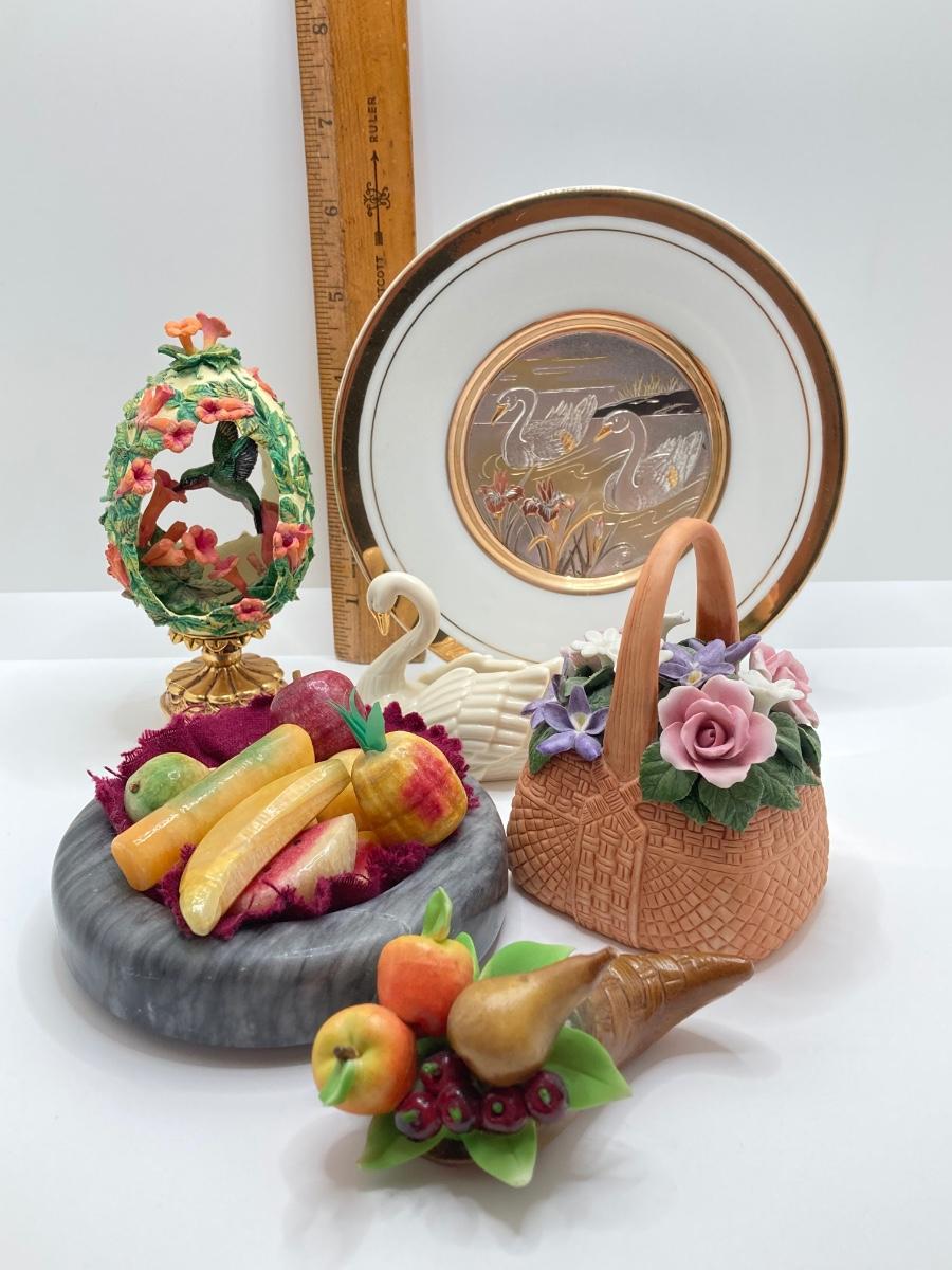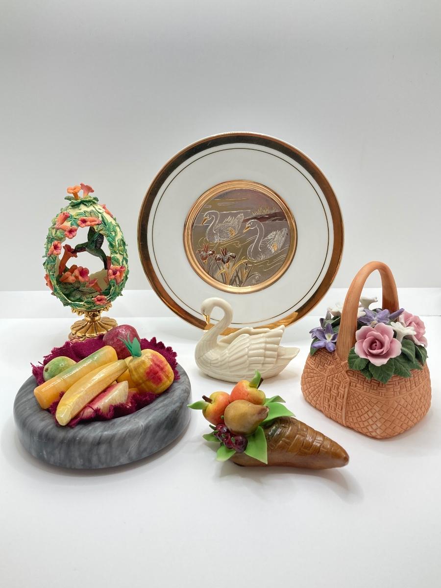 LOT 80: Decorative Collection - Lenox, House of Faberge, Capodimonte, Polished Alabaster Fruit and Gilded Plate