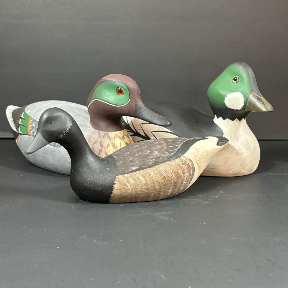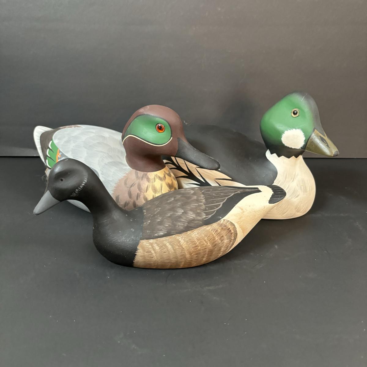 LOT 89: Hornick Bros. Stony Point Wooden Duck Decoys: 2 Signed & Numbered, 1 Signed