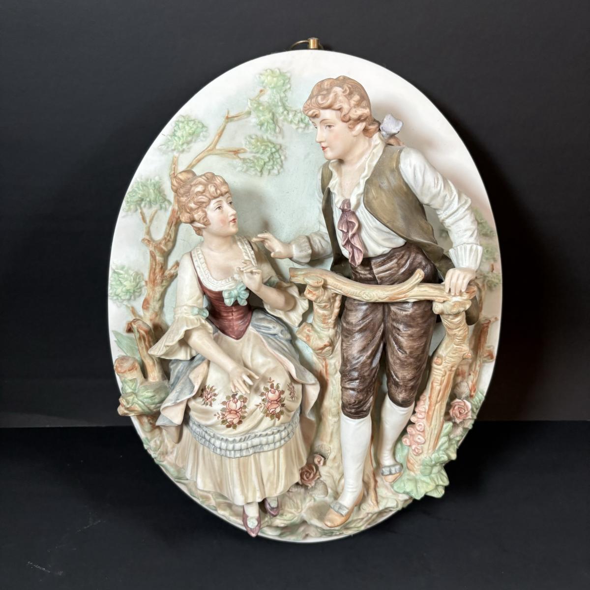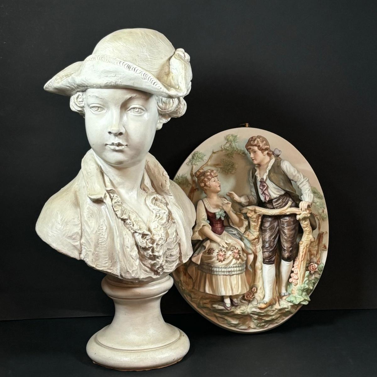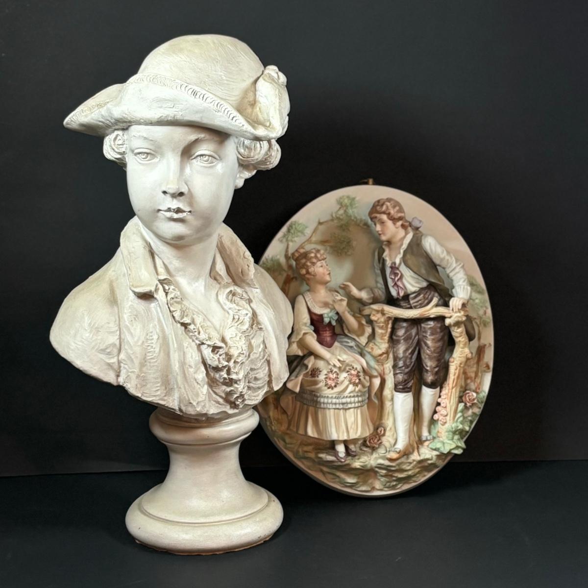 LOT 90: Vintage Plaster French 19th Century Young Man Bust & Vintage Porcelain Bisque Arnart Wall Decor