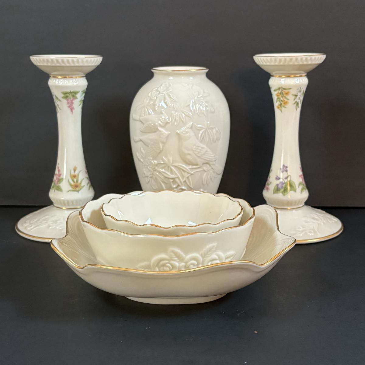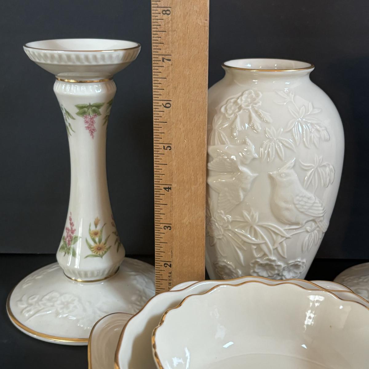 LOT 101: Lenox Collection: Mother's Day 1988 Vase, The Constitution Candlesticks, Saybrooke Bowl w/24k Gold & More