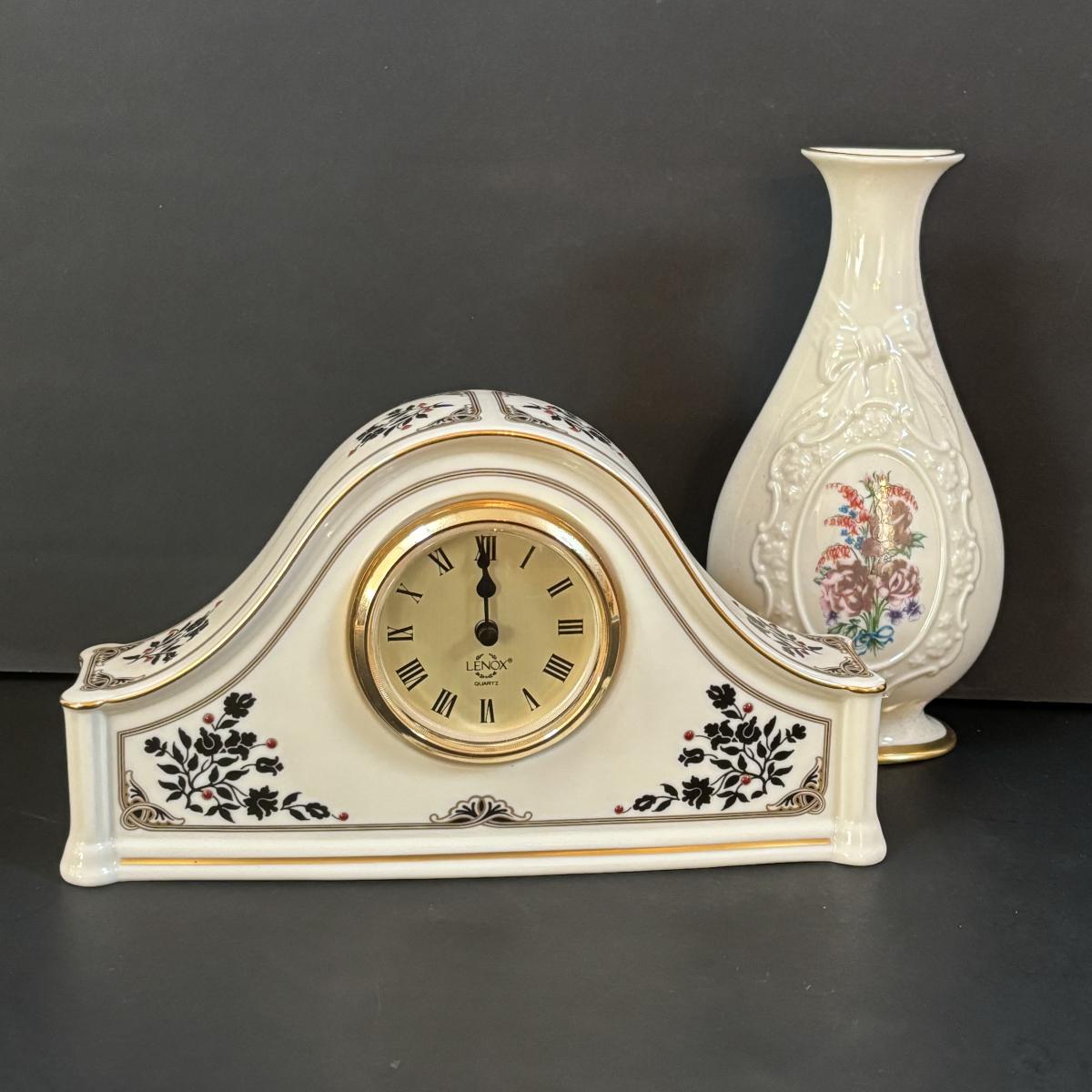 LOT 102: Lenox "Madison" Mantle Clock & "The Flowers of Love Vase" w/Original Box