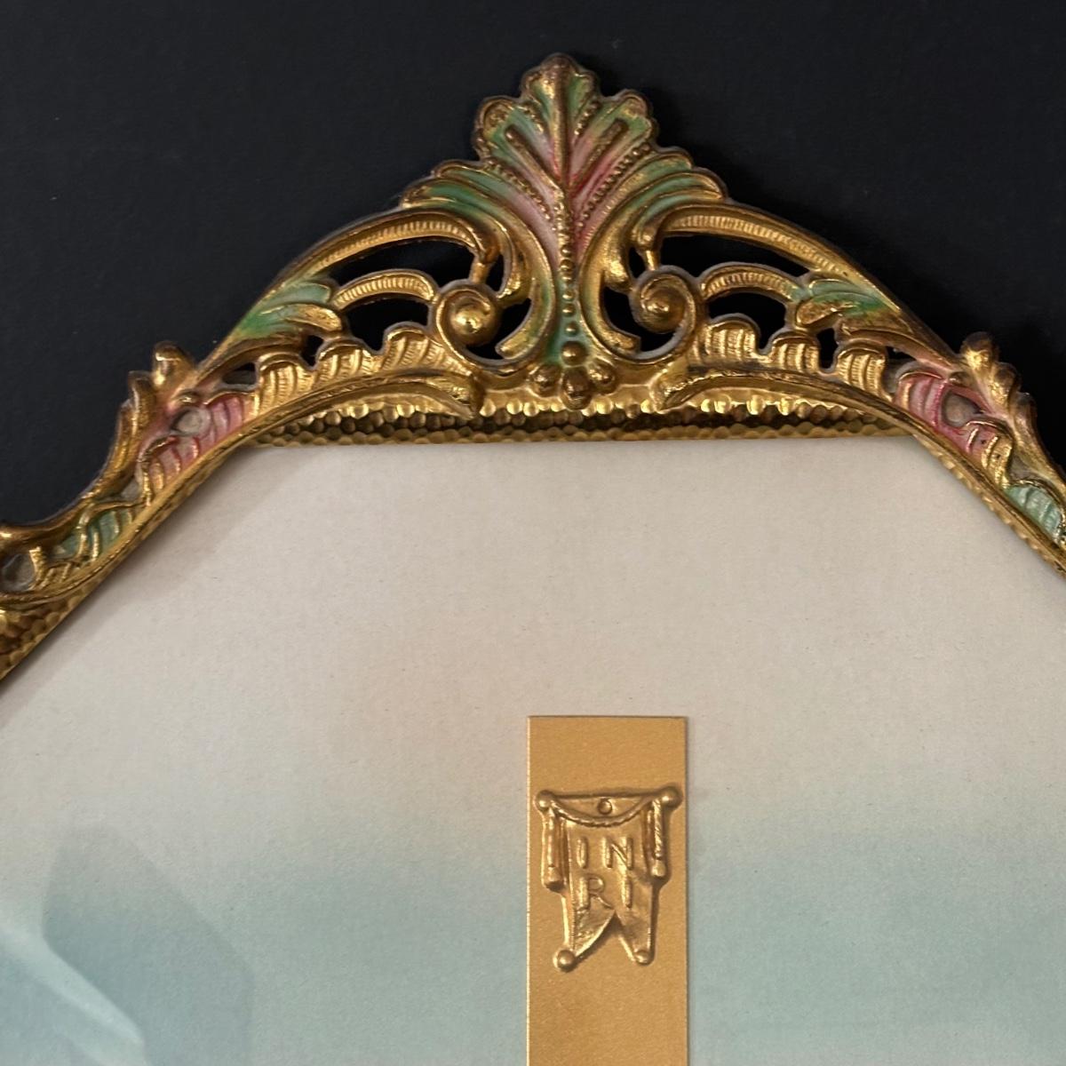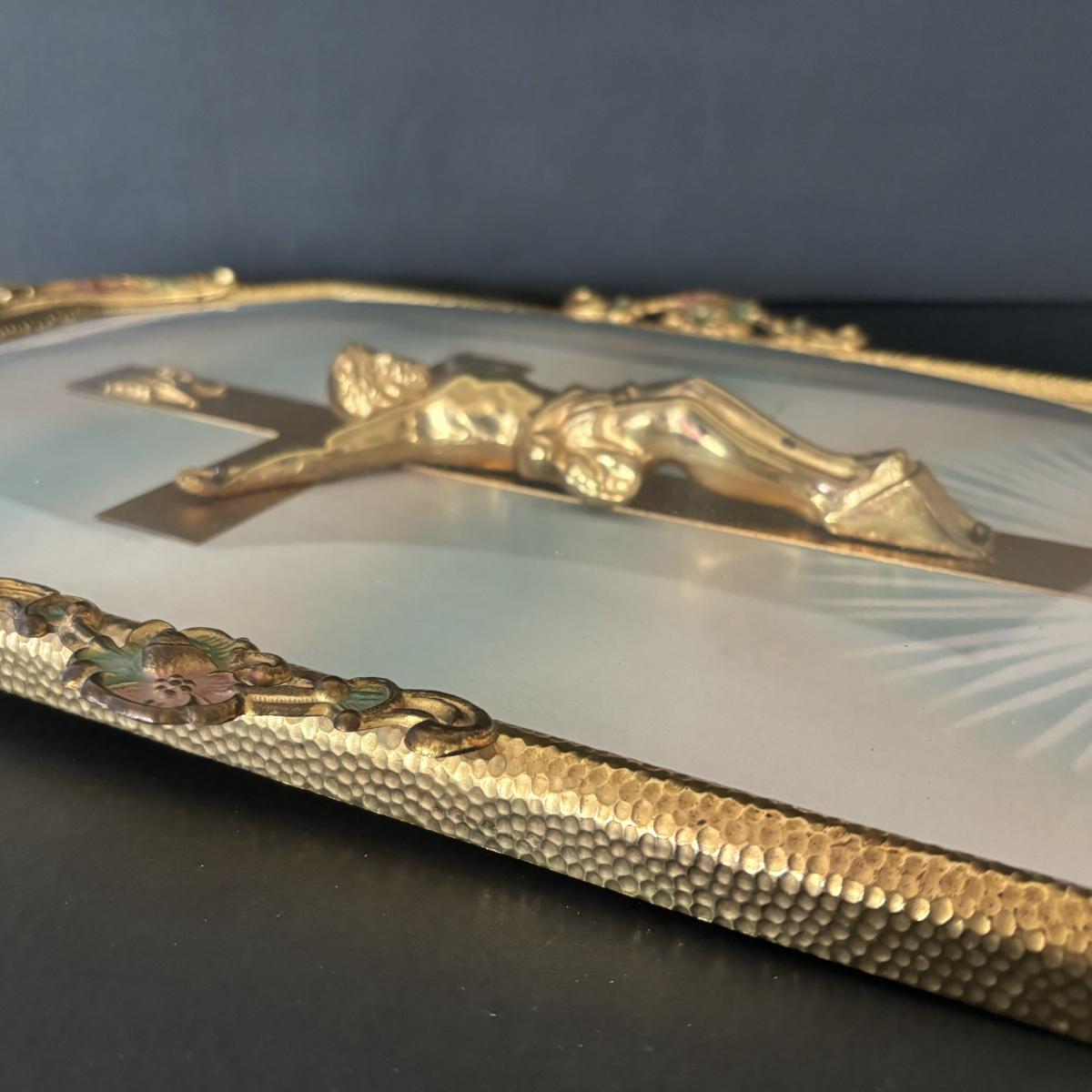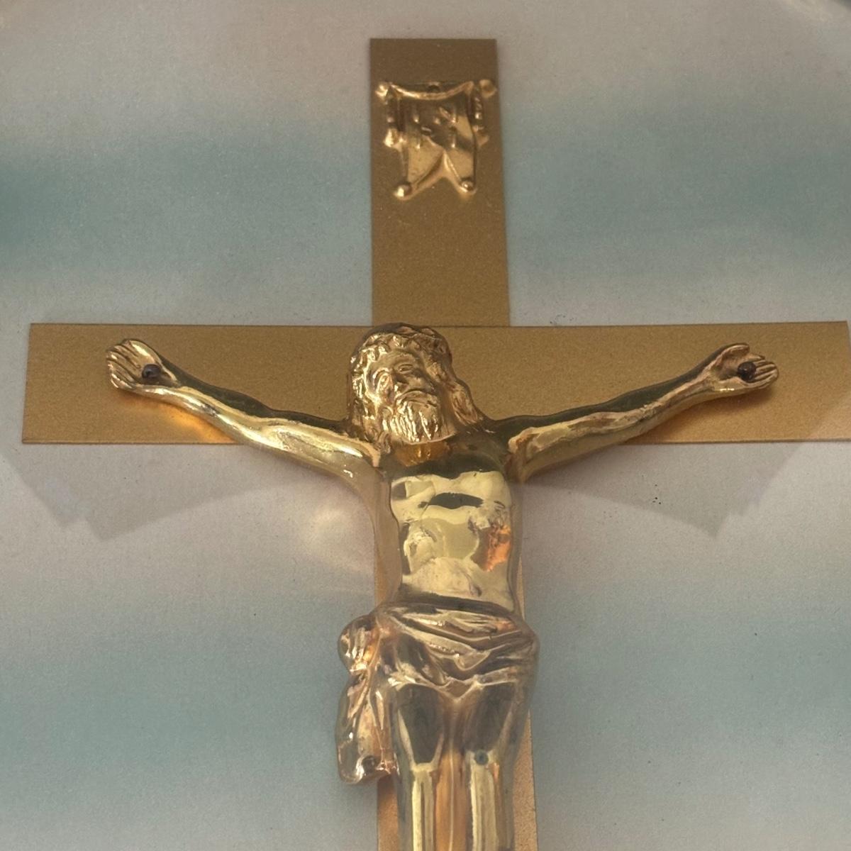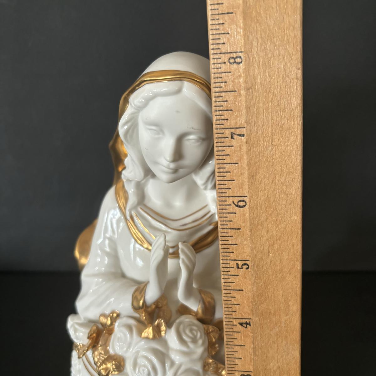 LOT 107: Vintage Franklin Mint Ave Maria Hand Painted Porcelain Virgin Mary Music Box & Crucifix in Brass Frame with Convex Bubble Glass
