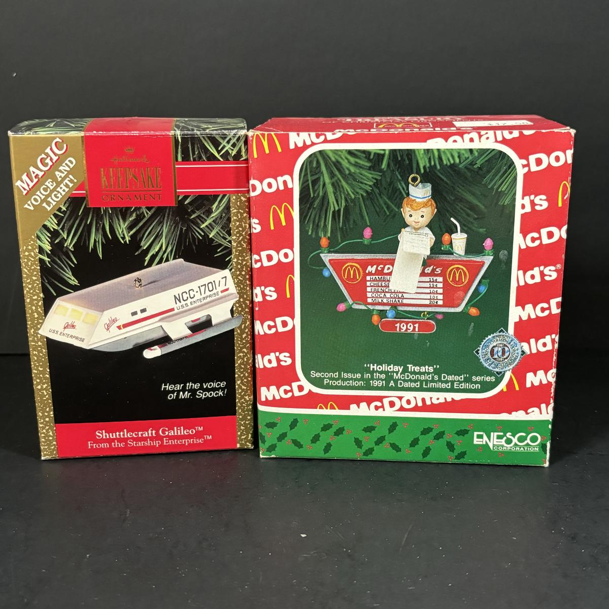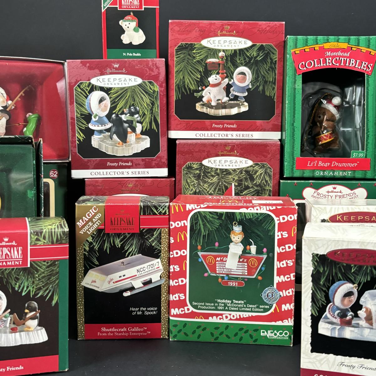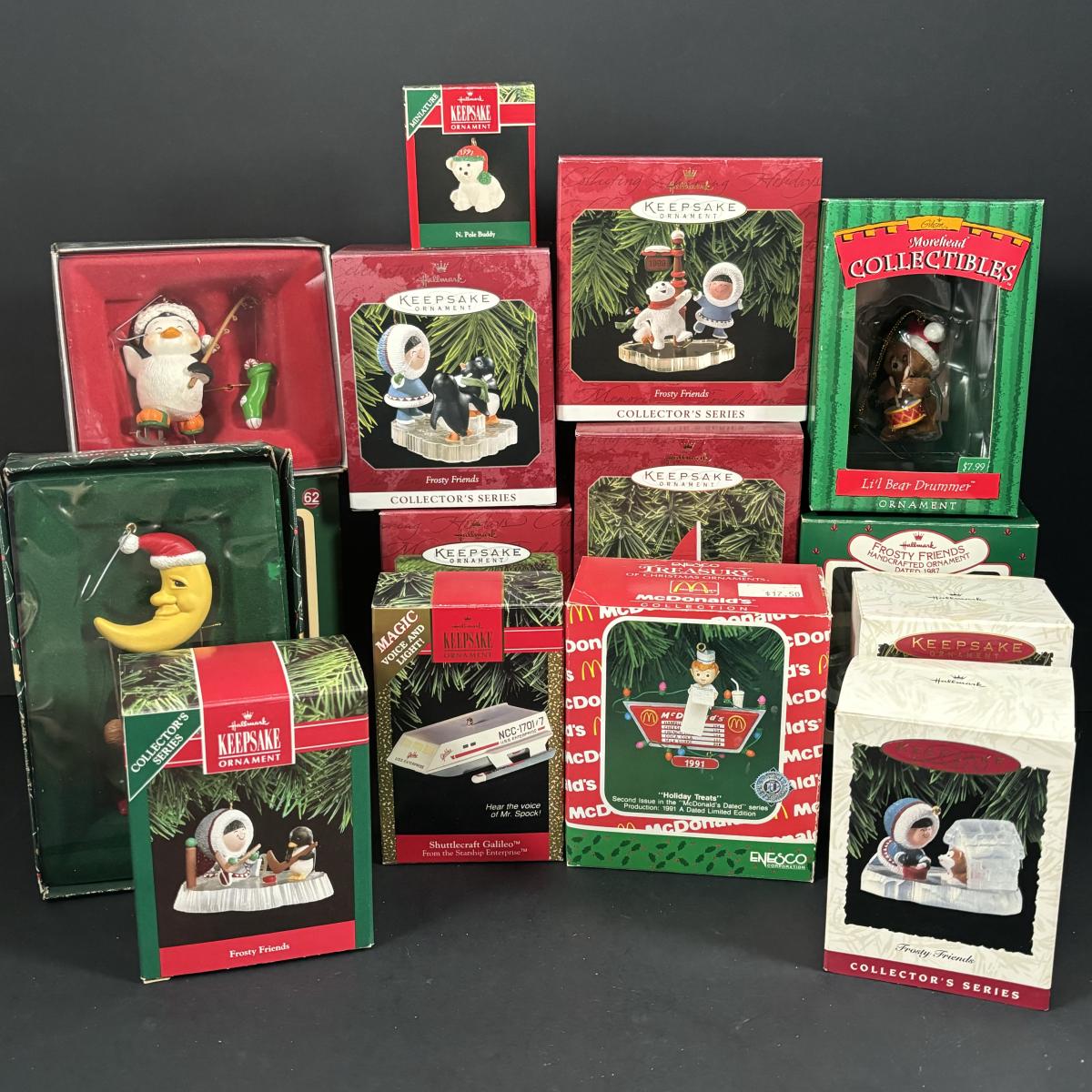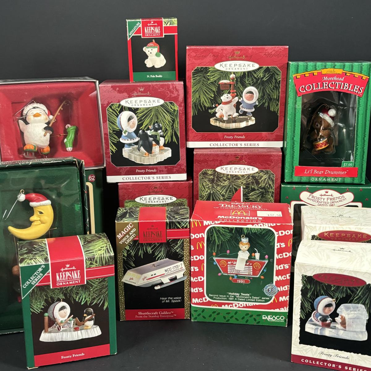 LOT 194: Ornament Collection: Enesco McDonalds, Hallmark USS Enterprise, Hallmark Frosty Friends & More