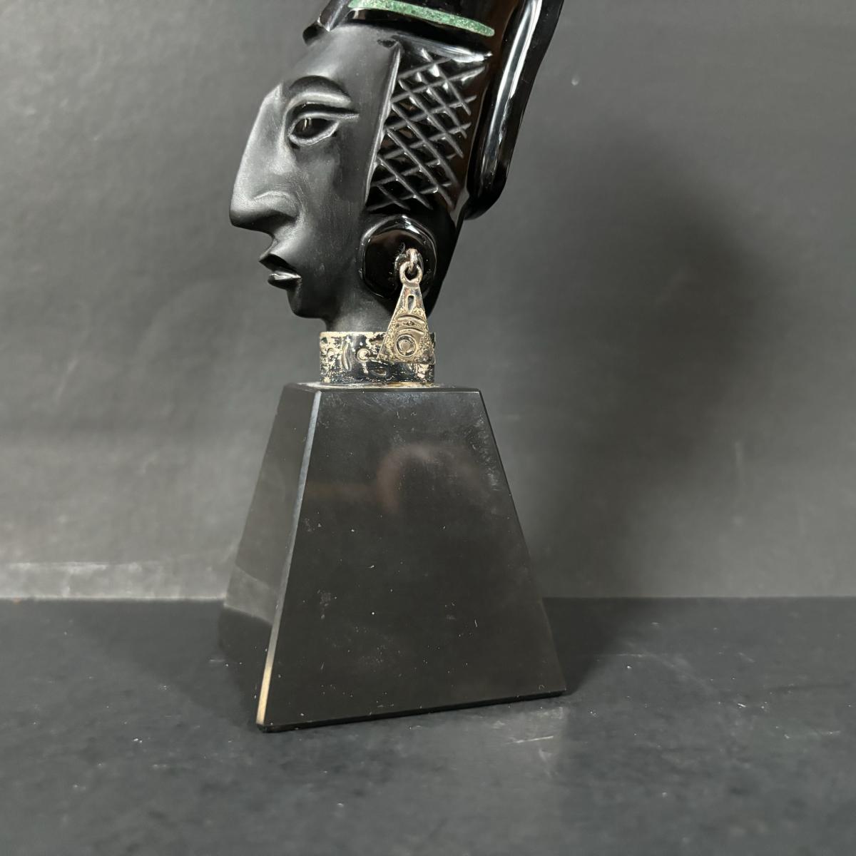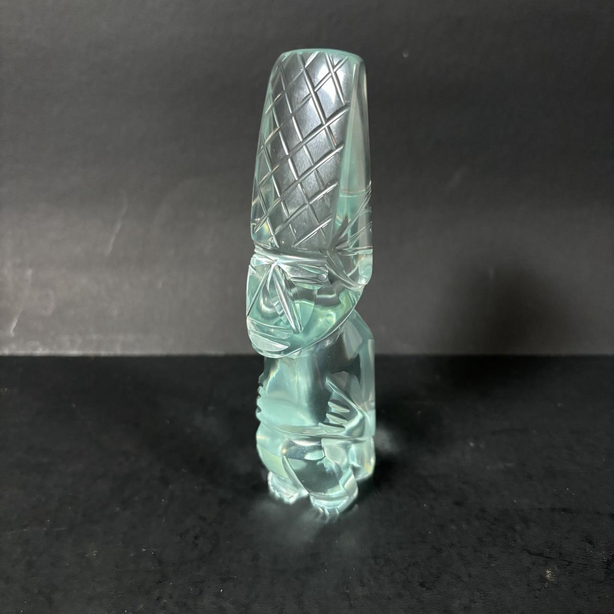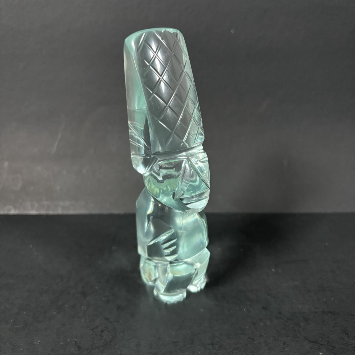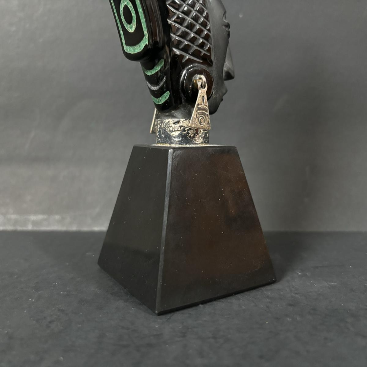 LOT 199: Stone/Onyx Aztex Warrior Sculpture & Aztec/Mayan Glass Paperweight Statue