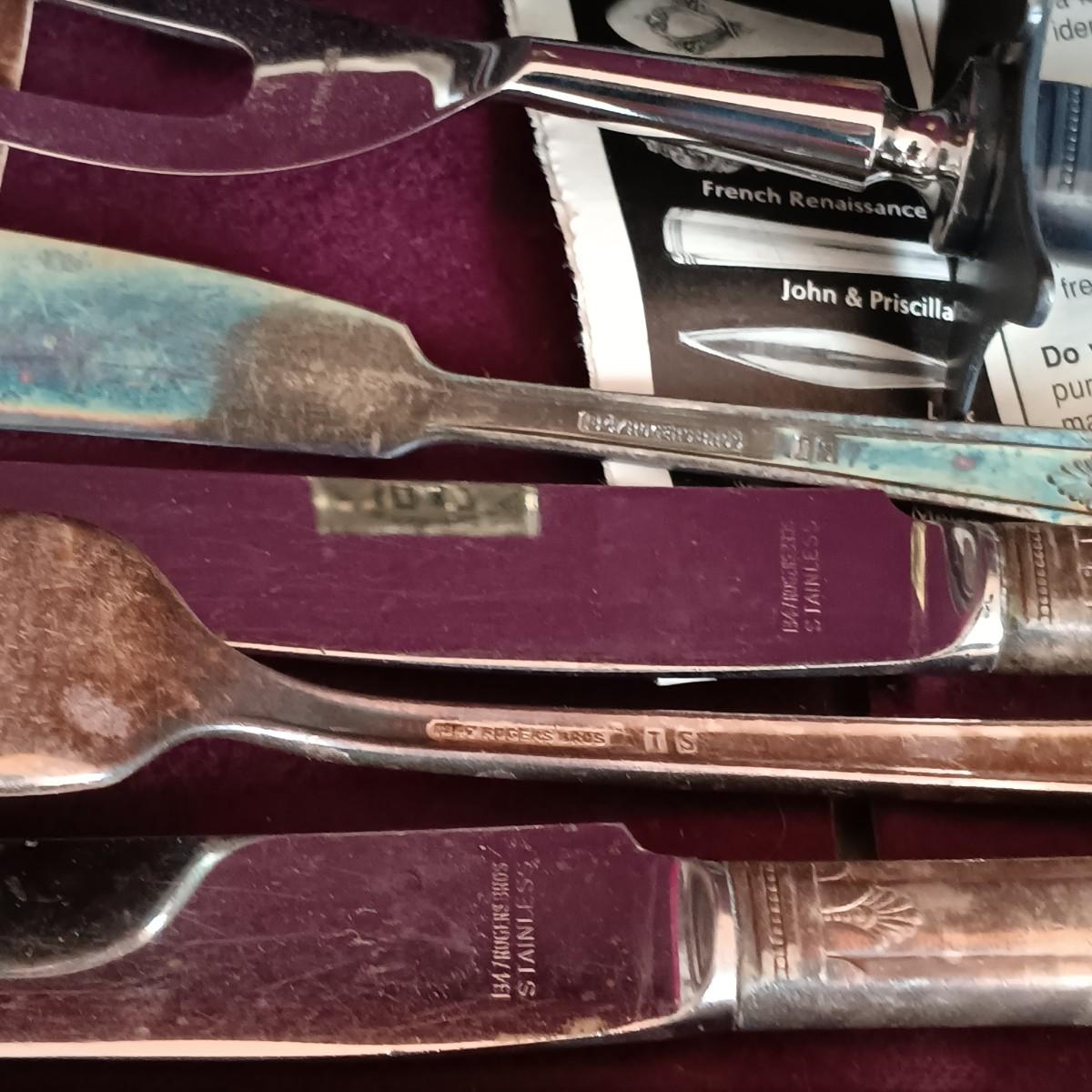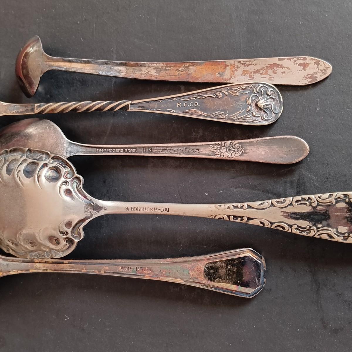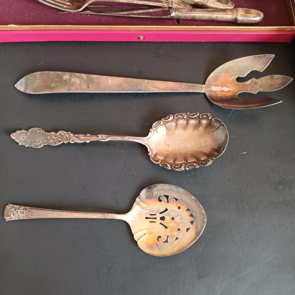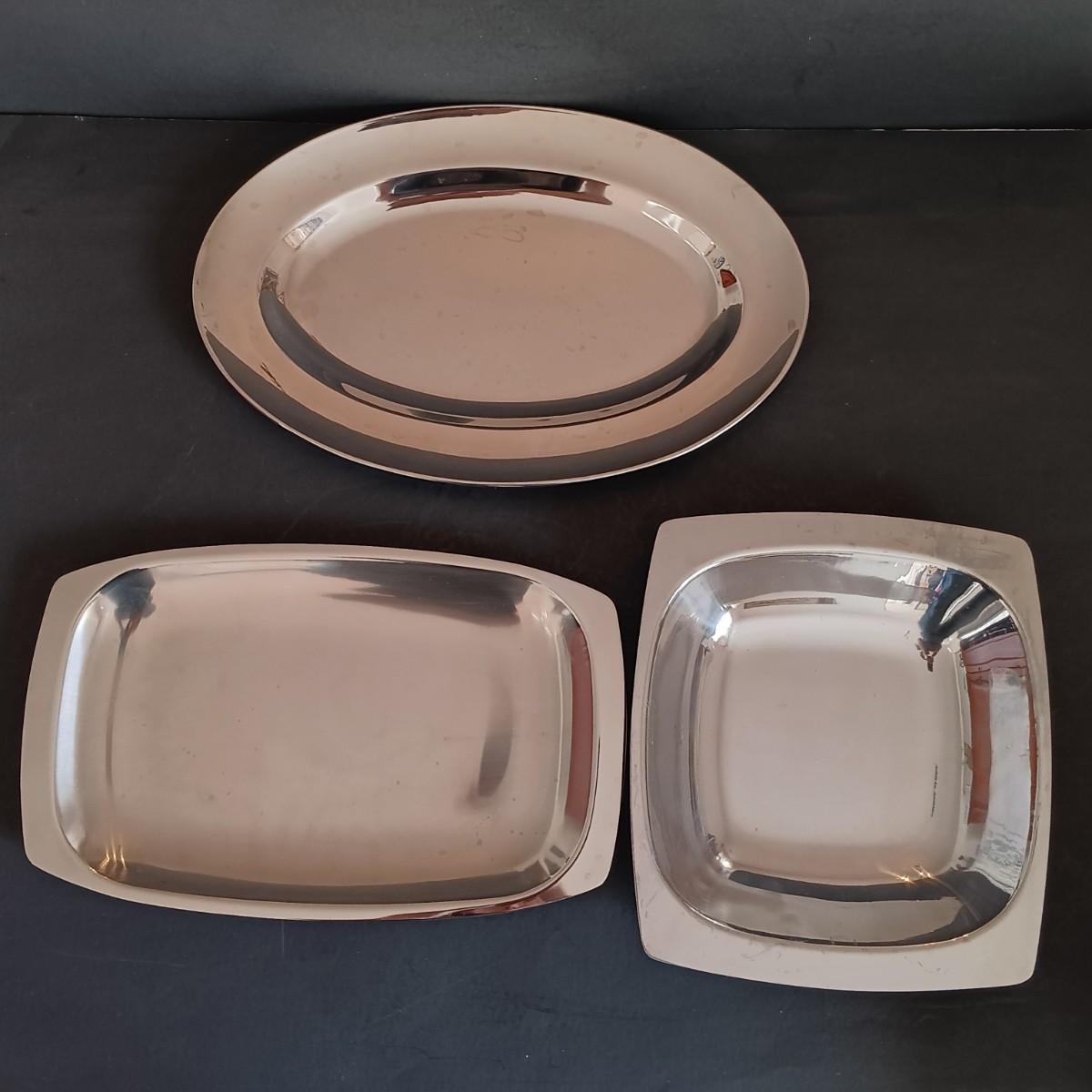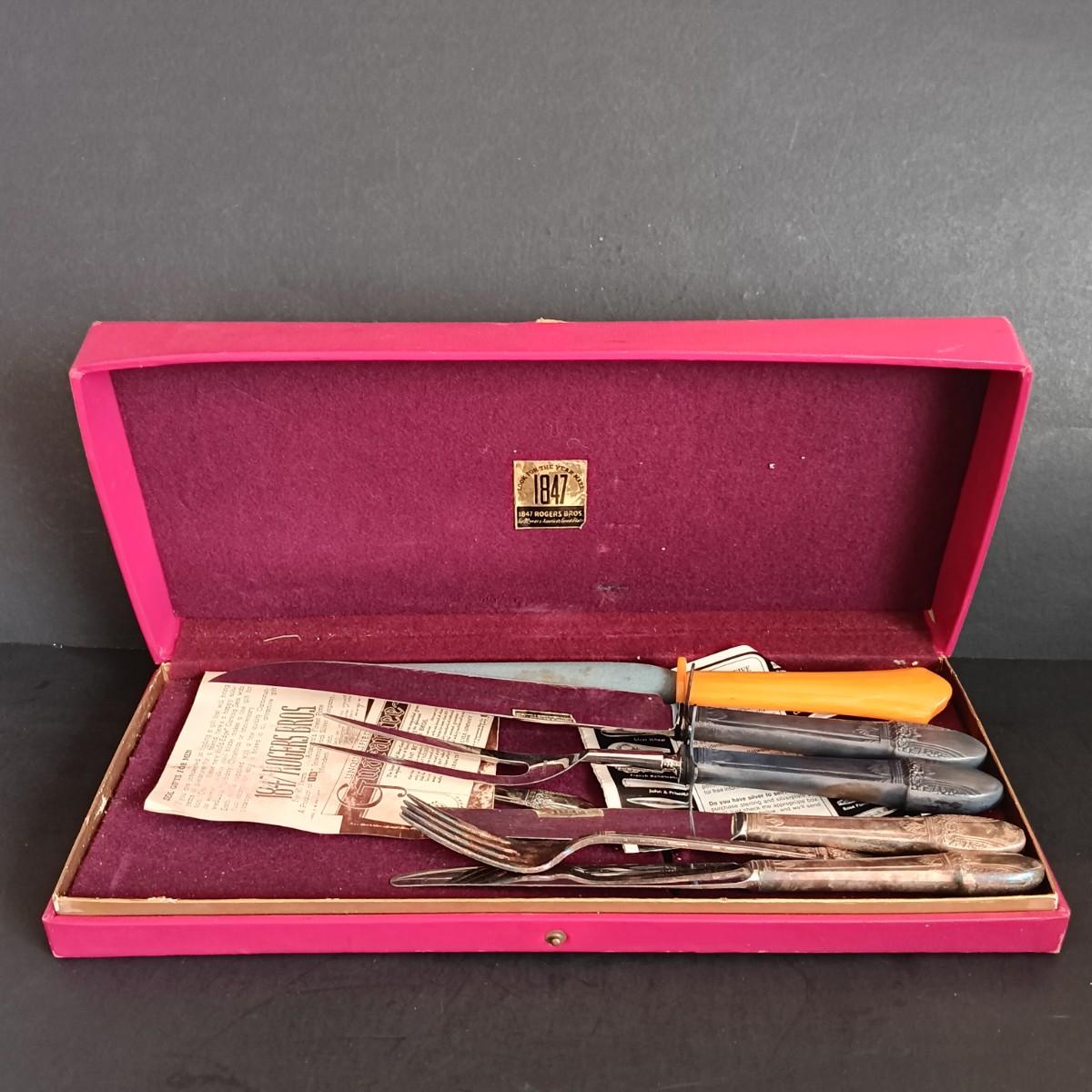 LOT 163: 1847 Roger's Bros Silverplate, Arthur Court 1980 Rabbit Serving Set, Miscellaneous Silverplate Utensils & Stainless Steel Platters