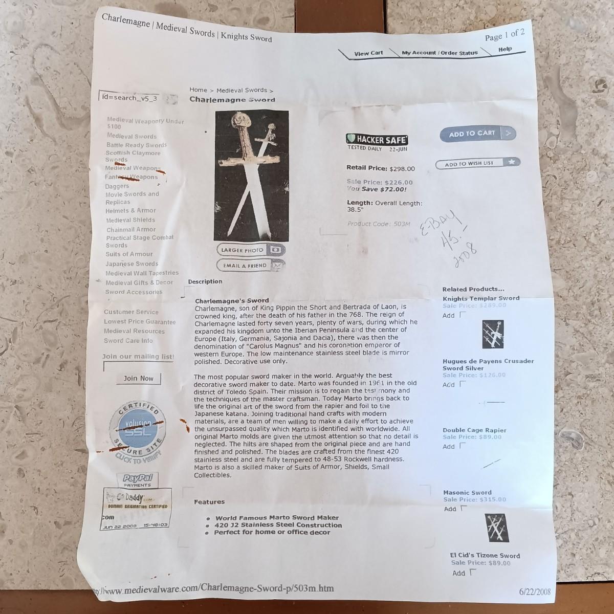 LOT 164: Marto Swordsmiths of Toledo, Spain 'Charlemagne's Sword' Reproduction
