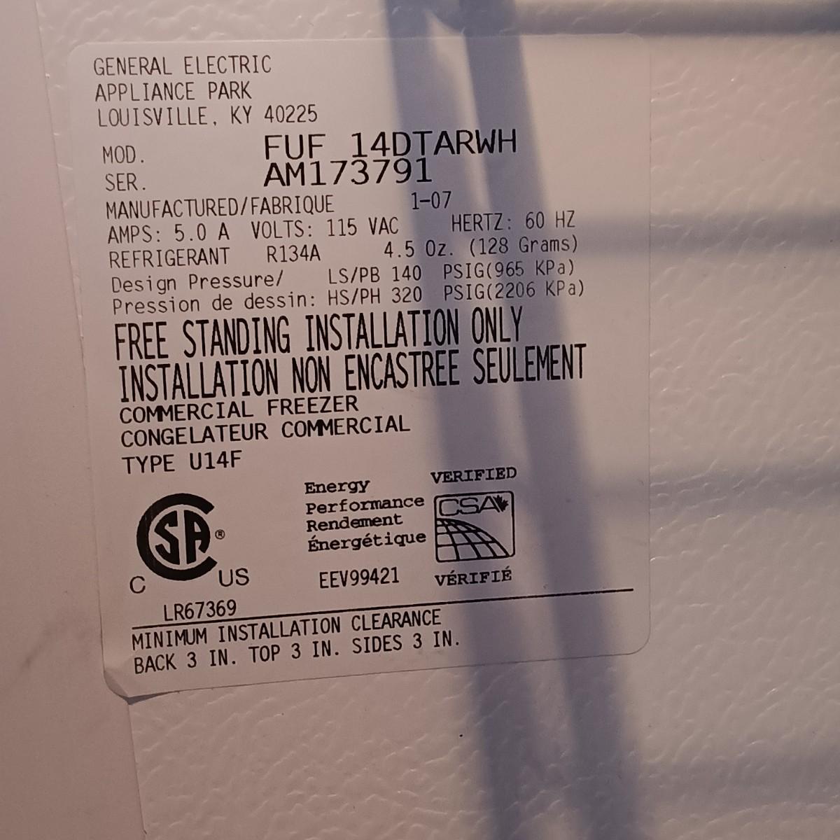 LOT 169: GE FUF-14DTARWH 13.7 Cu Ft Frost-Free Upright Freezer