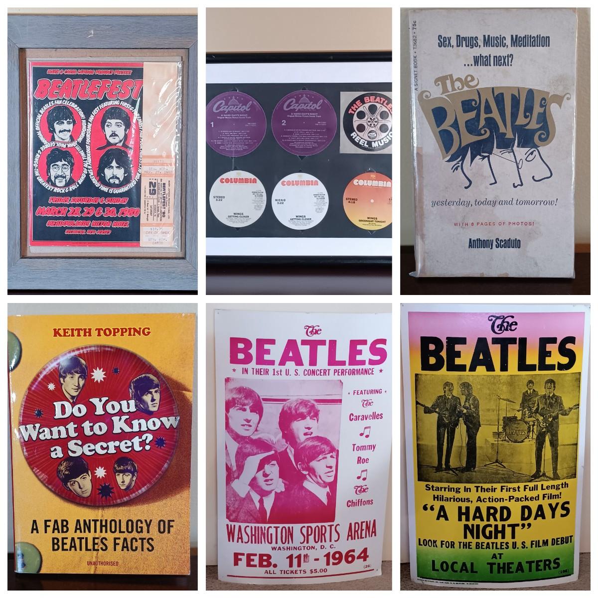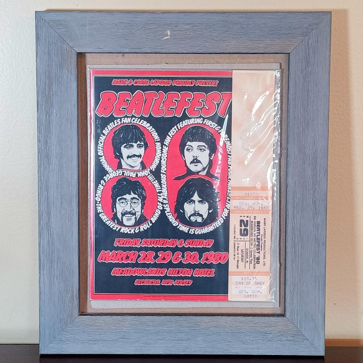 LOT 108B: Beatlefest 1980 Secaucus, NJ Program and Ticket, Framed LP Labels and Sticker, Contemporary Concert Posters & More