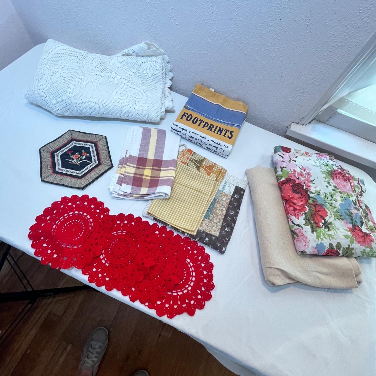 8. Sizes are approximate, you can estimate as our lot number signs are 3.5" long. Also we use an 18" & 36" measuring stick.  We try on certain things to do actual measurements. No guarantees on actual sizes, we try our best!