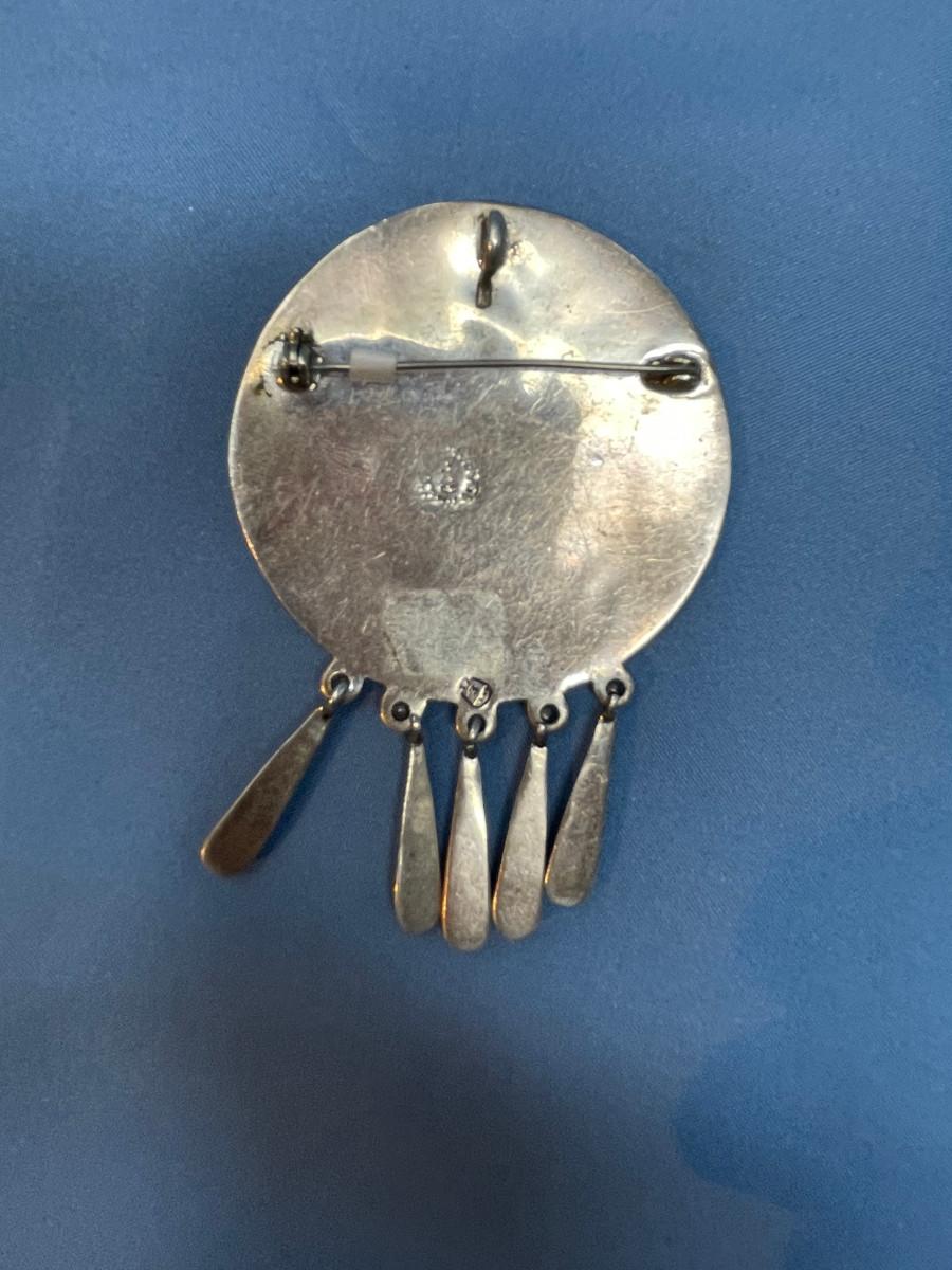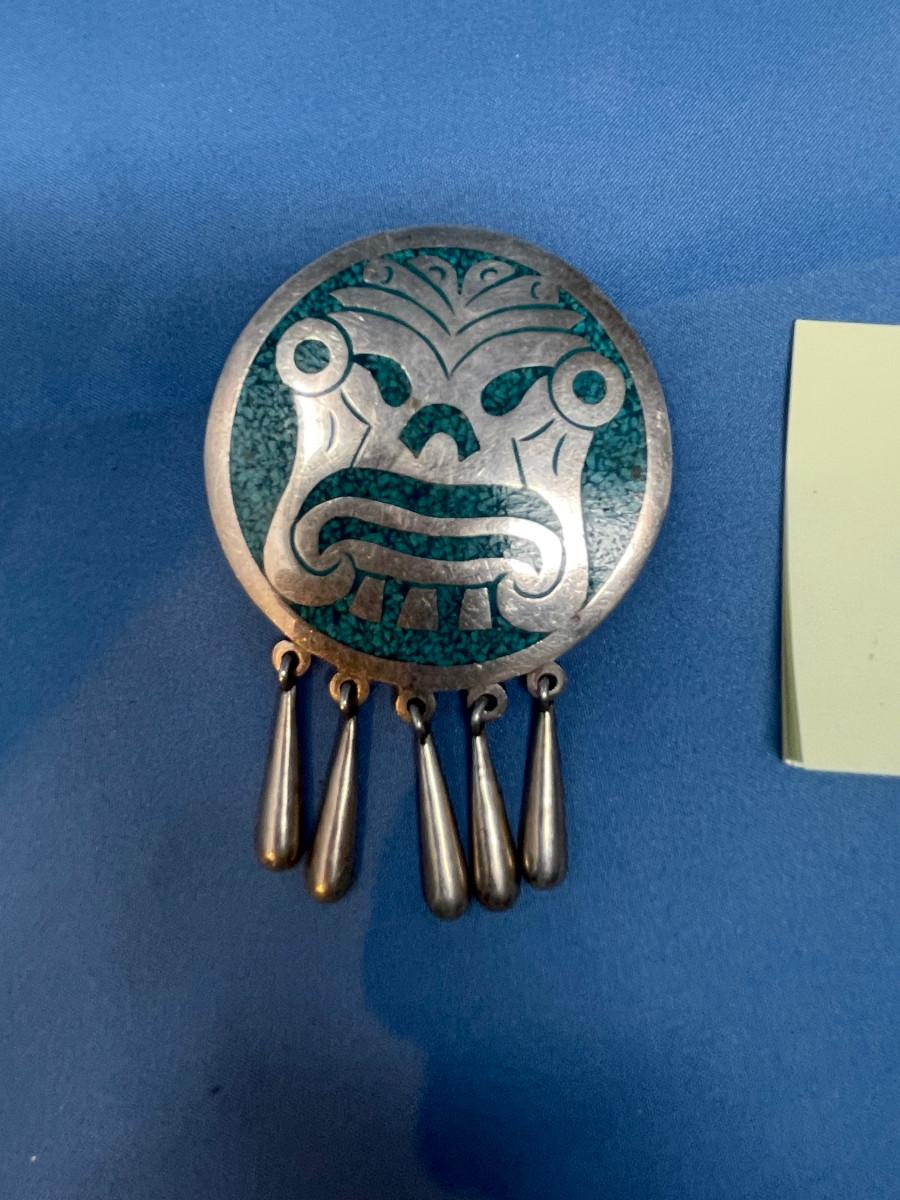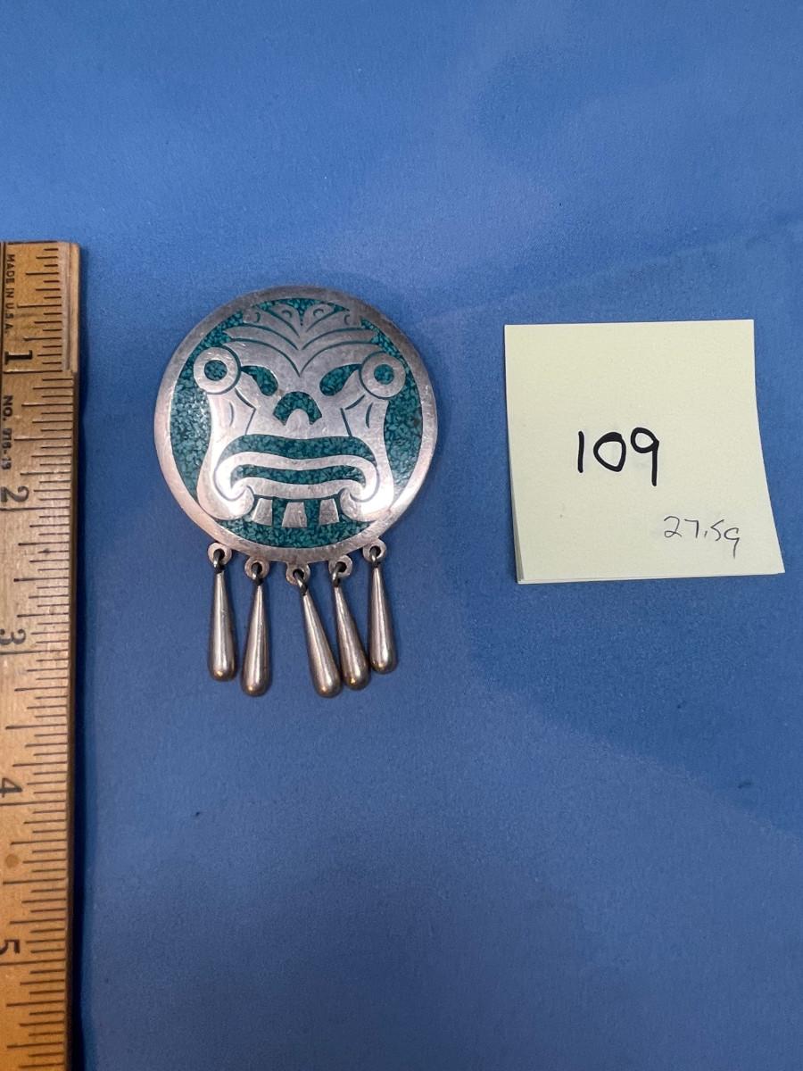 lot 109 Taxco Sterling silver Turquoise inlay Azted pendant/ brooch
