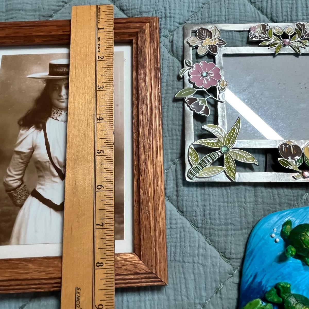 8. Sizes are approximate, you can estimate as our lot number signs are 3.5" long. Also we use an 18" & 36" measuring stick.  We try on certain things to do actual measurements. No guarantees on actual sizes, we try our best!