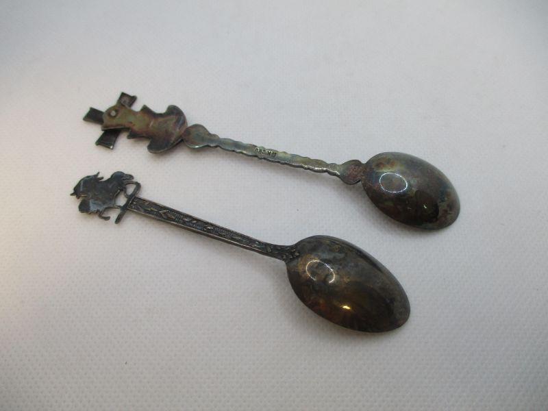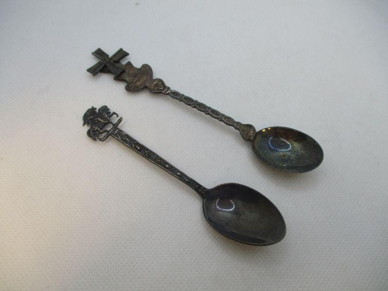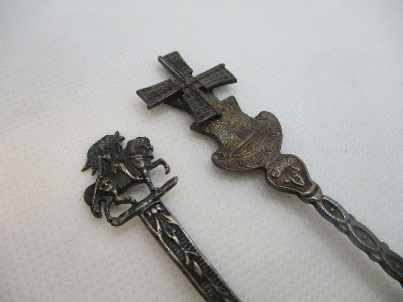 The smaller spoon is marked "Domremy" in the bowl which I believe is a province in France. The other spoon is marked "Volendam" and the panels of the windmill do turn. Both appear to be silverplated.