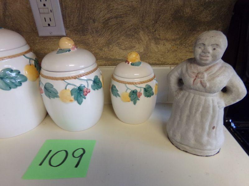 LOT 109  CANISTER SET & CONCRETE AUNT JEMIMA