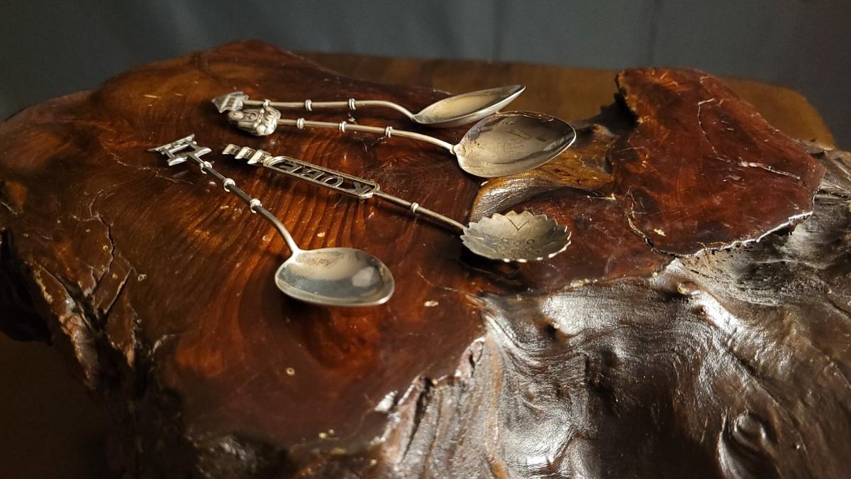 This lot features (4) .950 Silver Japan Spoons that each have a different theme on the top. The total weight for all 4 comes in at just over 24 grams total. Each shows a .950 Sterling mark on reverse.
