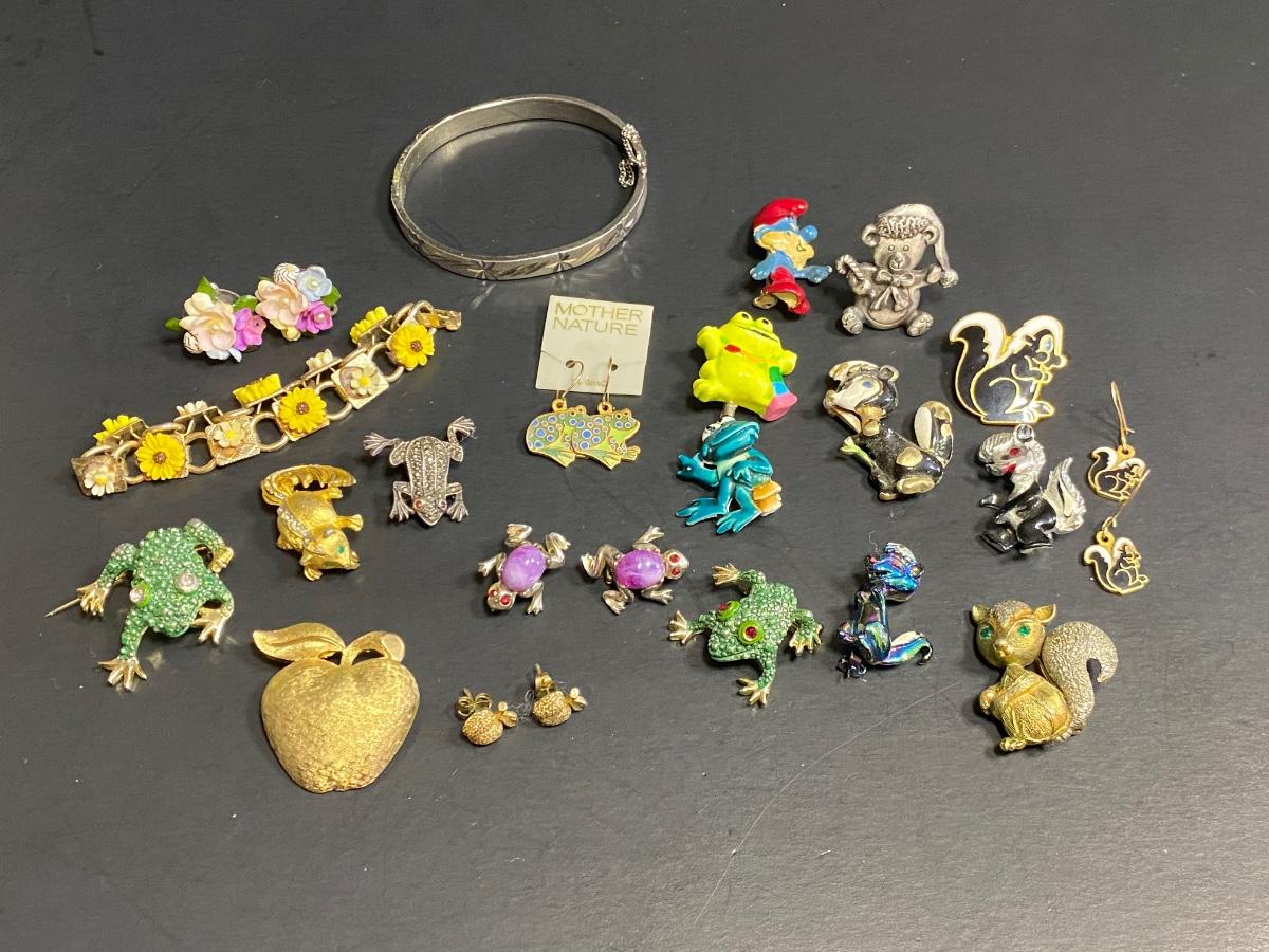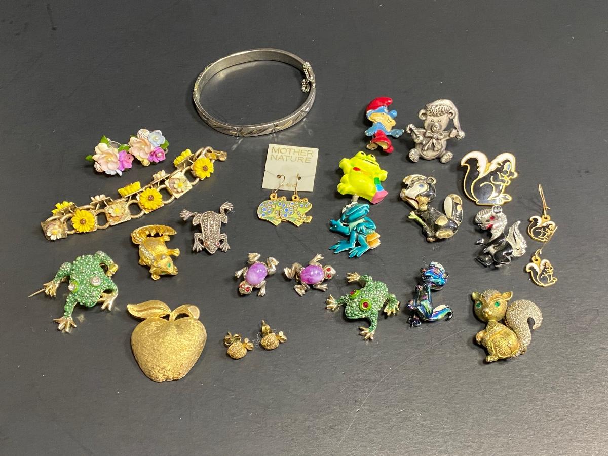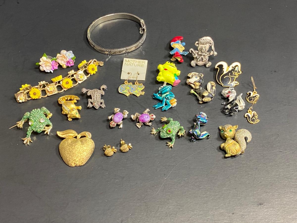 Lot includes vintage pins, bracelets and earrings. These are as-seen-found. Please see all pictures as they are the best representation of the items. The pictures show condition, measurements if taken, and what is included in the lot. Due to the large amount that we photograph and the time frame, we are not always able to take measurements. All items unless noted, are pre-owned and have been used. If you purchased furniture, you must bring help. We do not allow one person to carry large furniture out on their own. Bring help, tools and a truck for the safety of our client’s homes, and your personal safety. Company policy. Thank you.