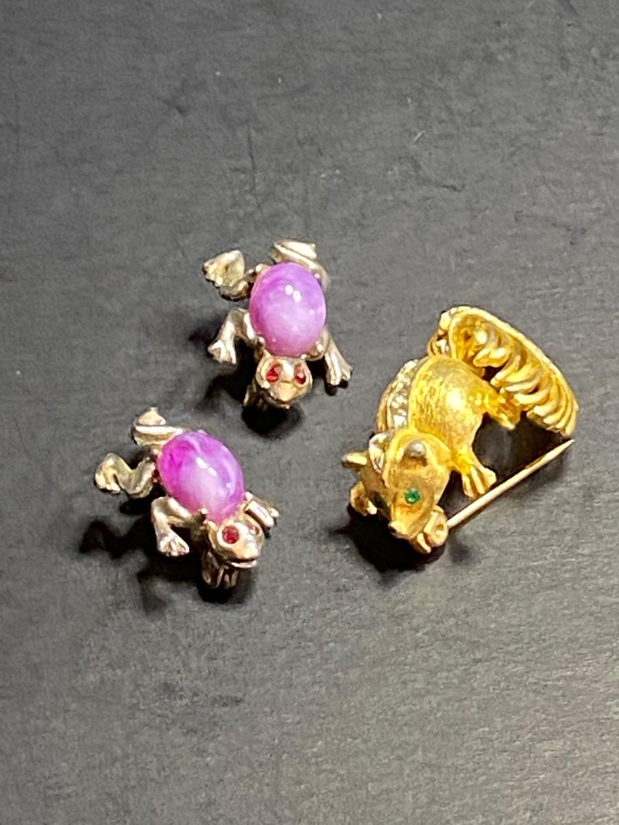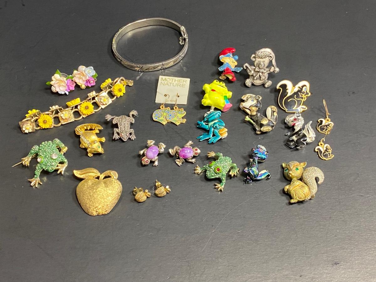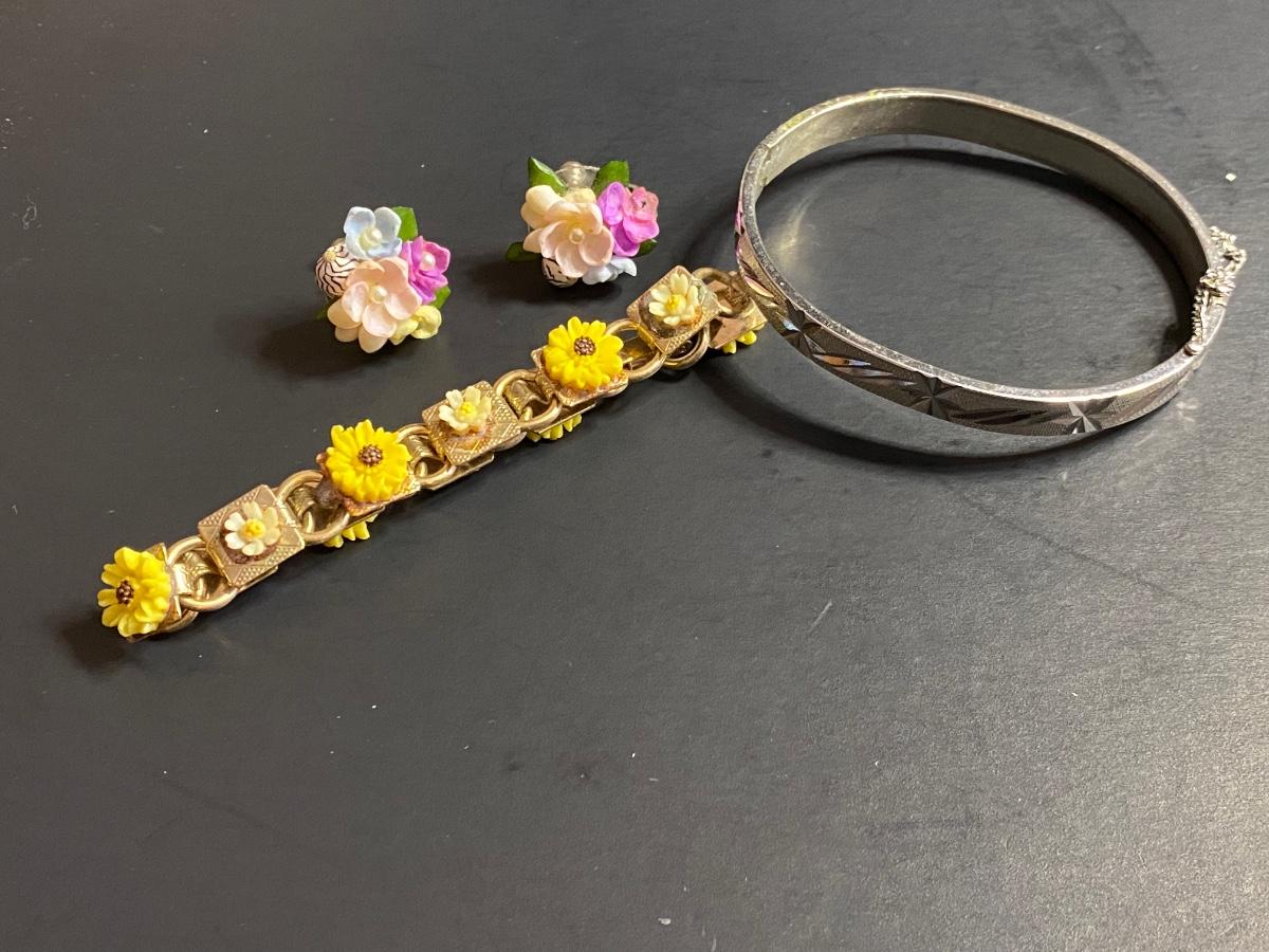 Lot includes vintage pins, bracelets and earrings. These are as-seen-found. Please see all pictures as they are the best representation of the items. The pictures show condition, measurements if taken, and what is included in the lot. Due to the large amount that we photograph and the time frame, we are not always able to take measurements. All items unless noted, are pre-owned and have been used. If you purchased furniture, you must bring help. We do not allow one person to carry large furniture out on their own. Bring help, tools and a truck for the safety of our client’s homes, and your personal safety. Company policy. Thank you.