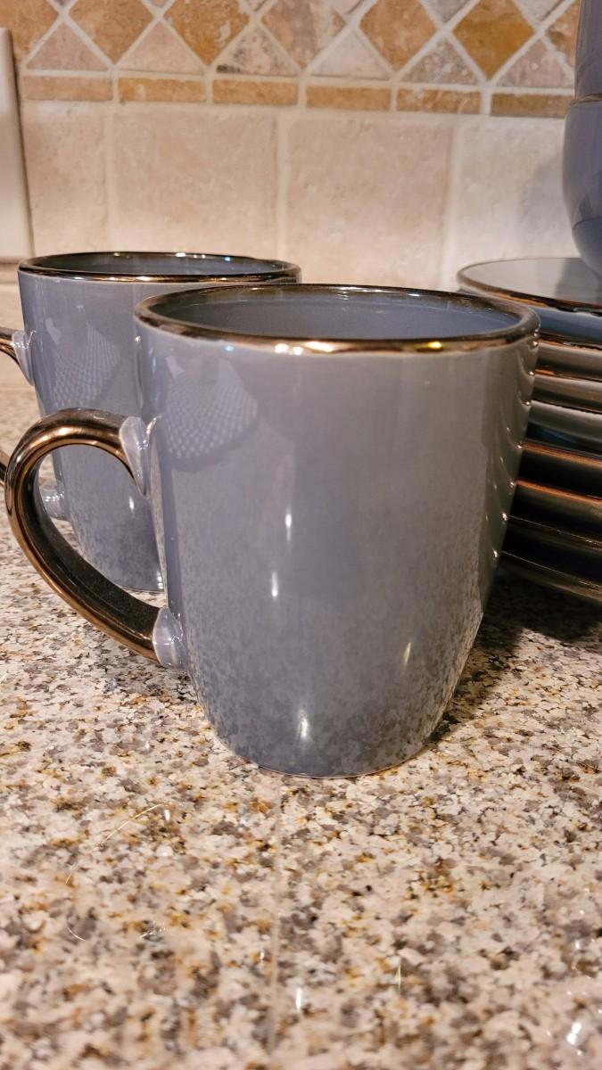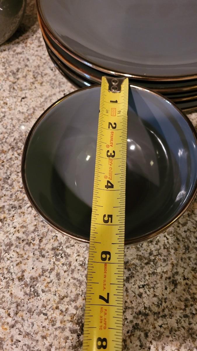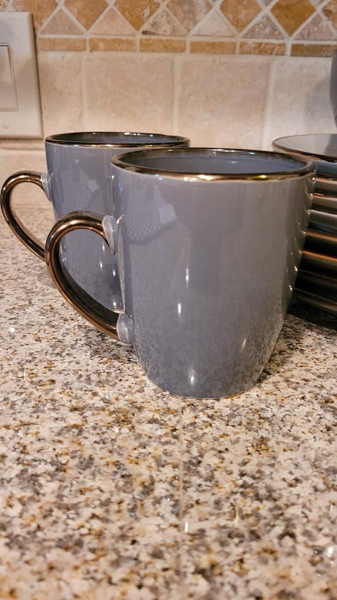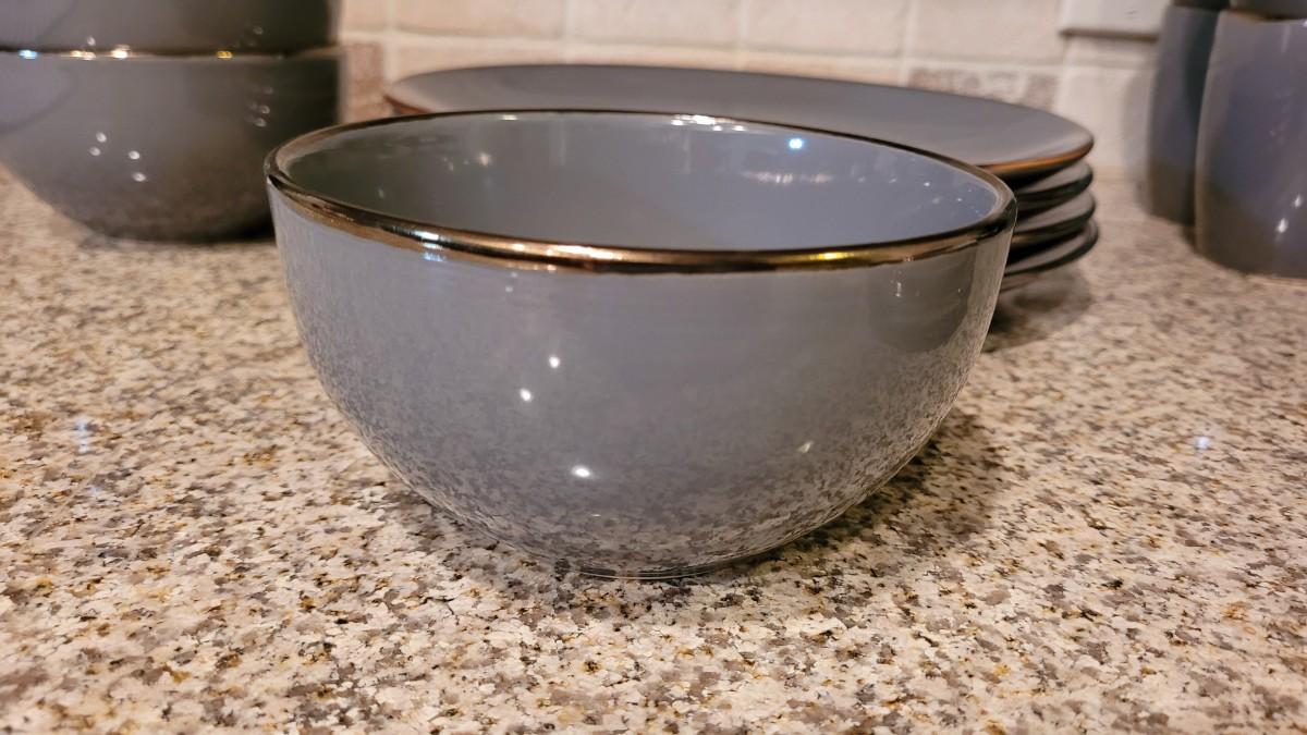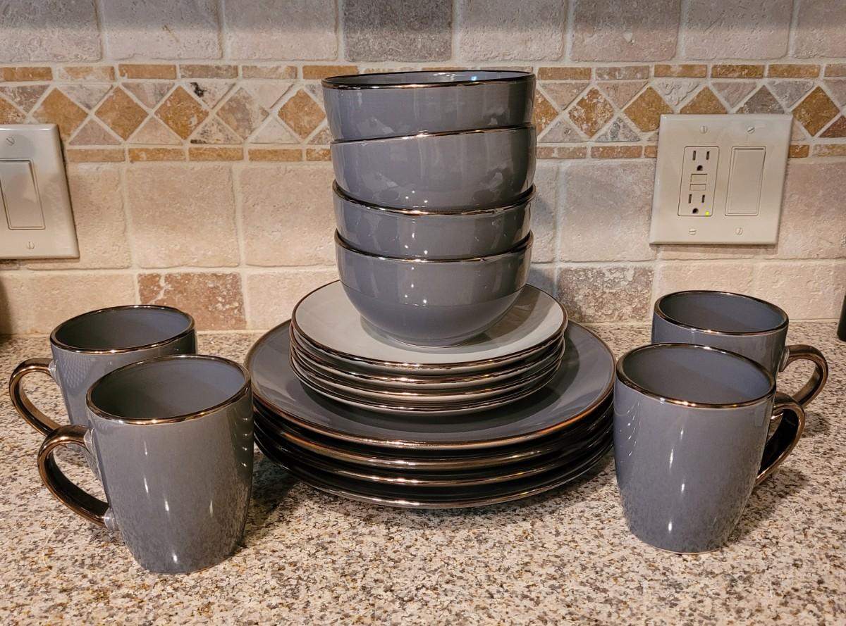 4Dark Gray Dinner Plates, 4 Bowls and 4 Cups ☆ 4 Light Gray Lunch Plates