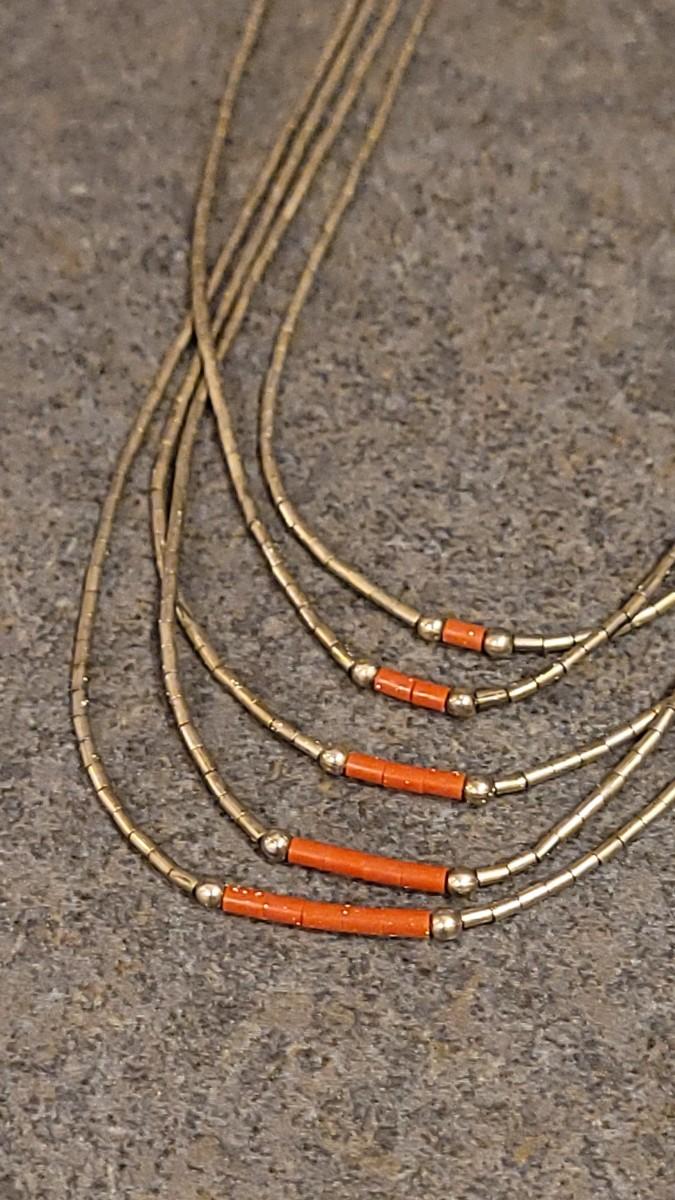 Lot 109: Vintage Navajo Sterling Liquid Silver & Coral Bead Necklace